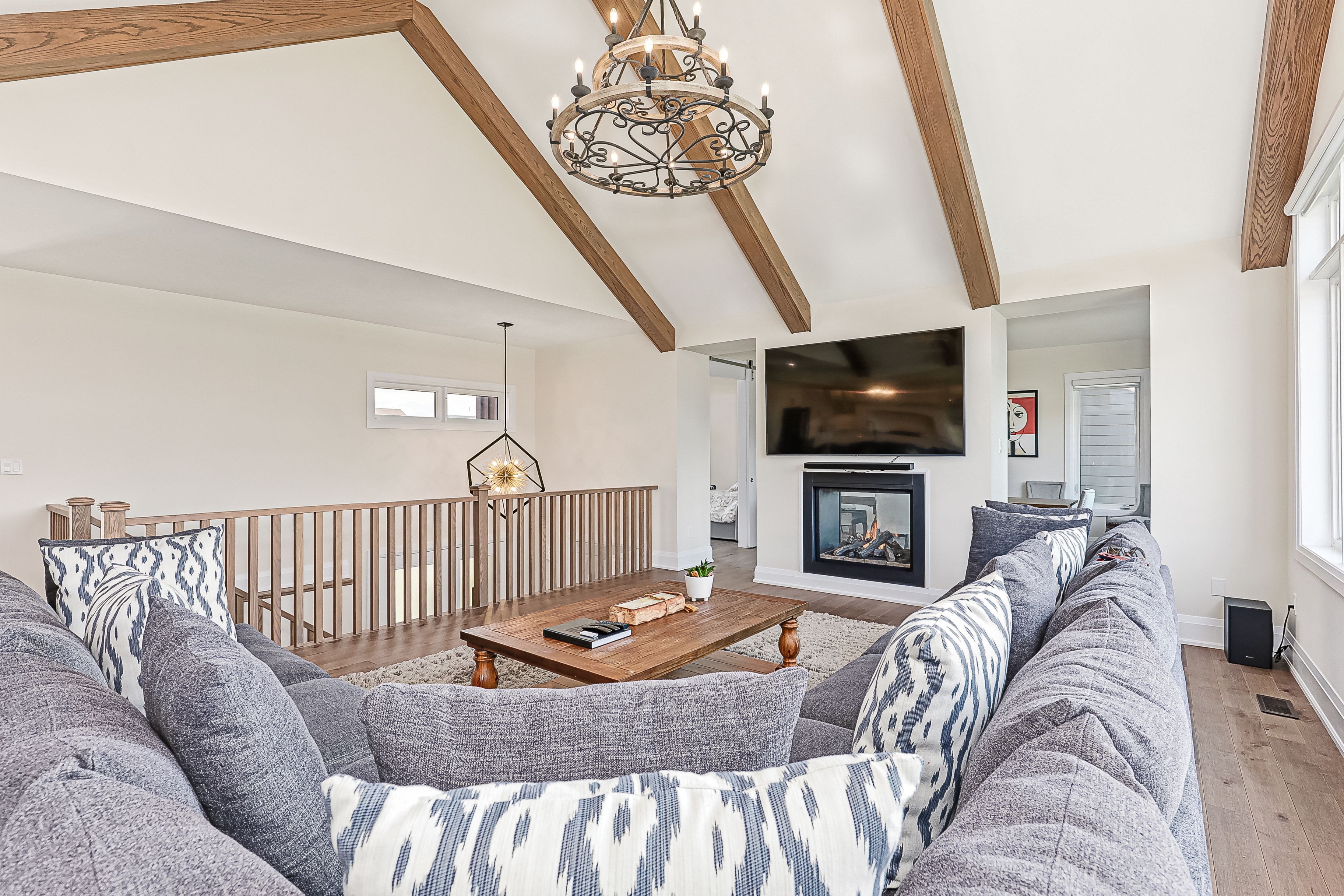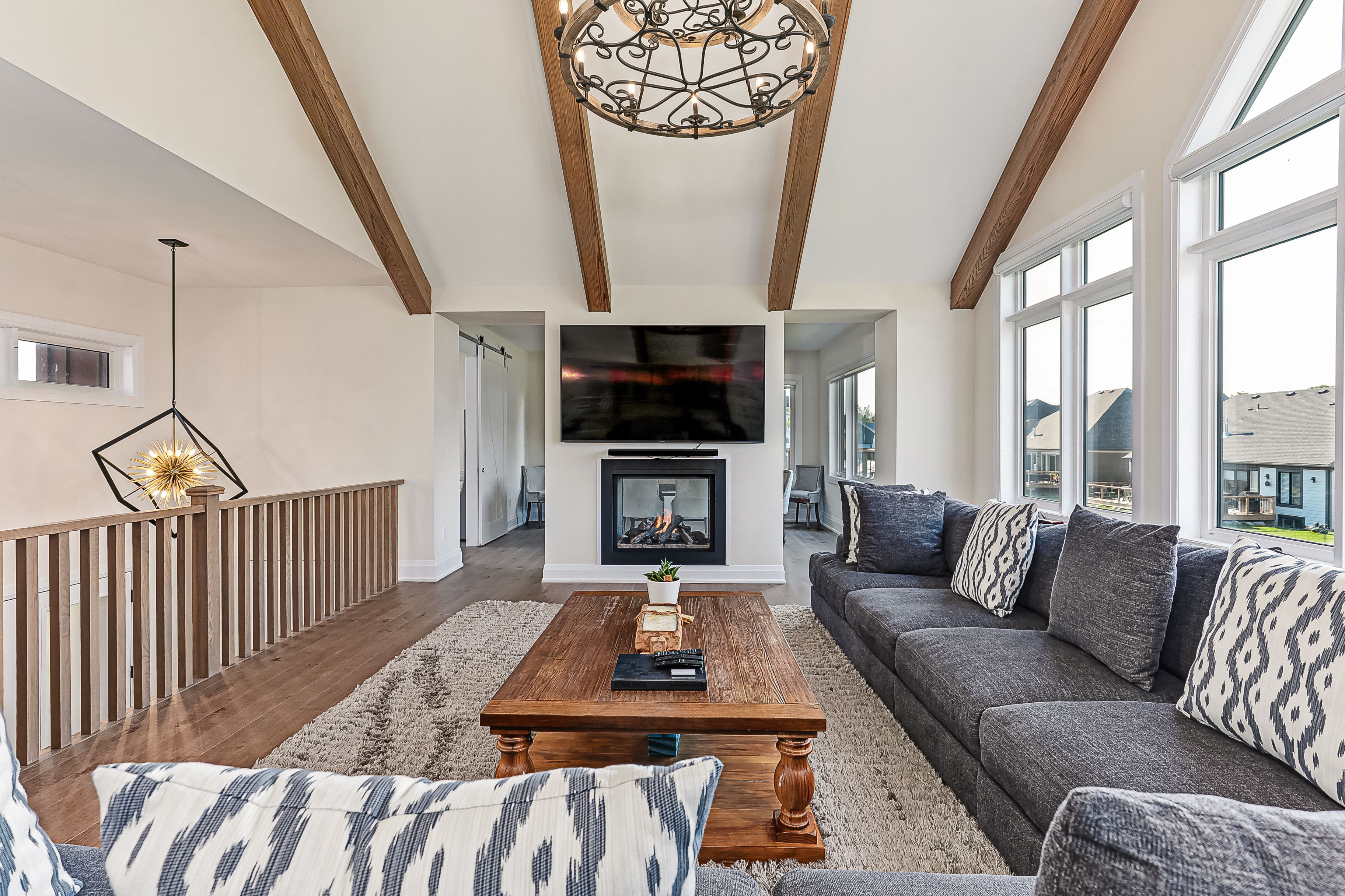 • Bright open living spaces with stunning mountain views and a cozy fireplace.