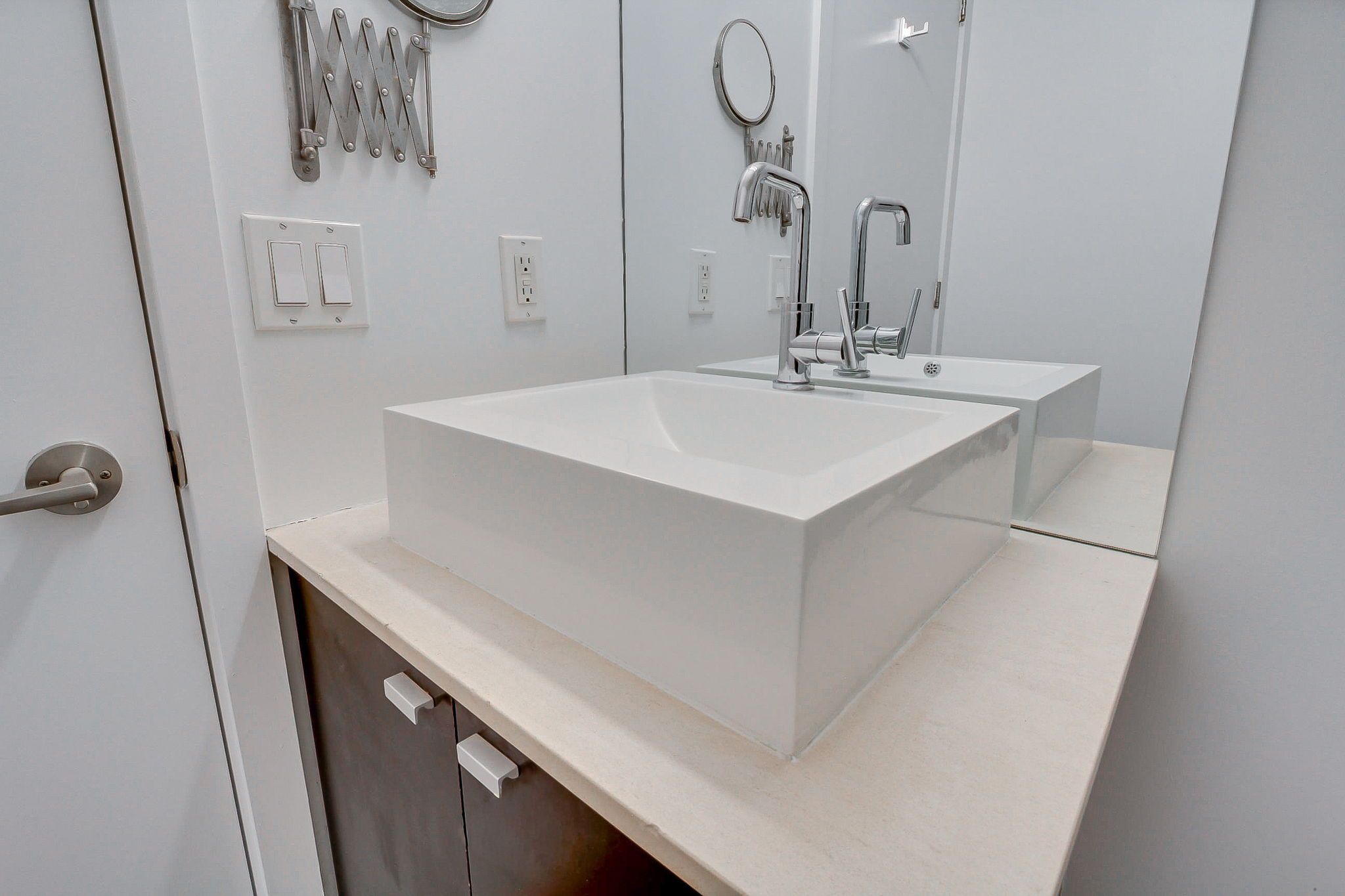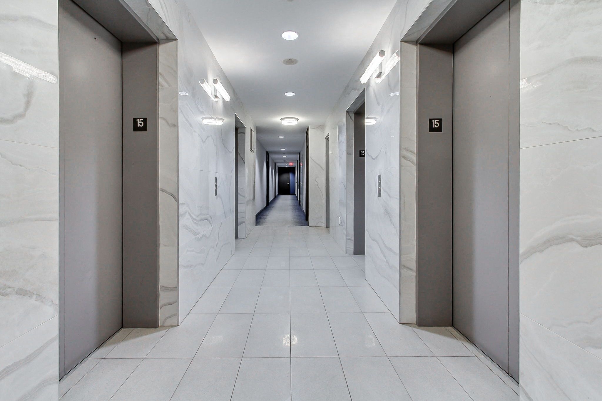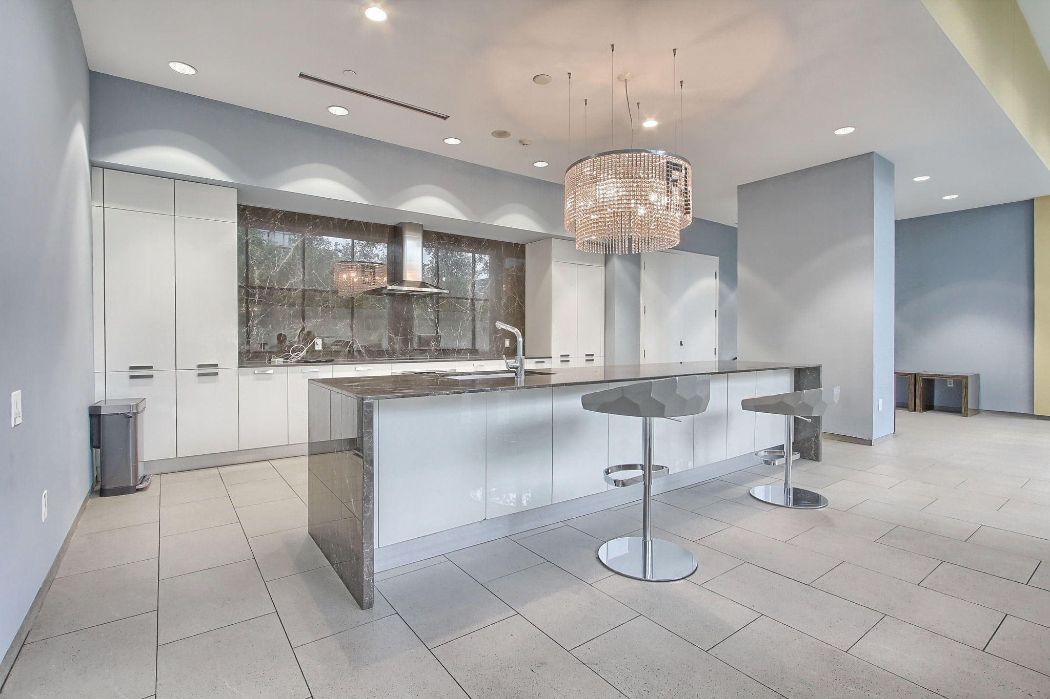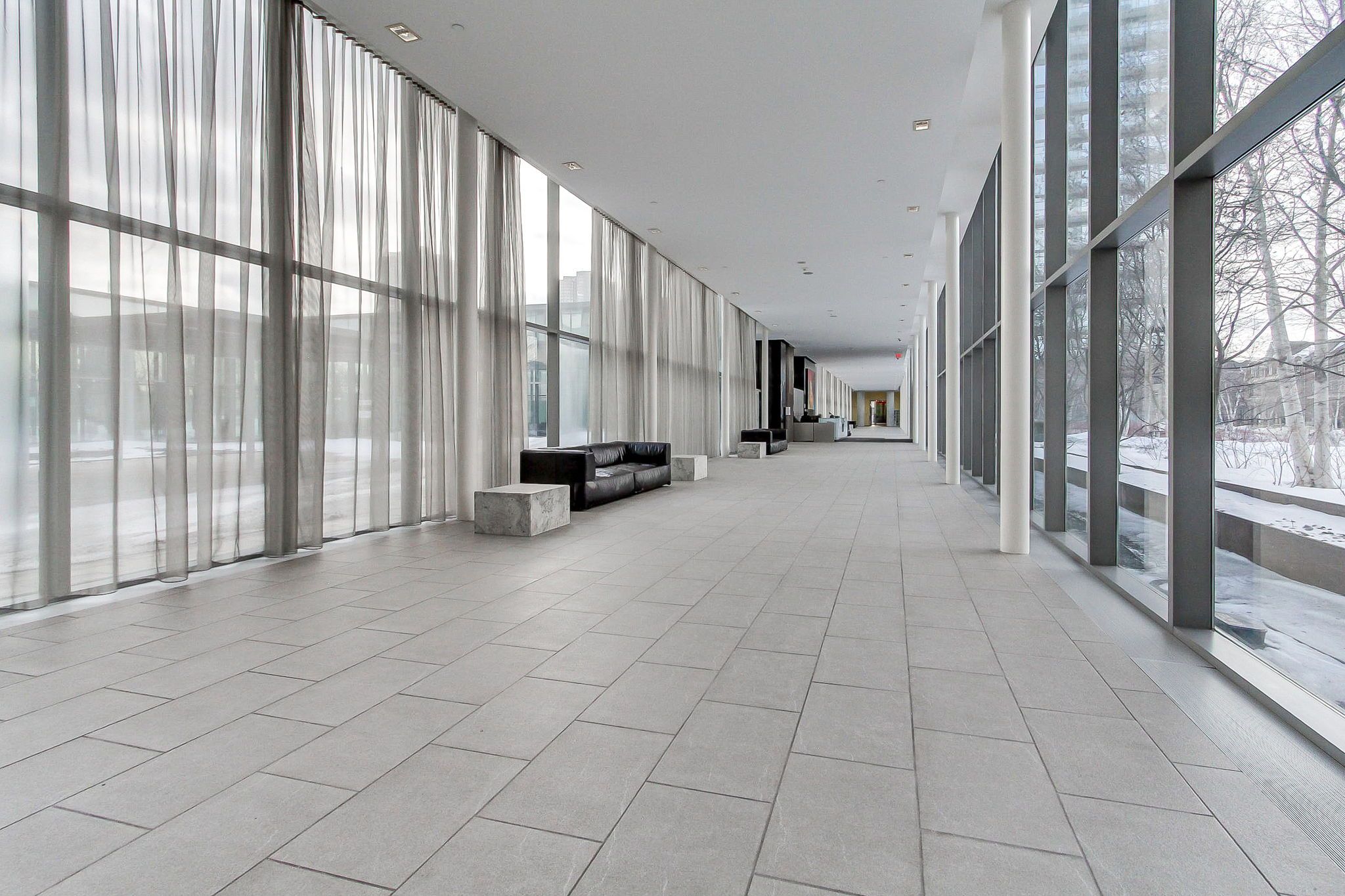 • Modern suite with expansive floor-to-ceiling windows and 9 ft ceilings.