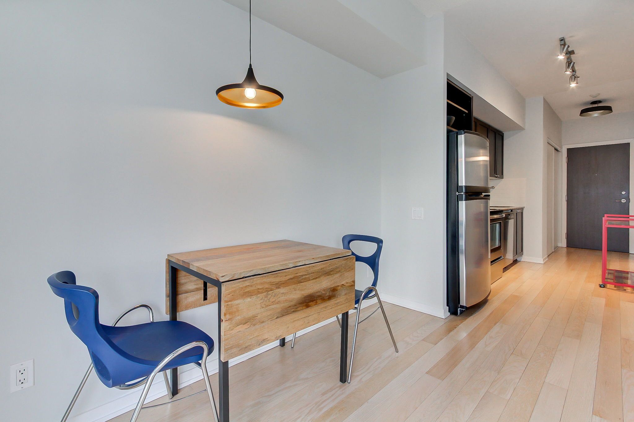 • Open-concept kitchen with stainless steel appliances and breakfast bar.