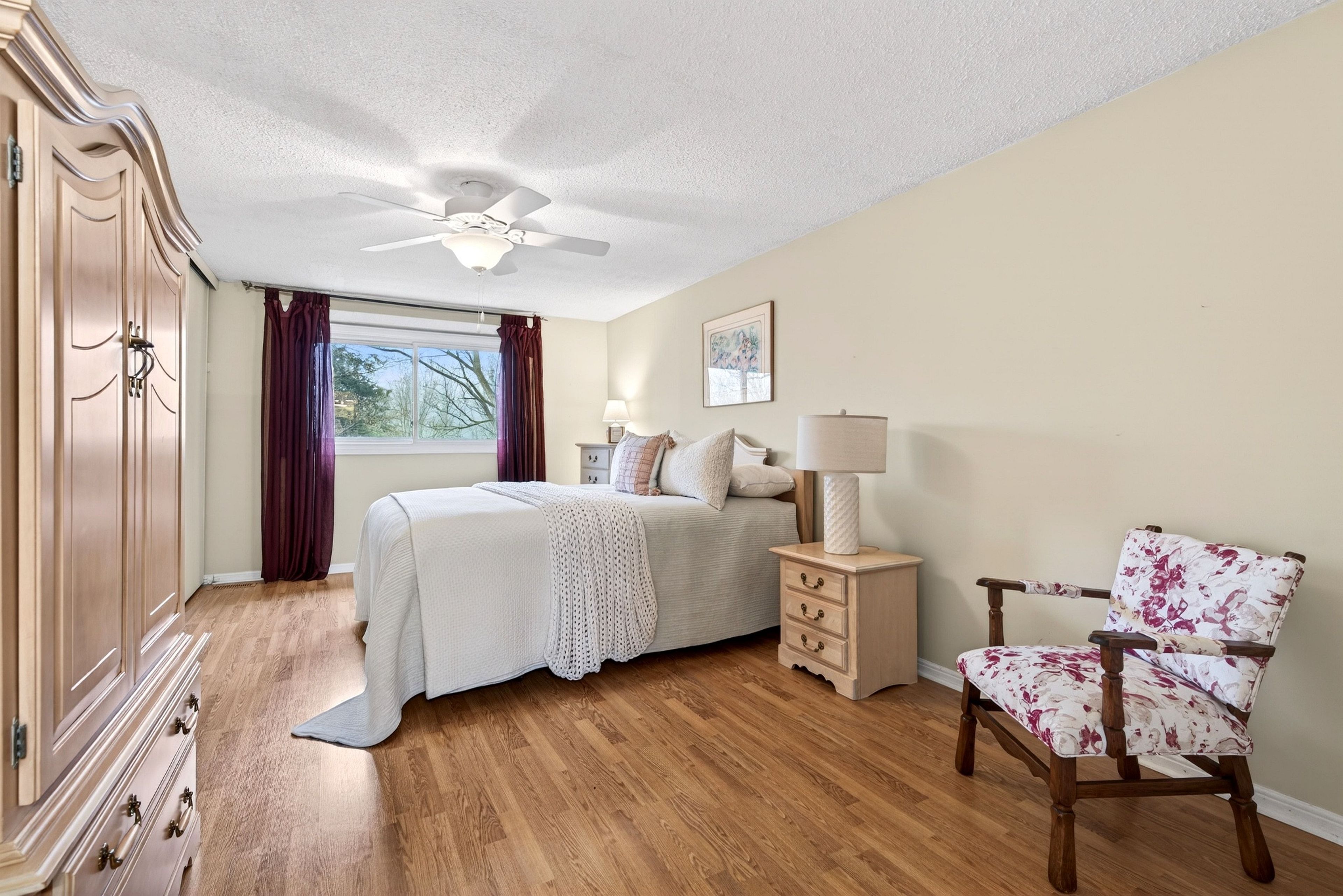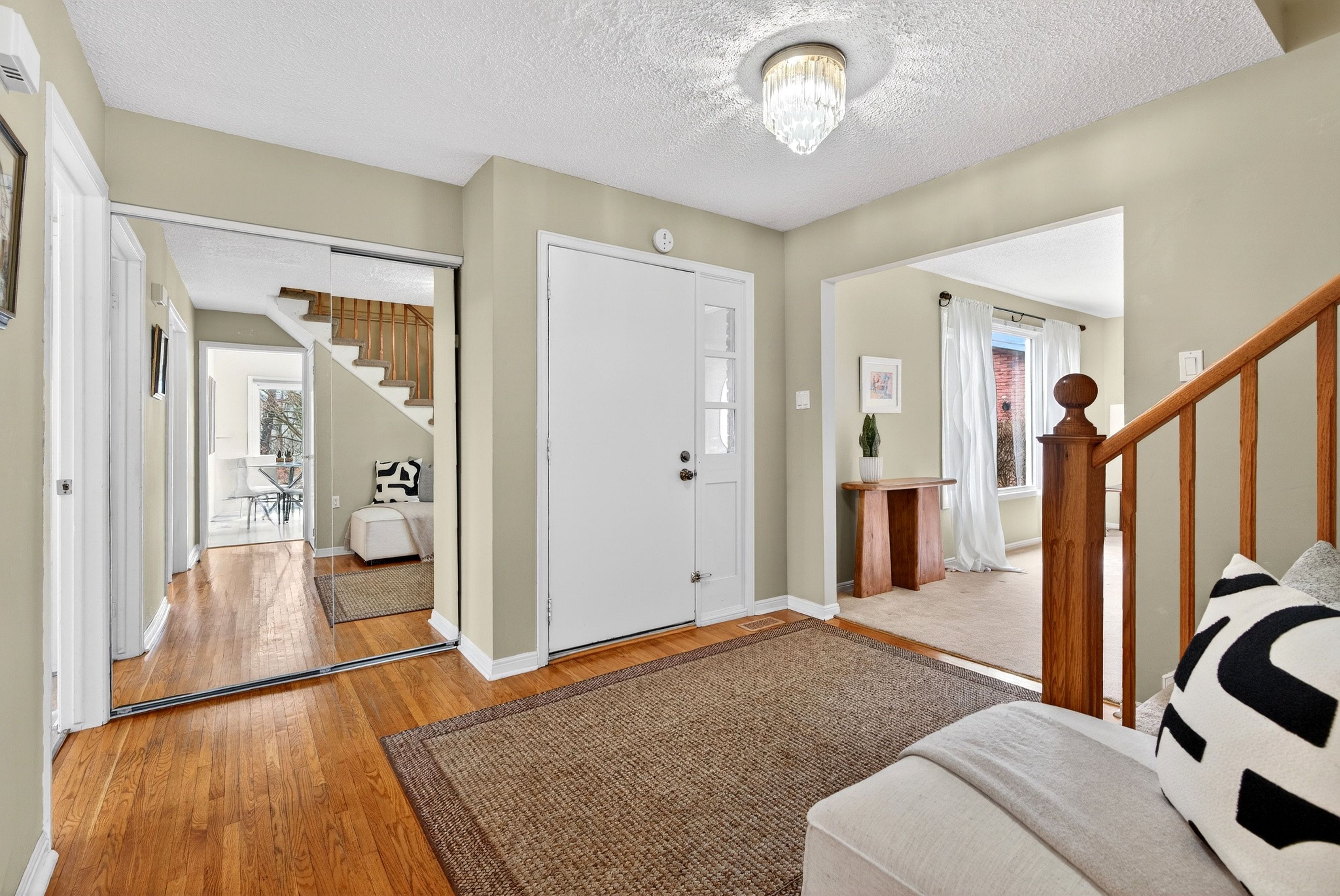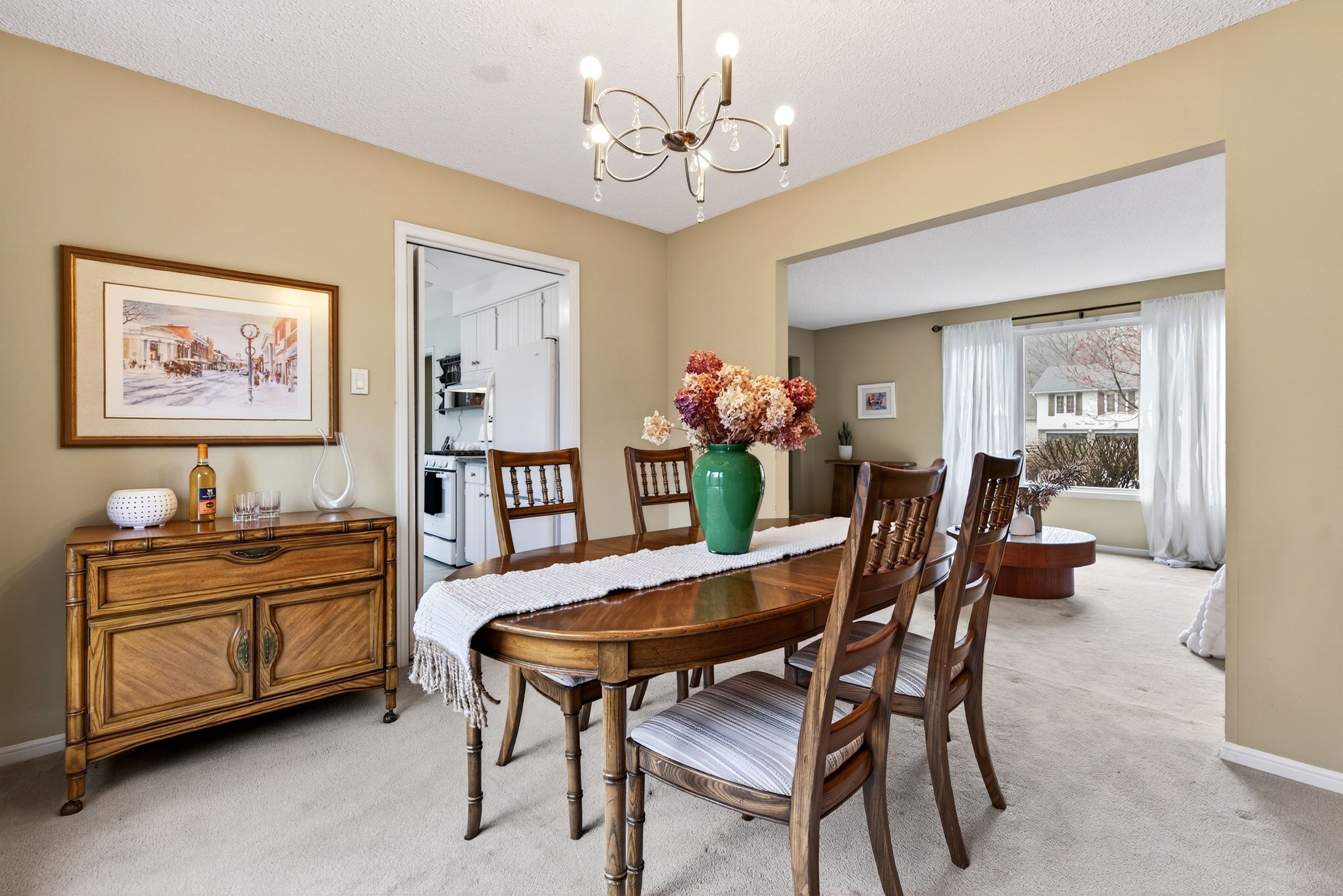 Well-loved home, proudly cared for by the same owner for many years. Set on a quiet street where neighbours feel more like family. Just steps to nature trails at the end of the street, with beautiful ravine views, mature trees, wildlife and a peaceful stream. Thoughtful layout with a bright living room, eat-in kitchen, separate dining room, and a cozy den with fireplace. Main floor laundry. Upstairs features four good-sized bedrooms, including a spacious primary with walk-in closet and ensuite. Partially finished basement with a family room, plenty of storage, workshop space, and office. Deck and gardens overlooking the ravine, surrounded by trees and nature. Views like this don't come up often.