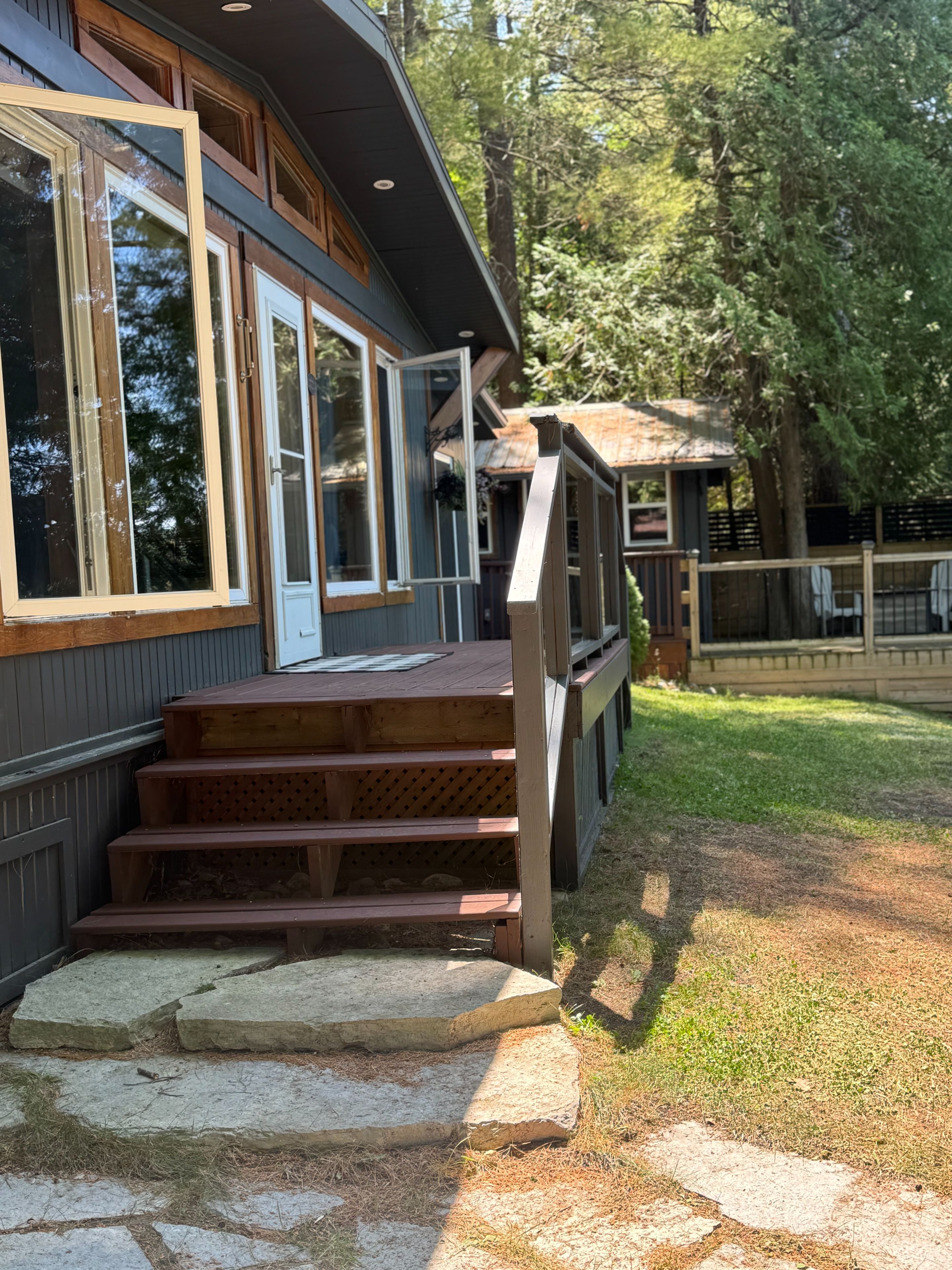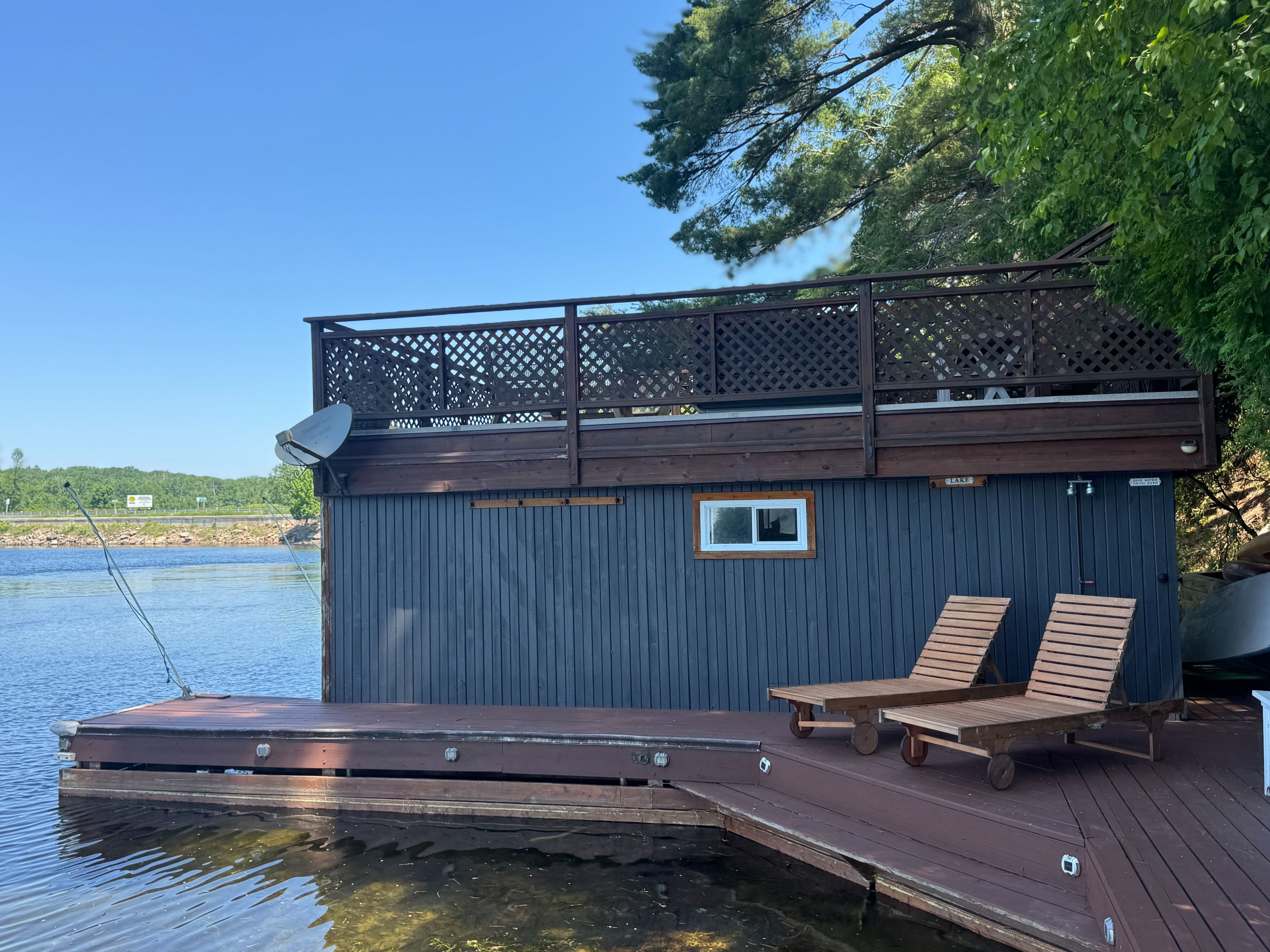 Moore lake gem- charming 4+ bedroom 1 full bath panabode cottage with boathouse and guest cabin on pristine moore lake in minden hills-haliburton. 100 feet of sunny western exposure shoreline on a . 5 acre lot. The thoughtful layout offers a balance of gathering spaces and private retreats, ideal for hosting family and friends. Recent addition of backlot provides opportunity to build a garage. Extensive lakeside decking and a wetslip boathouse with an upper sundeck complete this inviting haliburton retreat. Set against a backdrop of classic haliburton granite and mature pines, the property captures long lake views and unforgettable sunsets. . Whether enjoyed as a peaceful weekend escape or a future year-round retreat, this is a property that embodies the enduring appeal of cottage living.