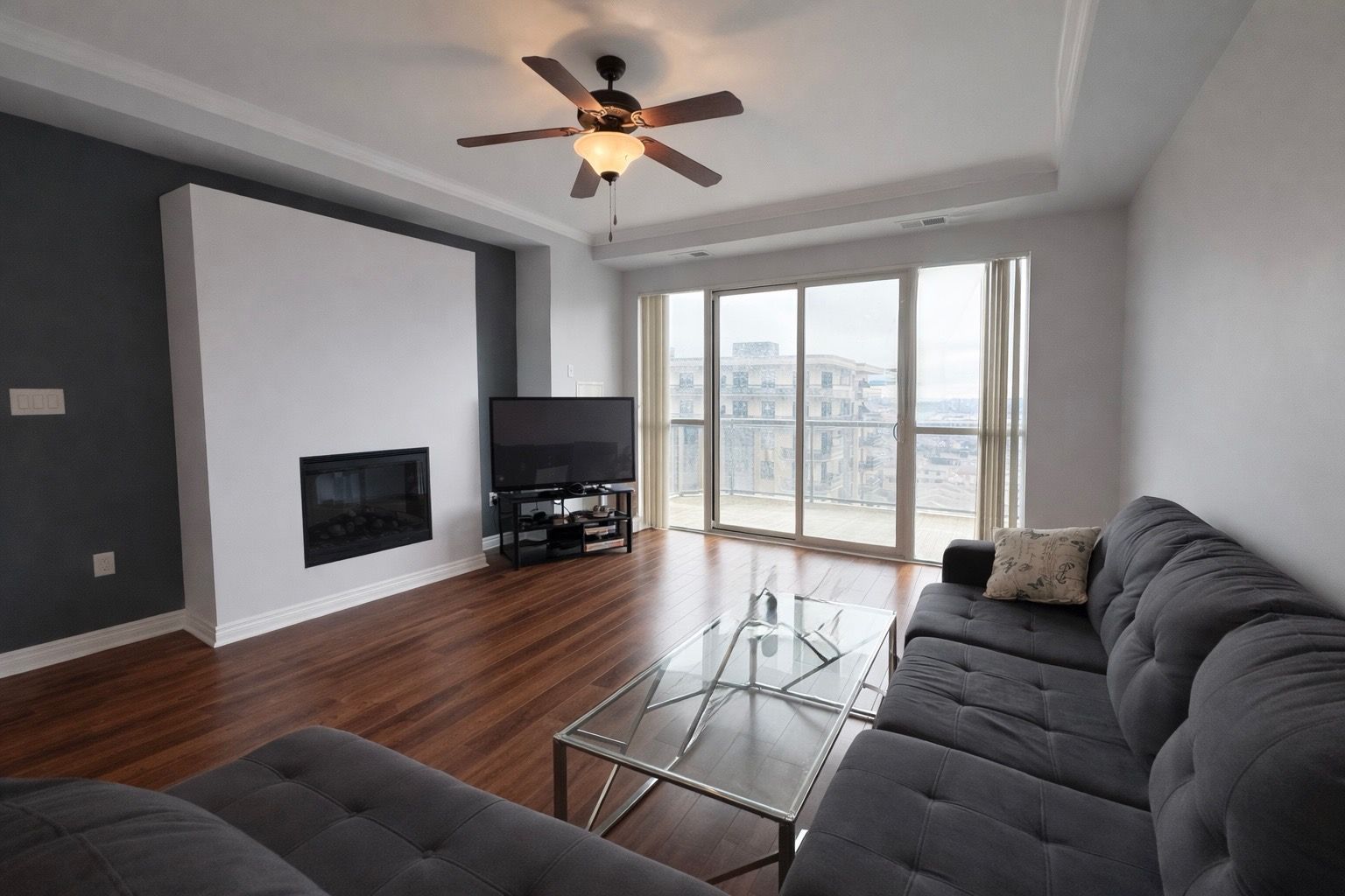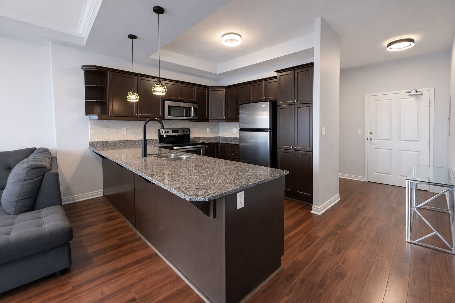 Experience luxury high-rise living in this stunning 11th-floor, 2-bedroom, 2-bathroom suite at 1030 coronation drive in the heart of hyde park. This modern open-concept condo features premium finishes throughout, including a kitchen with quartz countertops, stainless steel appliances, a functional breakfast bar, and updated lighting. The spacious primary retreat offers a custom walk-in closet and a gorgeous 4-piece ensuite with a glass shower and double vanity. Enjoy your own private, south-facing balcony and the convenience of in-suite laundry plus an oversized storage closet for all your seasonal items. Residents gain access to world-class building amenities including a professional exercise room, media room, library, games room, guest suites, and ample visitor parking. Located just steps from premium shopping, restaurants, and parks, this unit is perfect for those seeking comfort and convenience in north london.