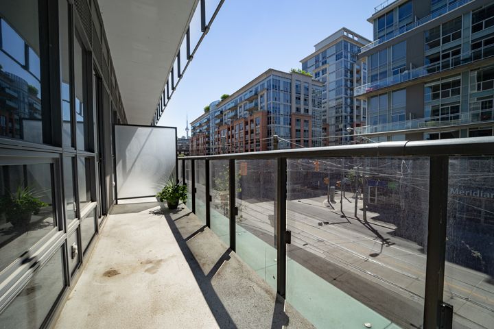 Trendy king st west -dna3! This east tower, 1 bedroom plus den, is modern, functional, and smartly laid out. Spacious unit offers a full-width balcony with a view of the cn tower. Excellent storage throughout, including a large hall closet that allows for extra storage space. This unit has an actual walk-in laundry room with a pantry area! Everything you need is just a short walk away. No frills and tim hortons downstairs. Enjoy restaurants, bars, and retail in king west, or stroll to liberty village and queen west. Commute with ease thanks to transit at your doorstep. Building amenities include a fully equipped gym, a one-of-a-kind rain room, party room, 24/7 concierge, board room, cooking room, games room, and a rooftop terrace with bbq's, lounge and dining spaces.