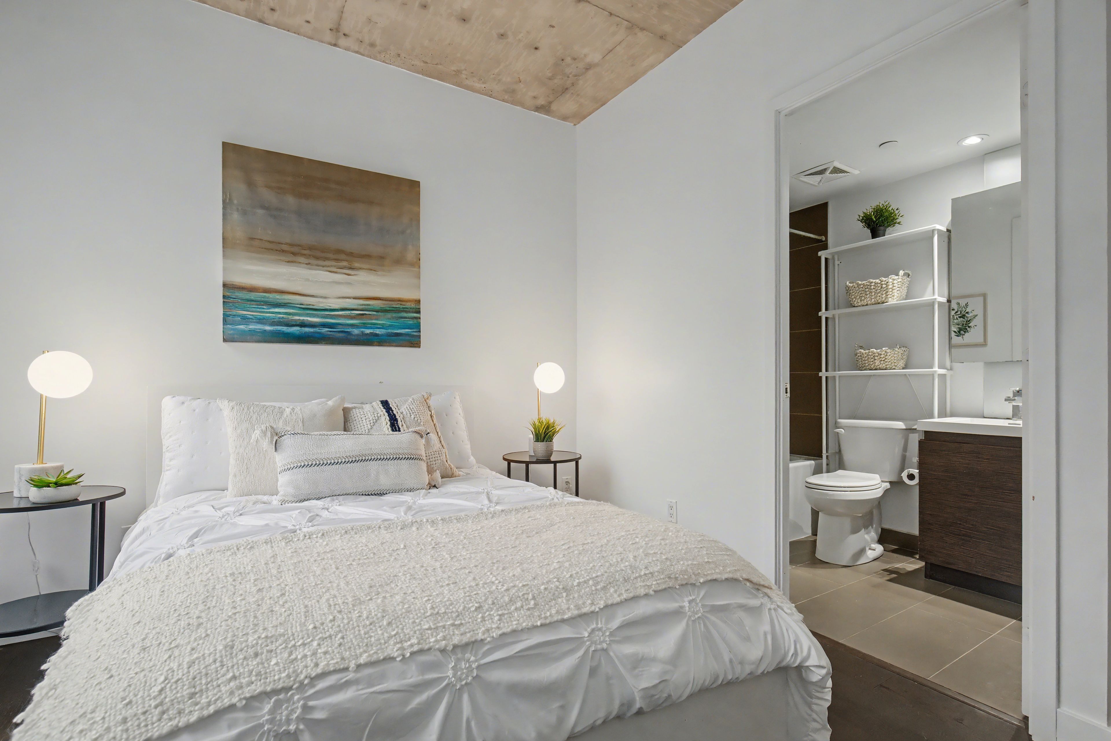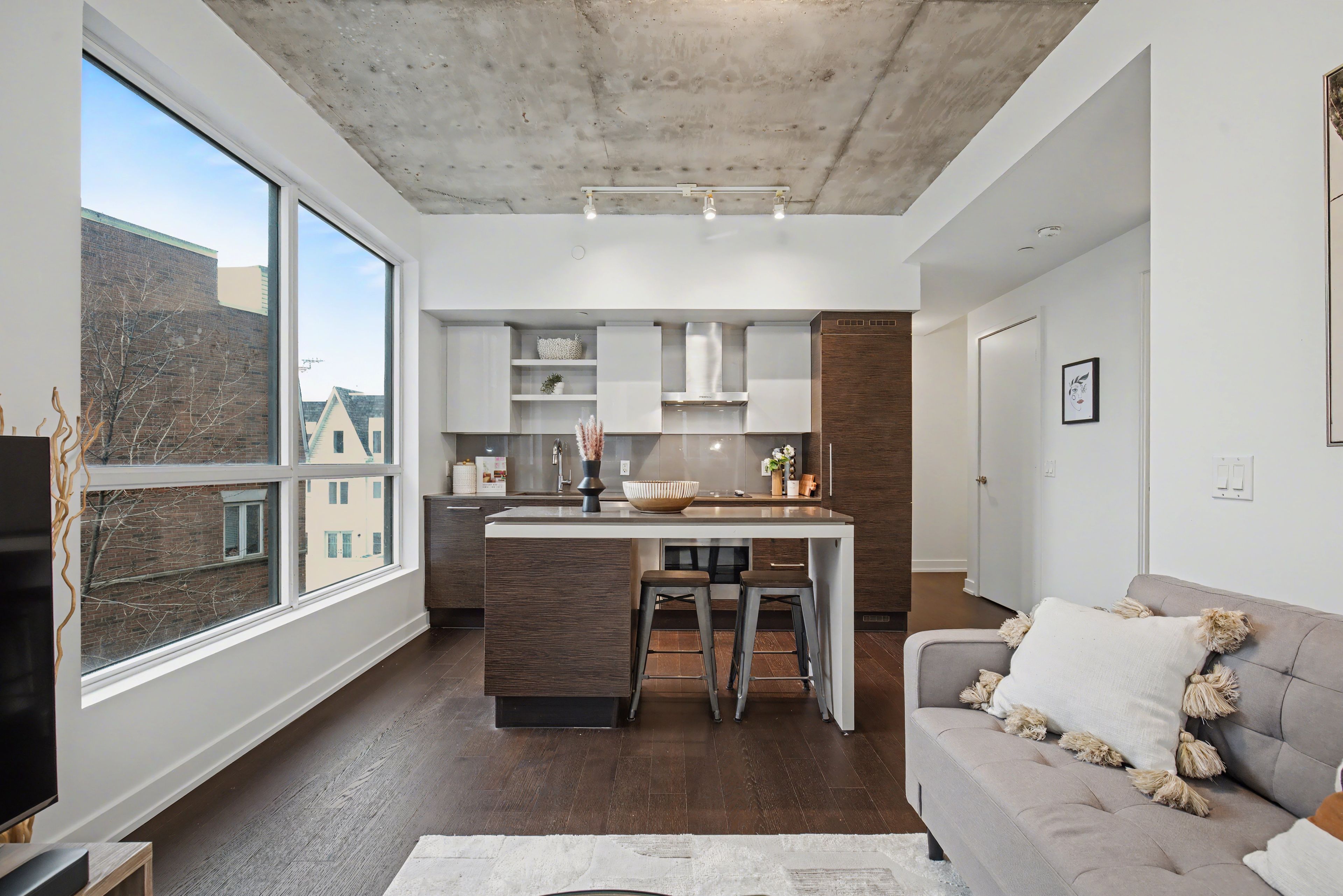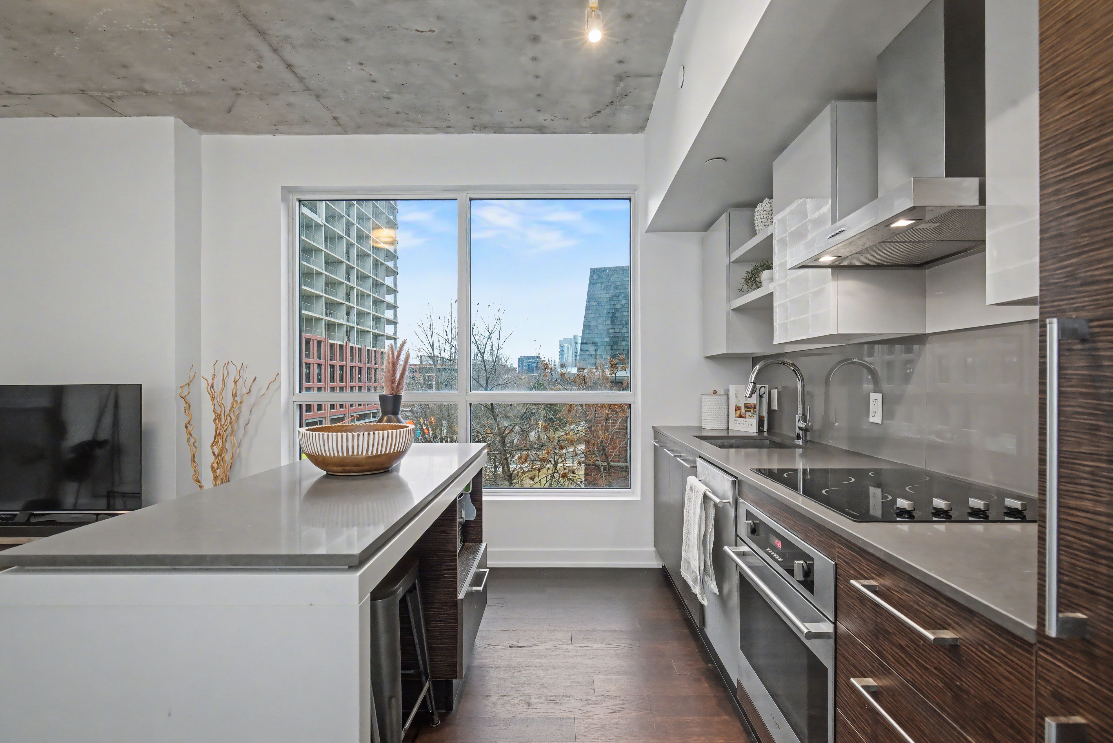 Urban loft living in the heart of king west. This bright south-west corner suite at dna3 captures the energy of downtown living with a modern loft feel and an abundance of natural light. Exposed 9-foot concrete ceilings and expansive windows create an open, airy atmosphere, giving the space a distinctive industrial-chic style that defines this sought-after building. The thoughtfully designed layout features two spacious bedrooms, including a primary suite with its own 3-piece ensuite, along with an open-concept living and dining area that walks out to a private balcony. The contemporary kitchen is anchored by a quartz centre island, providing the perfect space for casual dining, entertaining, or everyday living. Freshly painted interiors and quality finishes throughout enhance the suite's clean, modern aesthetic. Residents enjoy a full suite of amenities designed to complement an active urban lifestyle, including 24-hour concierge service, a fully equipped fitness centre, party and meeting spaces, and a rooftop terrace with bbqs. Step outside and experience the best of king west, with acclaimed restaurants, cafés, grocery stores, nightlife, and ttc transit just steps from your door. With strong rental demand and enduring neighbourhood appeal, this property offers excellent potential for both end users and investors seeking a vibrant downtown lifestyle.