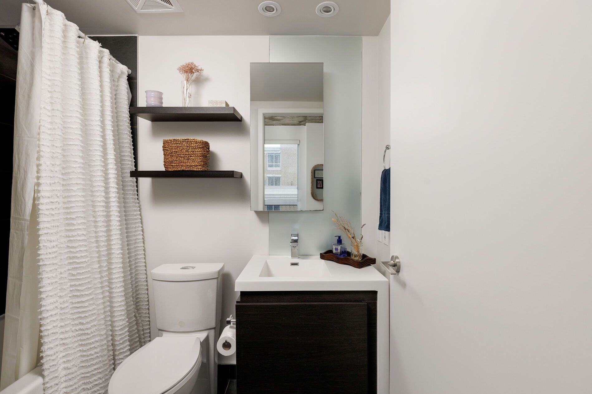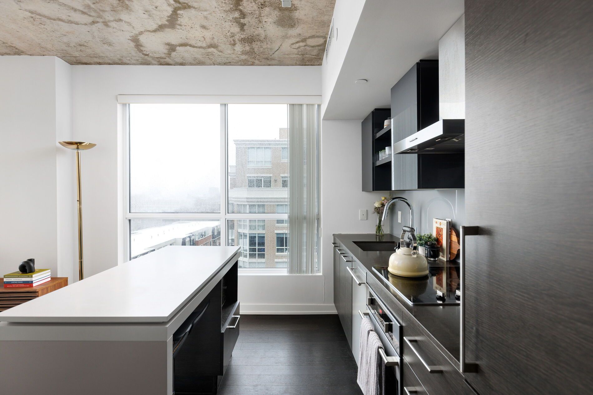 • Bright corner suite with 9-foot ceilings and expansive windows for natural light.