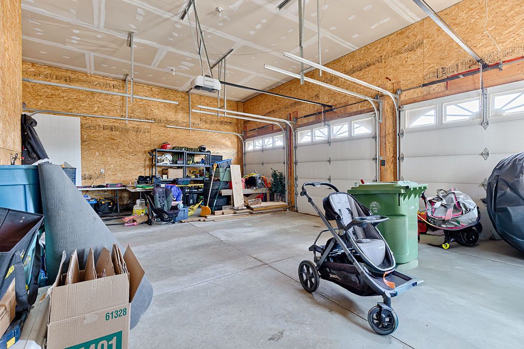 • Impressive triple car garage with drive-through door for easy access.