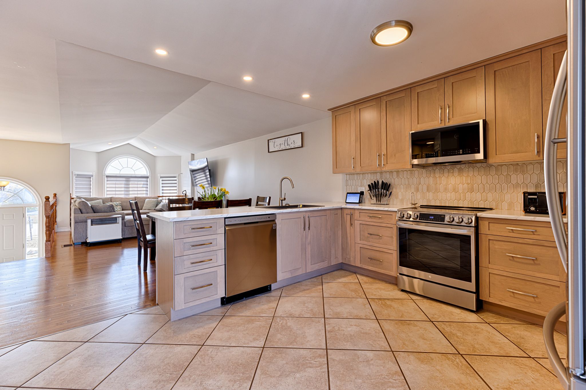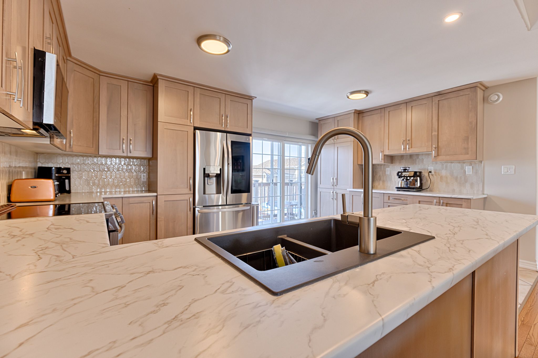 • Updated kitchen with modern cabinetry and direct access to patio.