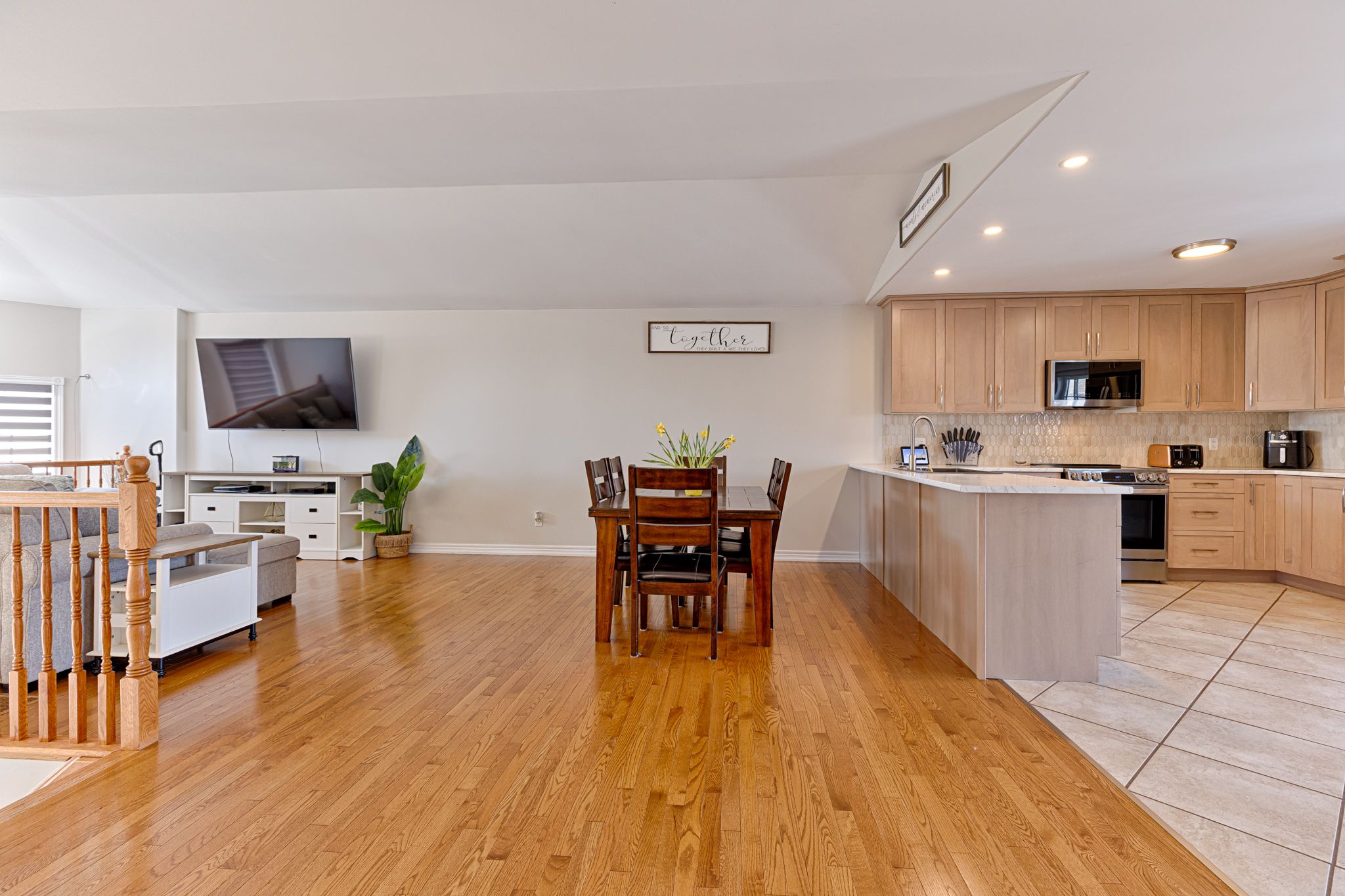 • Bright main level with hardwood flooring and large windows.