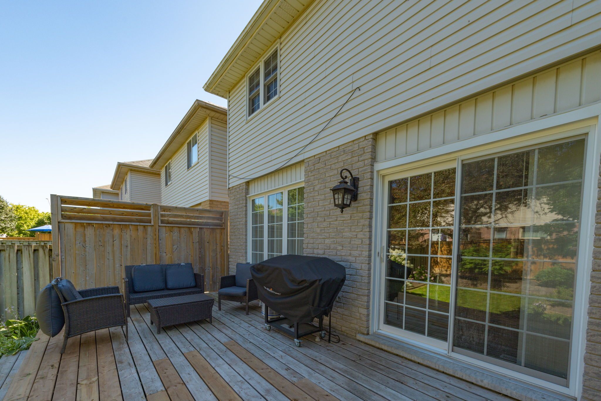• Large deck overlooking a fully fenced yard, perfect for relaxation and hosting.
