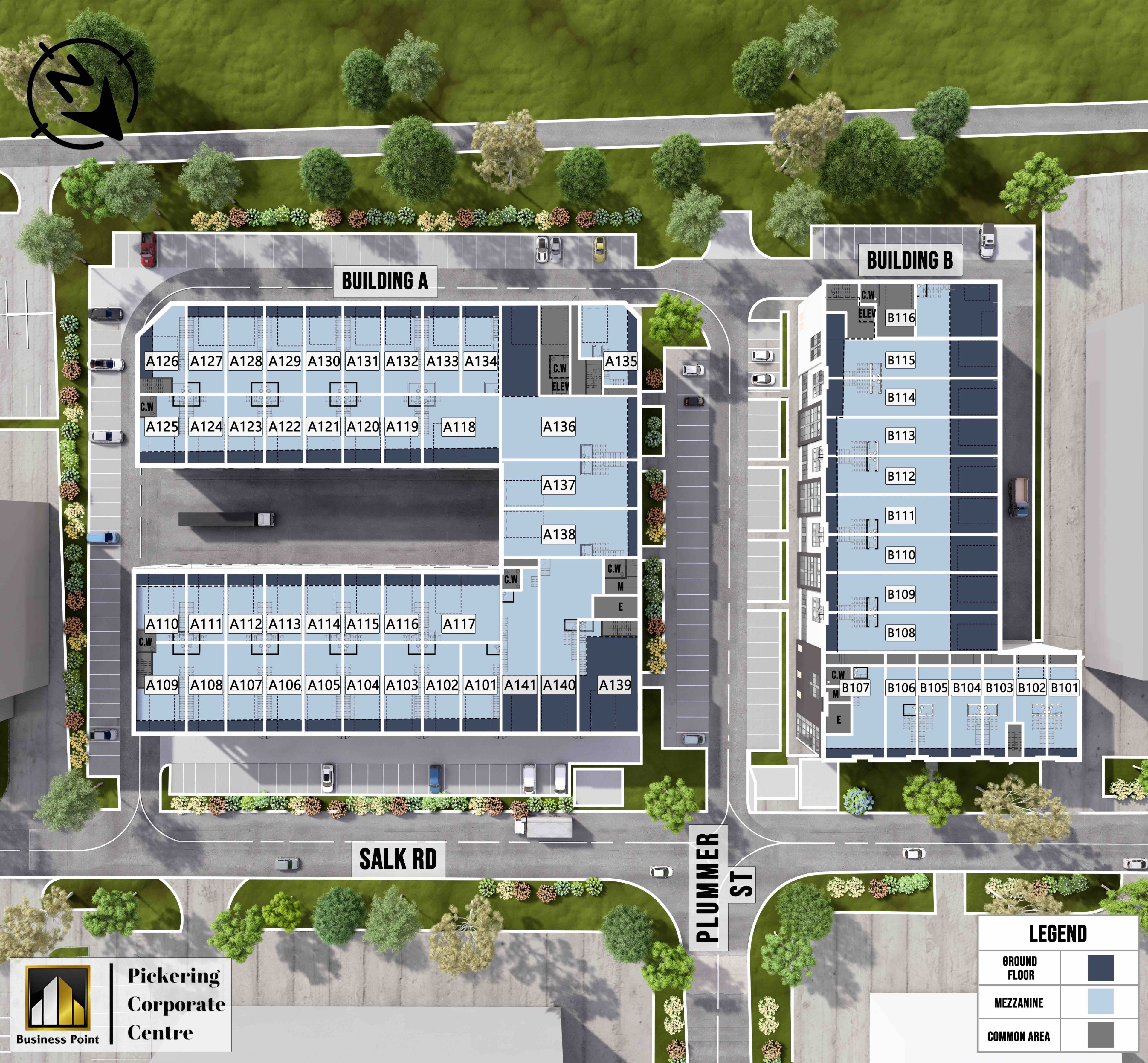 Pre-construction, brand new industrial condos coming soon to prime pickering location. Modern pre-cast building, featuring sleek architecture with lots of glass elements that allows abundant natural light. 1 drive in door, 14ft height below mezzanine and 10ft above. Strategically situated in the heart of pickering, offering easy access to hwy 401, transportation hubs, 5 mins to go station and local amenities. These industrial condos are designed with functionality and aesthetics in mind, giving owners not just a workspace, but a statement of success.
