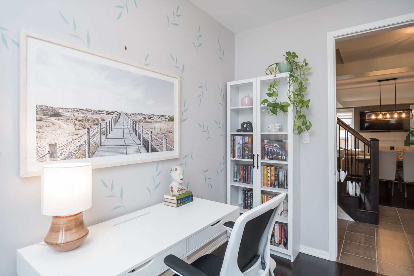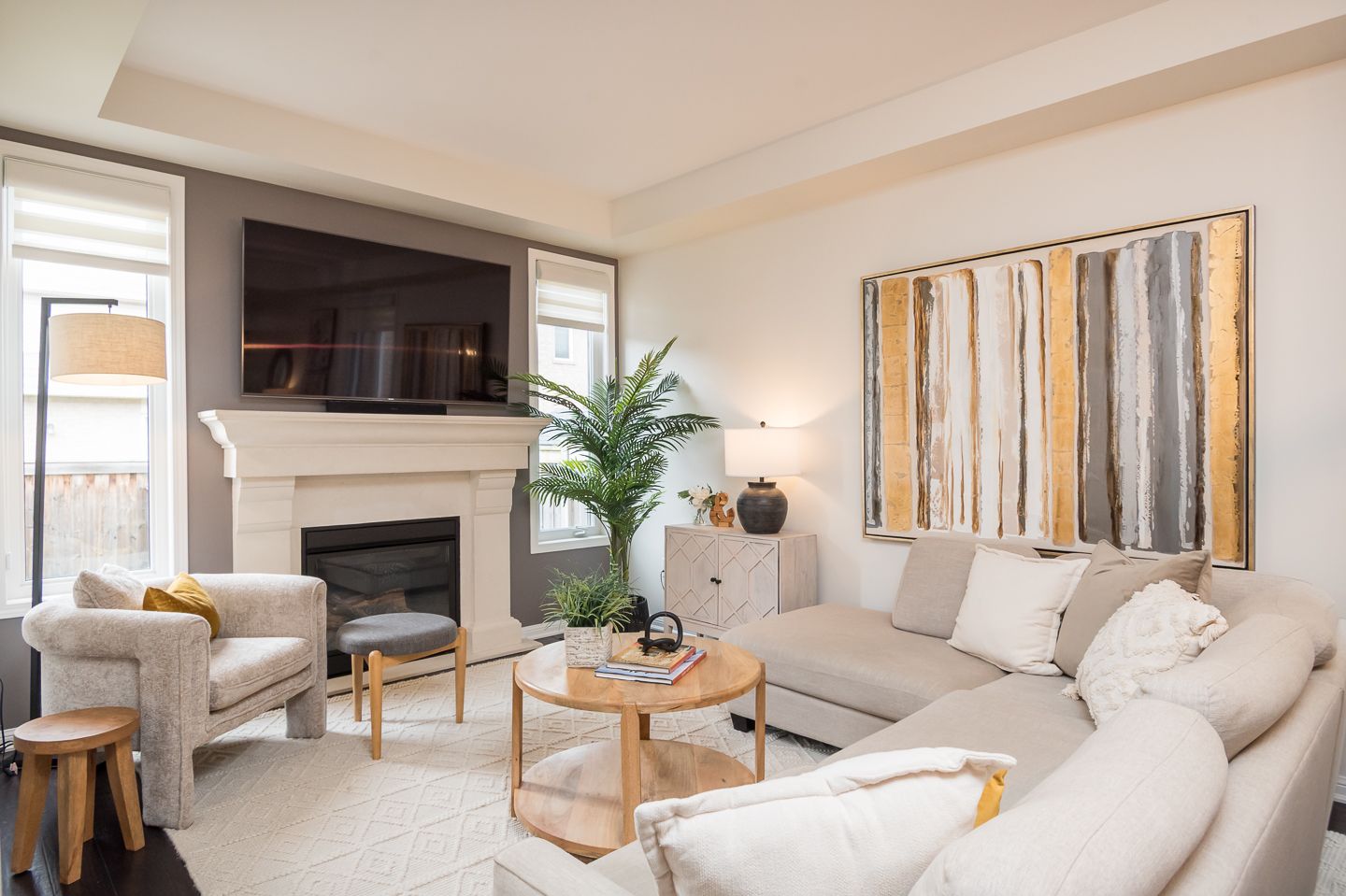 Welcome to this beautifully maintained 3-bedroom home in the sought-after willmott neighbourhood, ideally located with quick access to parks, scenic trails, schools, shops, and just minutes from the popular milton community park. Offering parking for three vehicles with a single-car garage and double driveway, this freshly painted home features stunning hardwood flooring throughout, a covered front porch, and convenient interior garage access. The modern kitchen is equipped with rich espresso cabinetry, quartz countertops, a stylish tile backsplash, and a breakfast bar island with a bright eat-in area and direct access to the private, zero-maintenance turf backyard and patio-perfect for entertaining. The open-concept living and dining space is anchored by a cozy gas fireplace, while a separate front room provides the ideal space for a home office or den. Upstairs, enjoy the convenience of second-floor laundry and a versatile storage nook, along with a spacious primary suite featuring a walk-in closet with custom built-ins and a 4-piece ensuite. Additional highlights include a second bedroom with a walk-in closet, two linen closets, and a full 4-piece main bath. The fully finished basement adds valuable living space with large windows, vinyl flooring, pot lights, a 3-piece bath, plus a cold cellar and ample storage.