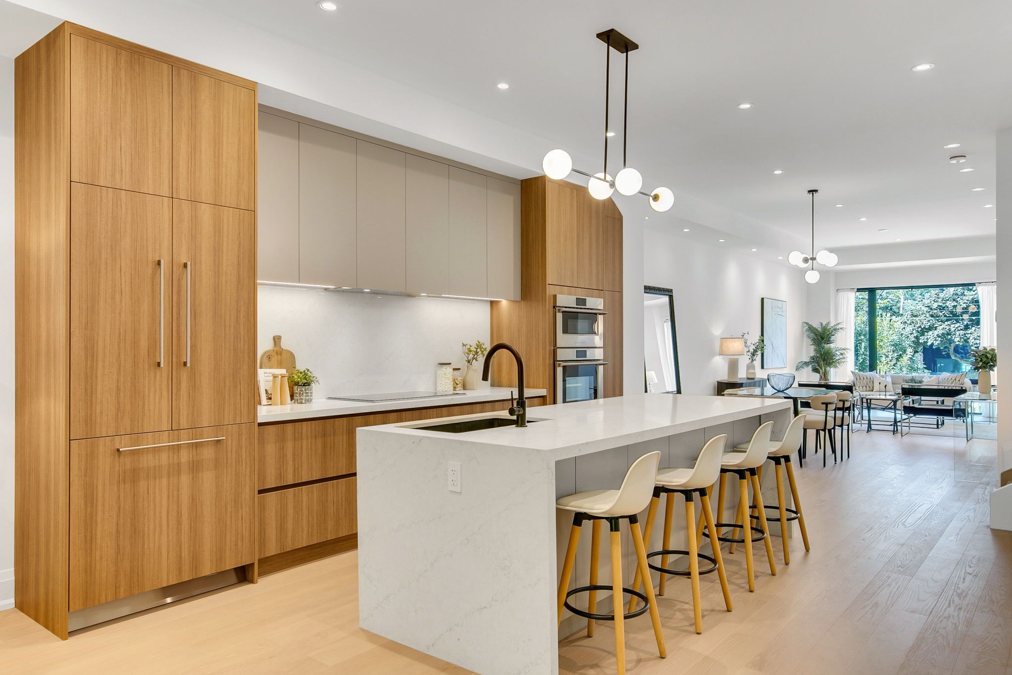 Tucked away on a quiet, tree-lined cul-de-sac in coveted upper forest hill, this custom-built home offers over 3,500 sq. Ft. Of meticulously crafted living space. Designed with both sophistication & function in mind, every detail has been carefully considered to create a residence that is as stylish as it is welcoming. Step inside & feel the sense of light & openness that defines the main floor. Soaring 10 ceilings & expansive windows flood the living & dining spaces with natural light & sleek finishes set a tone of understated luxury. At the heart of the home, the kitchen impresses with a striking waterfall centre island, premium integrated appliances & storage, the perfect balance of beauty & utility. The family room, anchored by a modern gas fireplace & stone facade, opens seamlessly onto the deck & backyard. The architectural glass & wood staircase rises gracefully to the 2nd level, where 3 skylights brighten every step. The primary bedroom is a sanctuary, featuring a generous walk-in closet & a 5-piece spa-like ensuite with a deep soaker tub, double vanity & heated floors. 3 additional bedrooms are well-proportioned, sharing a contemporary 4-piece hall bath, while a convenient second-floor laundry adds ease to everyday living. The lower level extends the home's living space with incredible versatility & feels like a main floor with a walkout to a covered patio & nearly floor to ceiling windows. A spacious rec room, complete with a wet bar, provides the ideal backdrop for casual entertaining. A 5th bedroom & full 3-piece bathroom are perfectly suited for guests, while the mudroom with rough-in for a 2nd laundry & direct garage access & heated floors enhances convenience. This home is more than just a beautiful place to live - it's a lifestyle. A true blend of modern design, thoughtful function & perfectly located near top-rated schools, the shops & restaurants along eglinton & convenient ttc access.