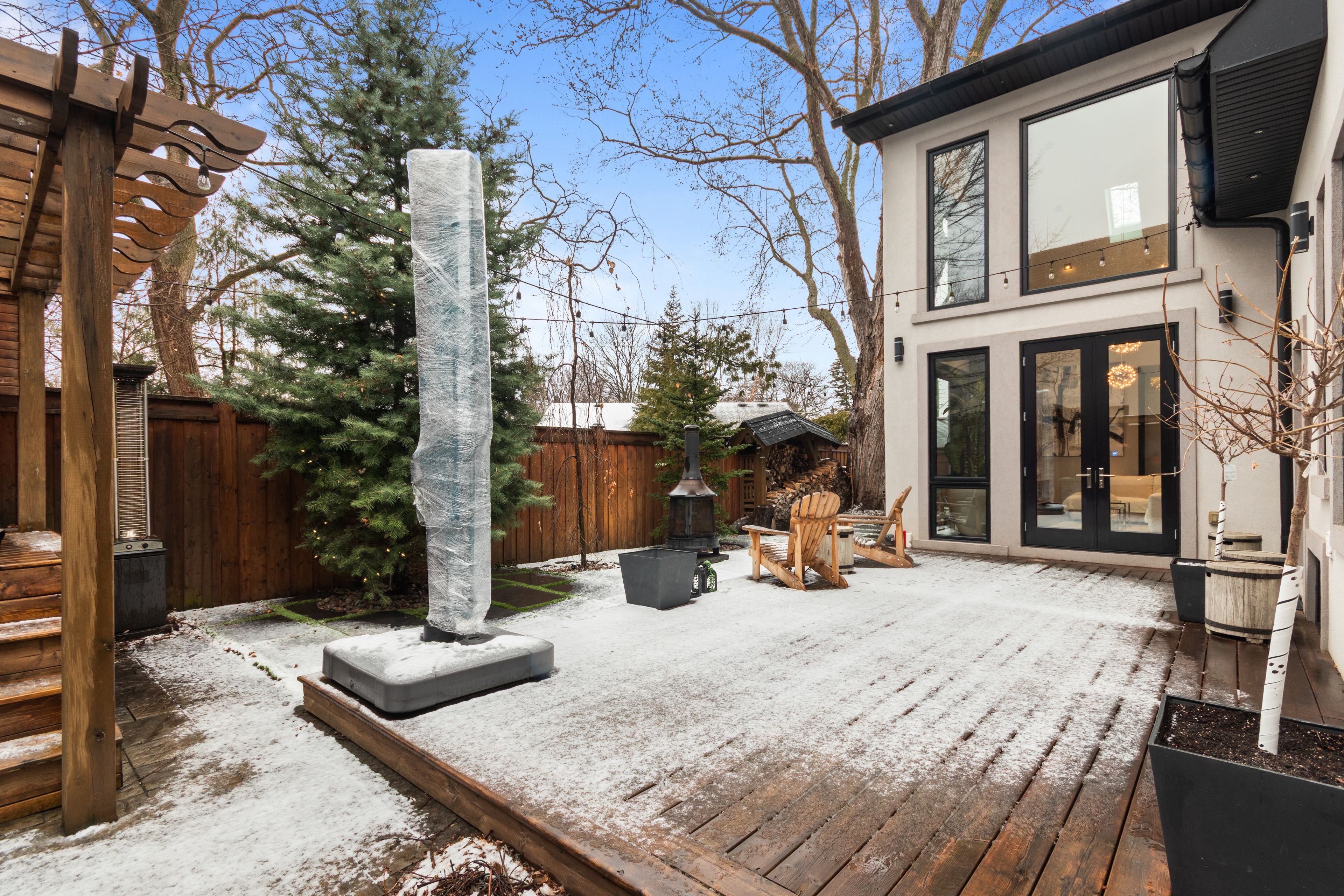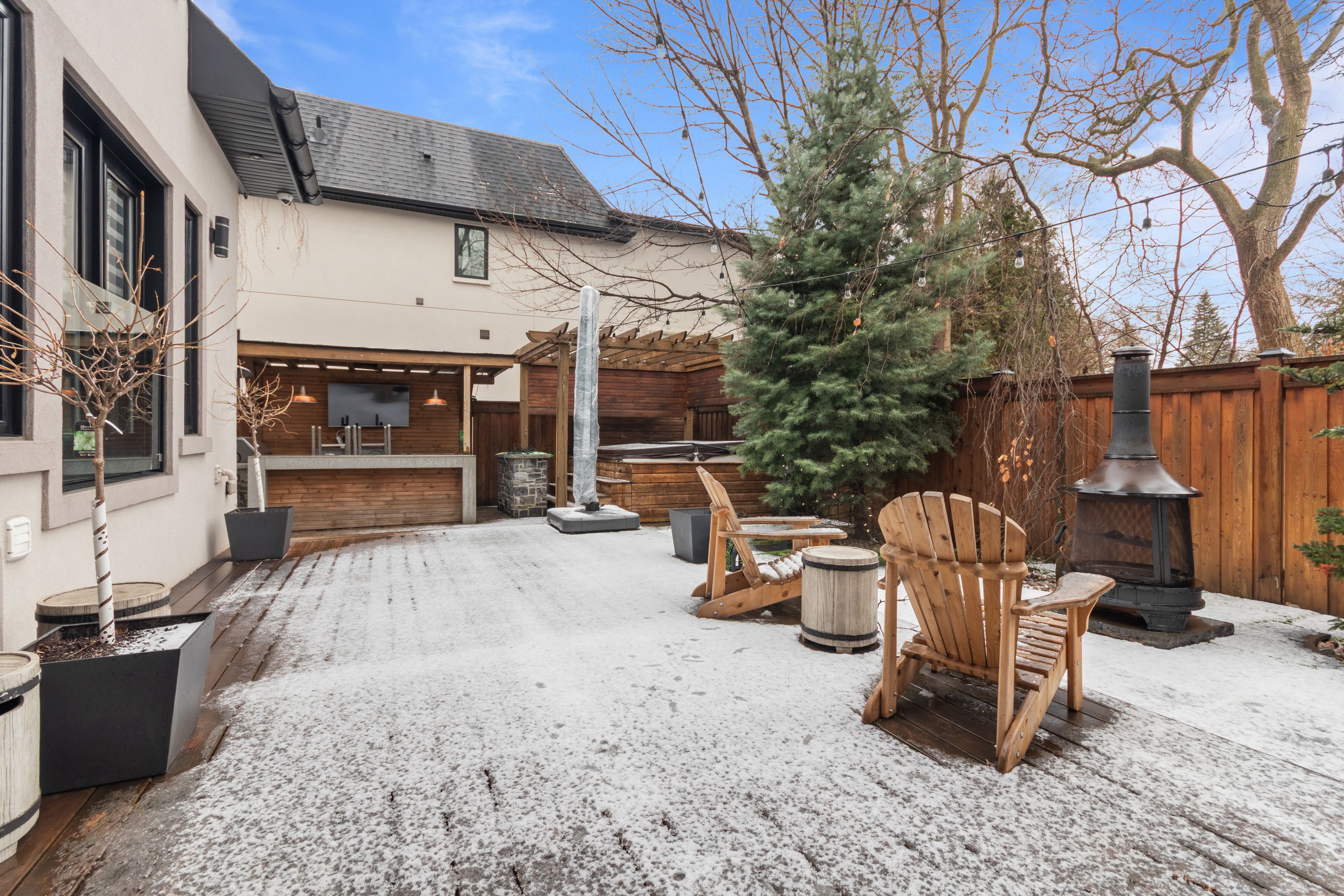 • Private backyard with lounge, BBQ, hot tub, and ample deck space.