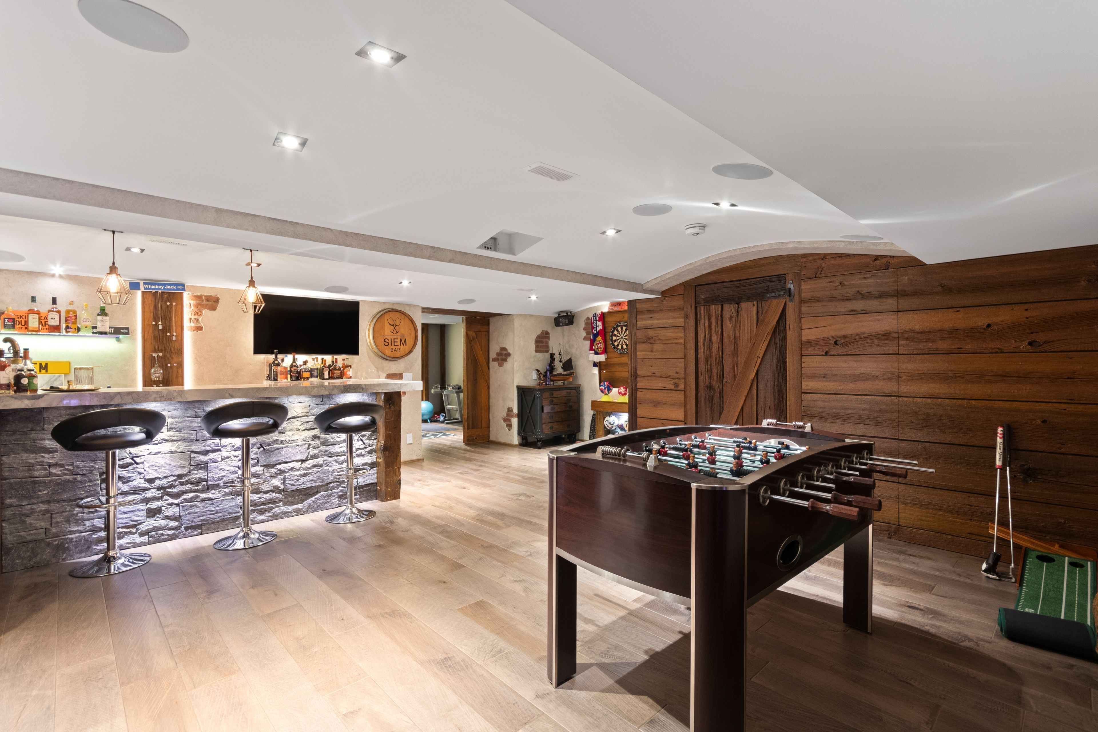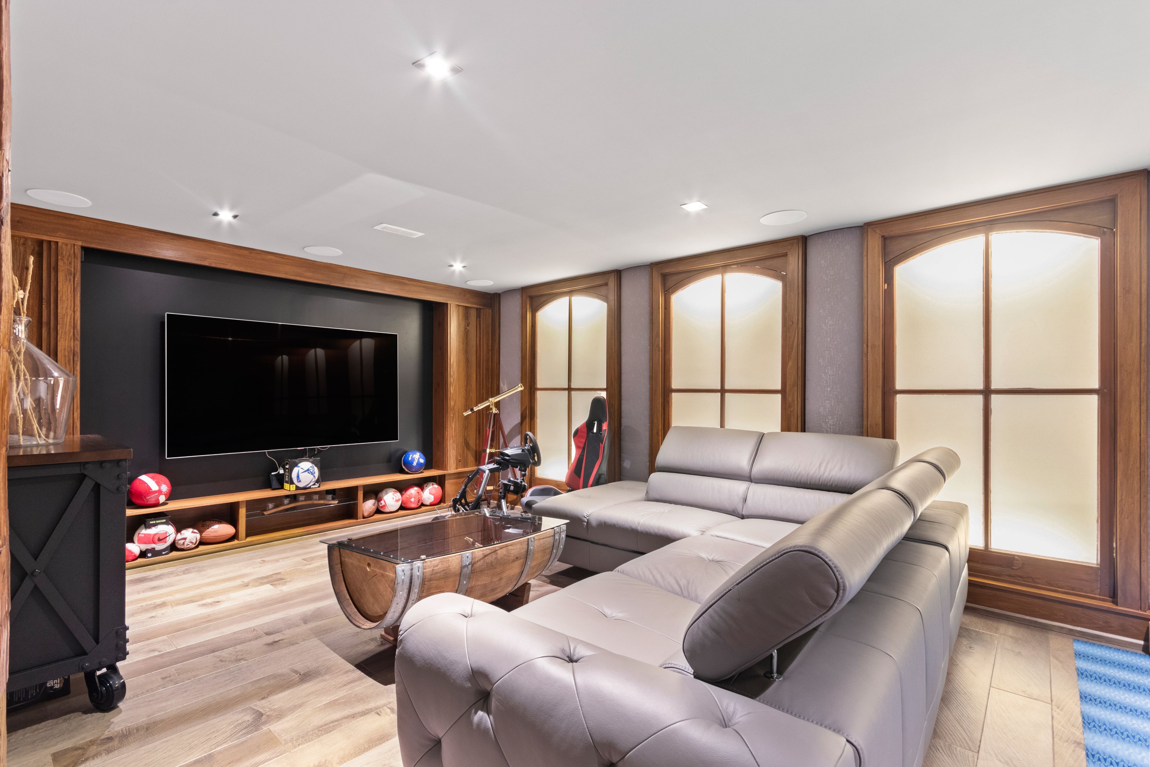 • Lower level features a theatre lounge, games area, and wine cellar.