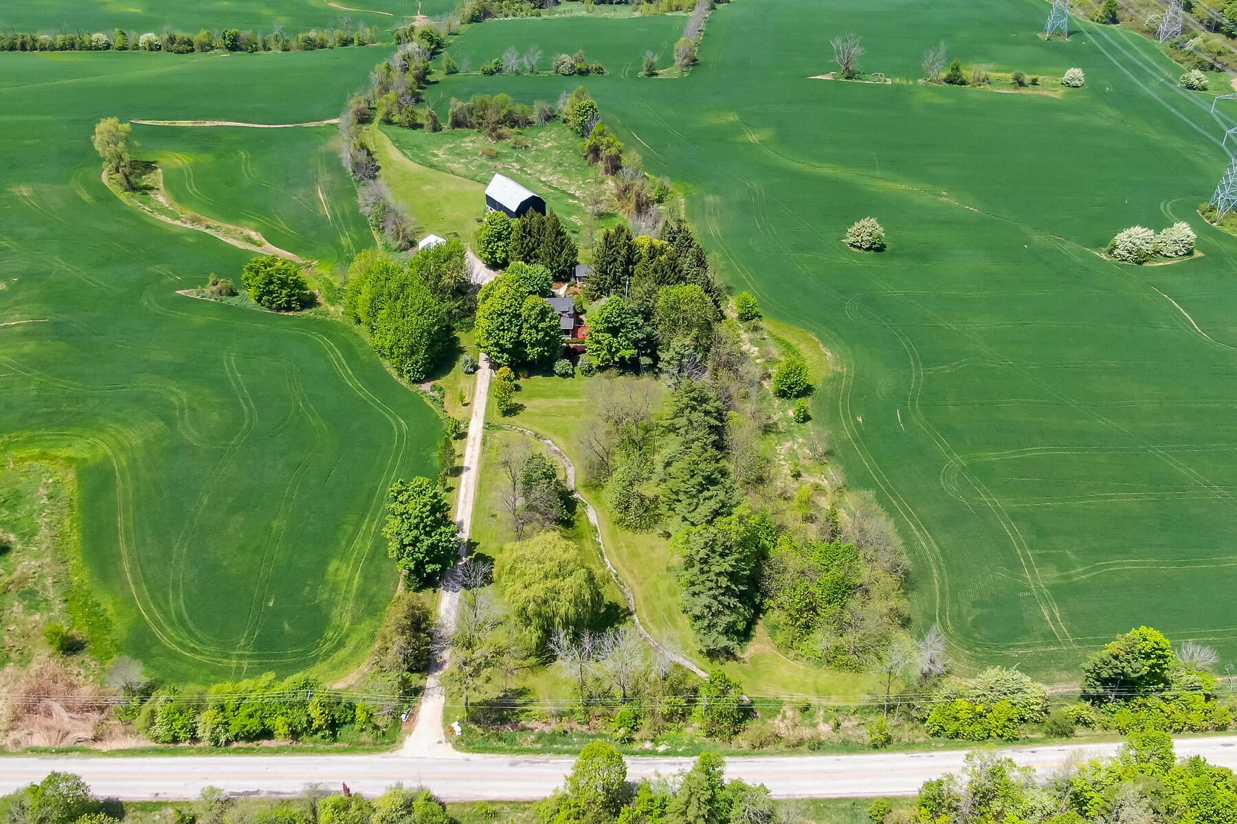 Picture perfect setting on 84+ beautiful acres in the heart of halton hills country! Fabulous tree-lined drive and professionally landscaped gardens welcome you to this gorgeous century home in mint condition and completely updated with lovely country views from every window, spectacular stone studio with tons of charm and incredible barn plus a 5-bay driveshed. Versatile living space. The stone house can be used for an office, teenagers getaway, inlaw suite and so much more. Stunning open concept kitchen with quartz counters, breakfast bar, stainless steel appliances open to a sitting room with gas stove, formal living room w/cozy wood burning fireplace (with wett compliance certificate), pretty dining room, primary suite with walk-in closet and luxurious ensuite, spacious three-season room boasting country views and tons of storage in the basement. The formal living room could work as a main floor bedroom ideal for an elderly family member making it a three bedroom home. Heated floors at entrance, hardwood flooring, main floor laundry, updated plumbing and electrical, skylights, pot lighting, wainscotting & more. Tastefully designed keeping all the charming character but with modern conveniences. Forced air gas heating - a rare find in the country! Also includes solar panels. Approx 65 acres farmed. Prime location centrally located close to georgetown, milton and acton and minutes to the 401 & the go. It's the perfect country package!
