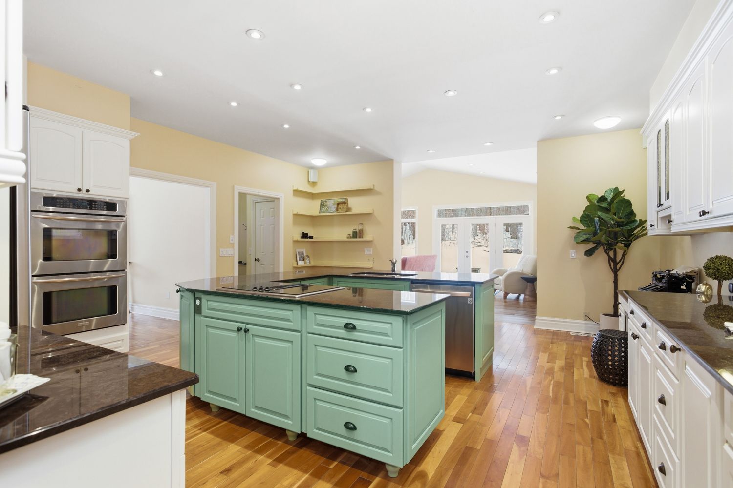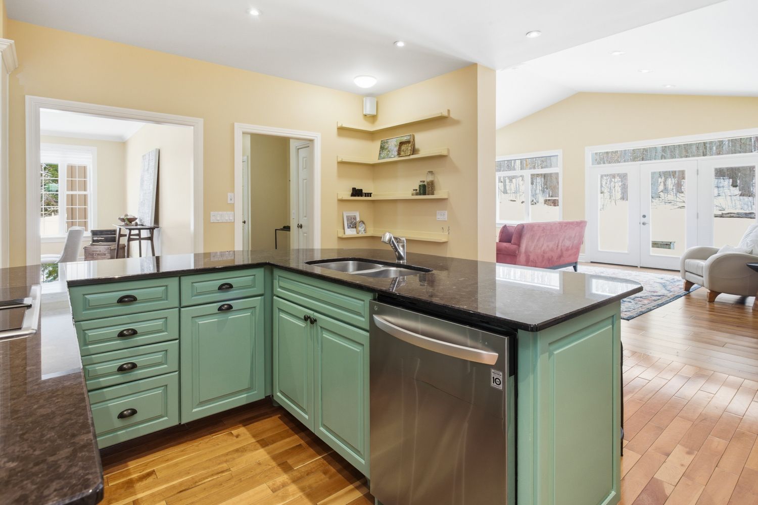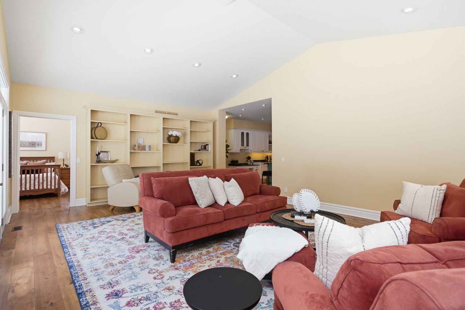 • Bright bungalow layout with a large custom kitchen and multiple living areas.