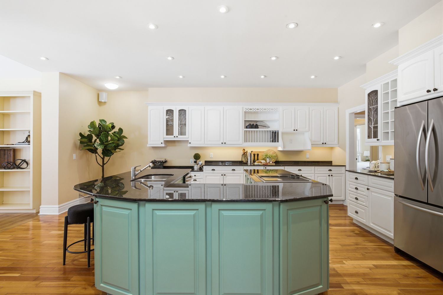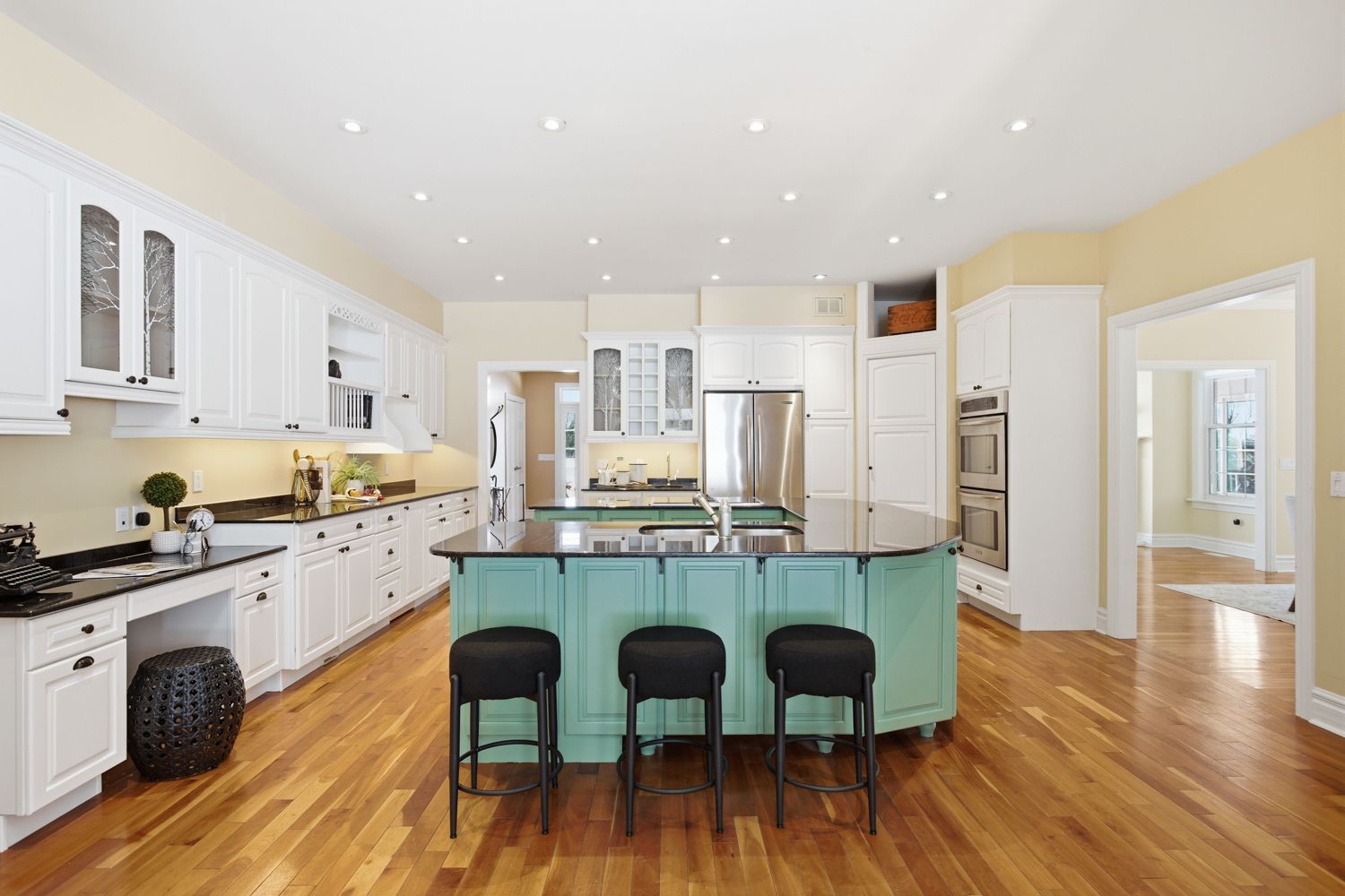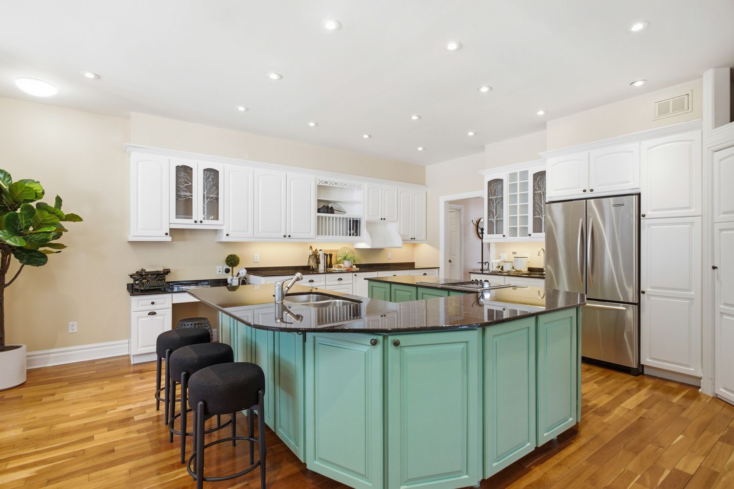 • Bright bungalow layout with a large custom kitchen and multiple living areas.