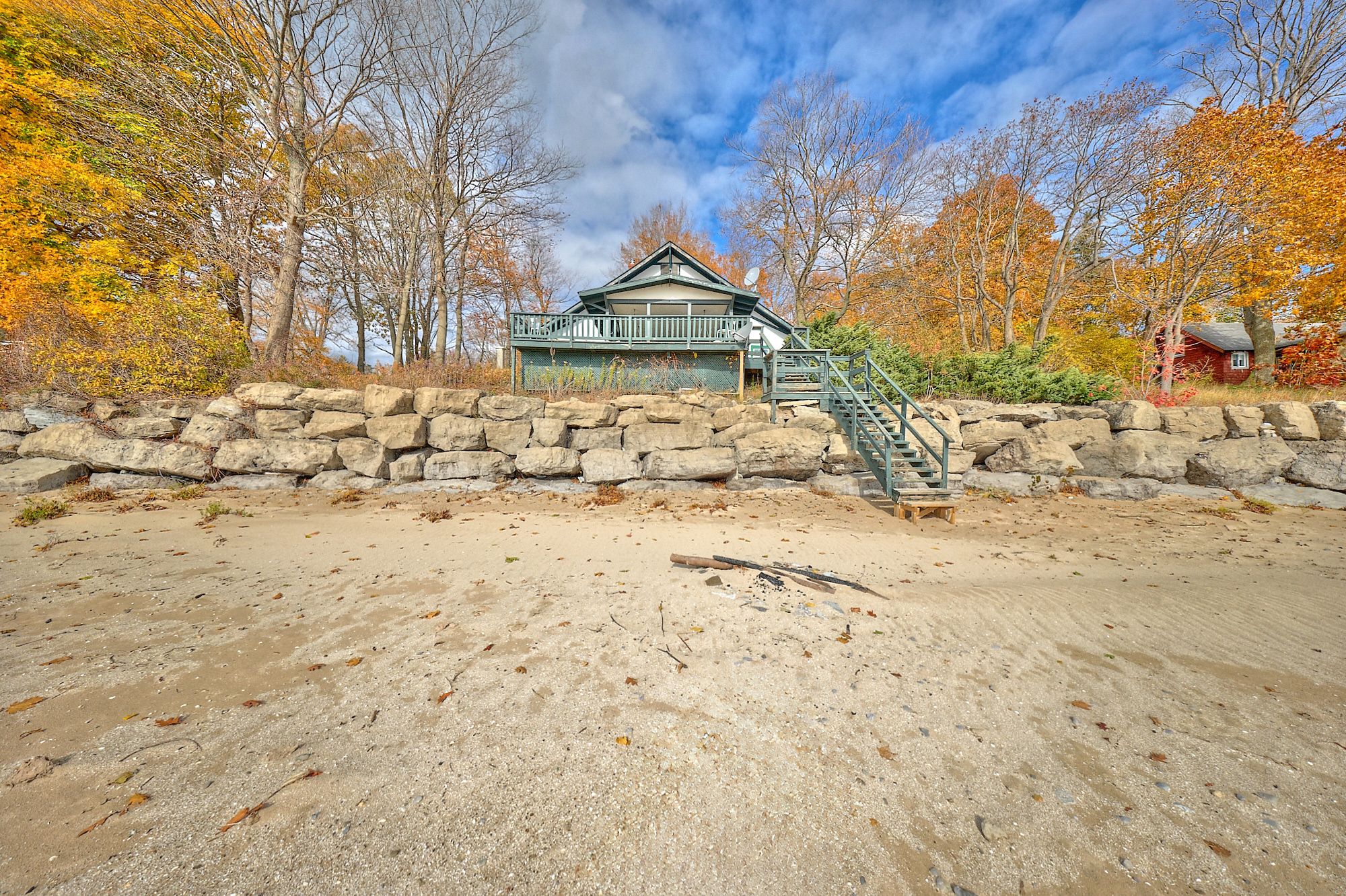 This extraordinary lake erie waterfront property, offers 205 feet of private shoreline and 2. 7 acres on beautiful lorraine bay. With a sandy beach, shallow entry and direct southern exposure, you'll enjoy sun-filled days & panoramic views across the lake to new york state. This estate features two idyllic homes positioned side by side, each with its own driveway, lakeside porch & private water access. The guest home is 1061sqft & has been fully renovated & winterized. Live in one and invite family or friends to enjoy the other. The main residence is 3595sqft showcasing a grand living room with vaulted ceilings, wood floors, built-in bookshelves & a cozy reading loft. A stunning stone fireplace & built-in bench seating frame the breathtaking views of lorraine bay. With 7 bedrooms, 3 full bathrooms and an additional large attic room that could serve as a playroom, studio, or sleeping quarters, there's space for everyone. The bright dining area & a covered porch with custom swings make this home ideal for gathering & entertaining. The guest home offers three bedrooms, one bath & a charming stone fireplace in the open-concept living & dining area with easy access to a covered deck overlooking the lake. An unfinished attic provides additional potential for expansion or storage. The north side of the property, across firelane 1, includes a tennis court with a shaded seating area & a large barn once used for horses, bordering whiskey run golf course. A private sandy beach ensures endless summer enjoyment in a peaceful and family-friendly bay. Conveniently located close to restaurants, marinas, major hwys, this property is just 25 minutes from buffalo & niagara falls, and 1. 5 hours from toronto. The potential here is unlimited - whether as a private family estate, vacation retreat, or investment opportunity. Severance may be possible; buyer to conduct their own due diligence. Don't miss your chance to own this rare & private piece of lakeside paradise!
