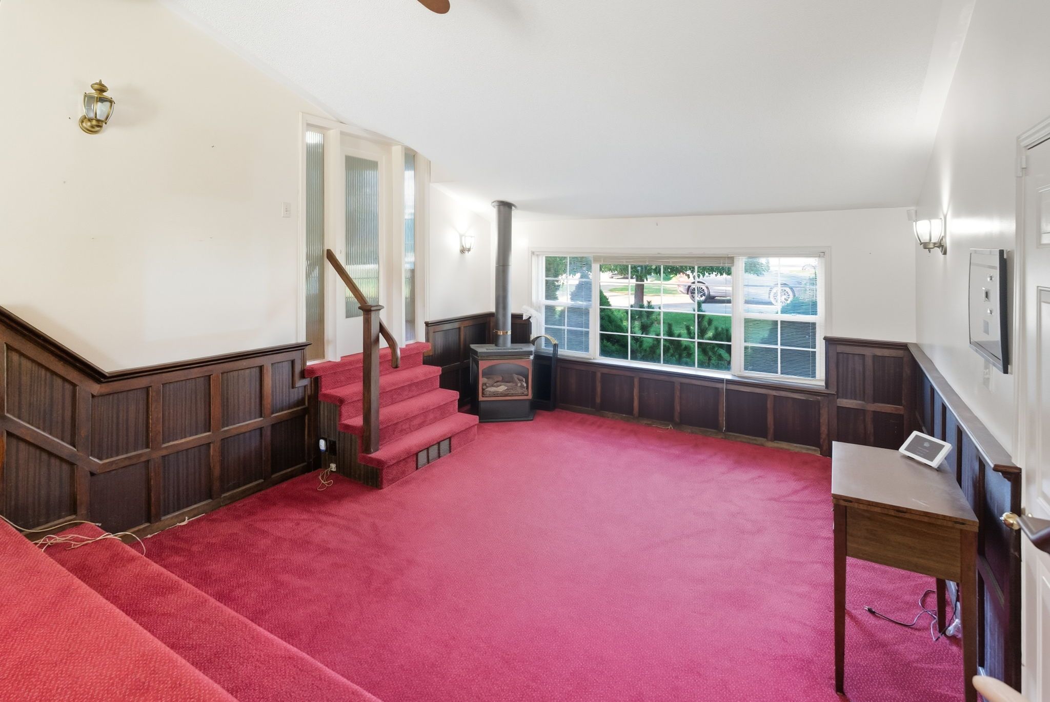 • Great room features vaulted ceilings, gas fireplace, and large picture window.