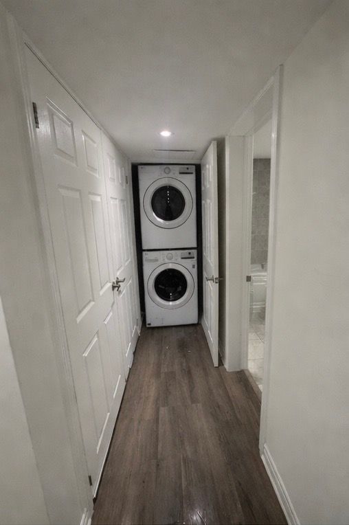 • Includes stainless steel appliances and stacked washer and dryer.