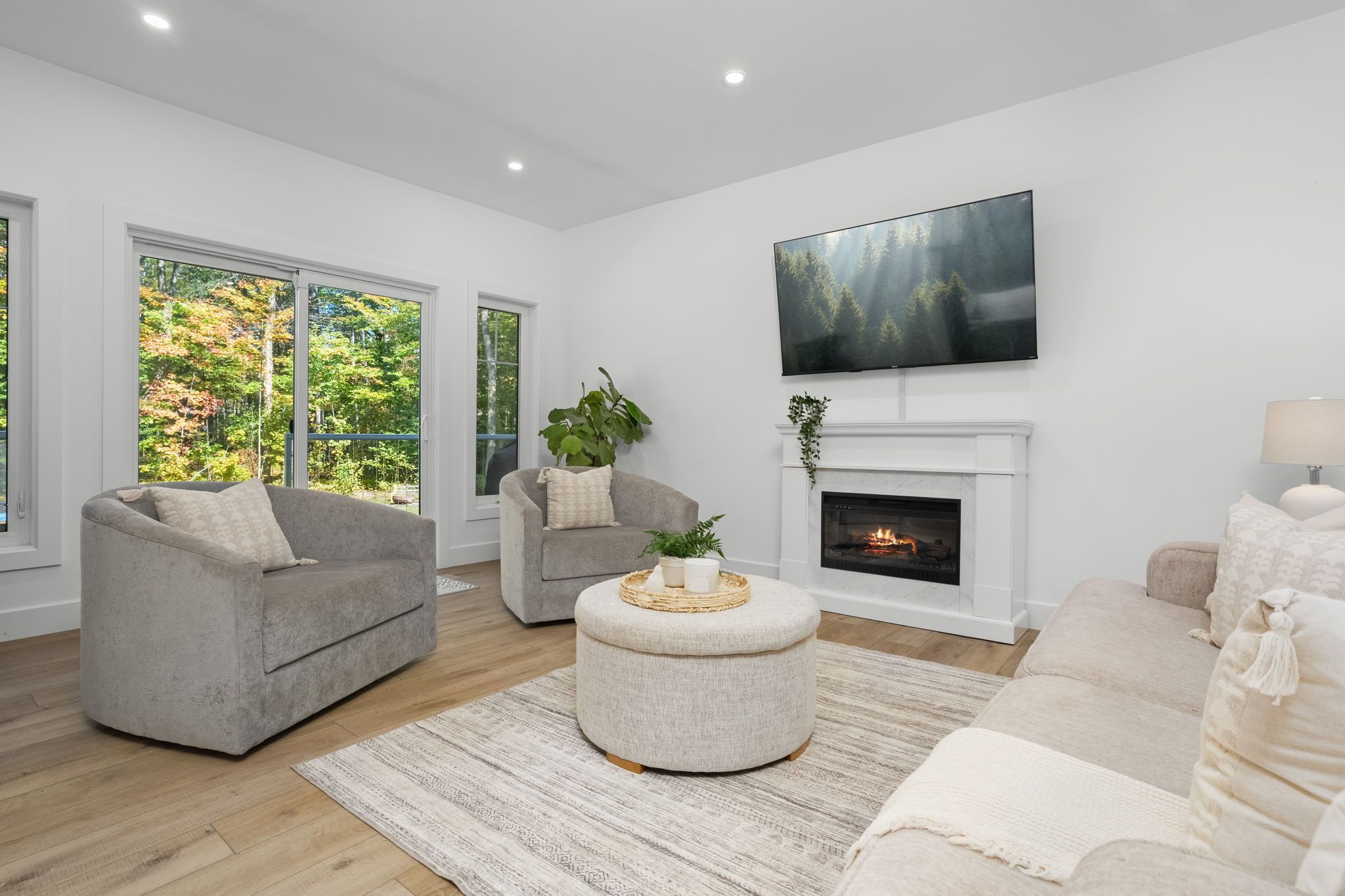 Welcome to your new home in muskoka. Nestled in an exclusive enclave on a quiet, no-through street, this 3-year-old custom-built bungalow offers 2,200 sq. Ft. Of thoughtfully designed, one-level living. Set on a private one-acre lot framed by mature trees, the home is both a retreat into nature and a practical base for modern living. From the moment you step inside, you'll notice the generous sense of space and light. Each window draws in natural light and captures calming views of the surrounding trees, creating a seamless connection between the indoors and outdoors. With soaring 9-ft ceilings and an open, flowing layout, the interiors feel spacious and warm and inviting. The heart of the home is the custom kitchen, crafted by kas kitchens in barrie, complete with a large pantry, quality finishes, and seamless connection to the dining area and deck for effortless entertaining. The primary suite is tucked to one side of the home for privacy and features his-and-hers closets. Two additional bedrooms on the opposite side of the house create balance and functionality for family living or hosting guests. Built with care and attention to detail, this home combines comfort and efficiency. Features include a forced-air propane system, icf foundation, spray-foam insulation, an on-demand boiler, and radiant in-floor heating in the foyer, the two 4pc tiled bathrooms, and the insulated 3-car garage, perfect for year-round use. The full, unfinished basement is equal in size to the main level and boasts 9-ft ceilings and a cold cellar, offering endless potential for future living. The neighbourhood is a hidden gem, peaceful and surrounded by nature yet only minutes to the highway. Commutes are easy: orillia (23 mins), barrie (43 mins), with bracebridge and gravenhurst also nearby. Whether you're drawn to muskoka for its natural beauty, small-town warmth, or easy access to larger centres, this location brings it all together.