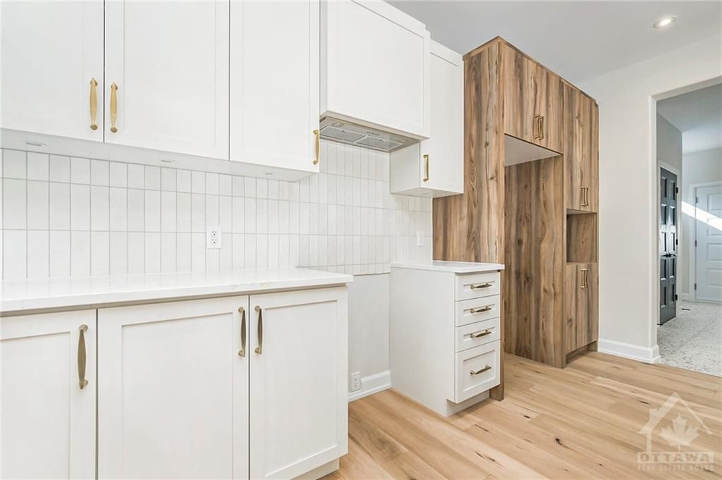 • Open concept kitchen with a large walk-in pantry for convenience.