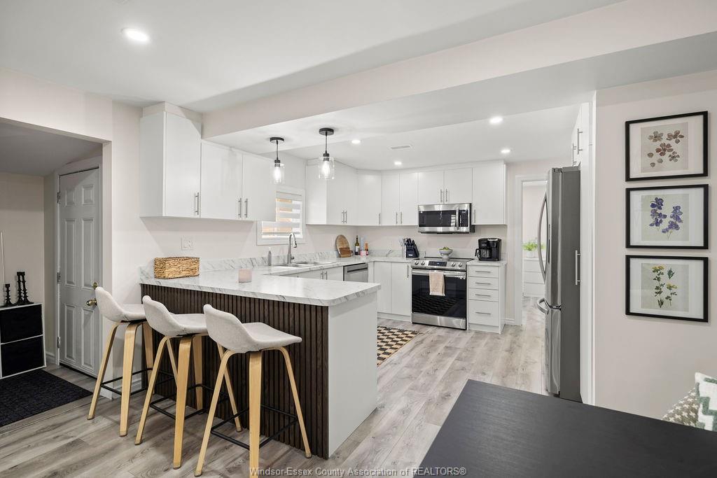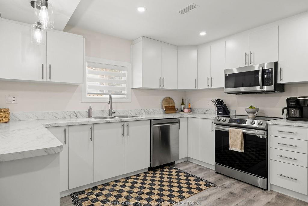 • Renovated kitchen includes stainless steel appliances and ample cooking space.