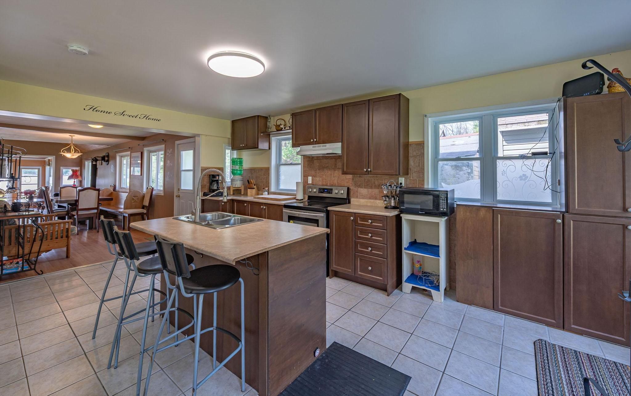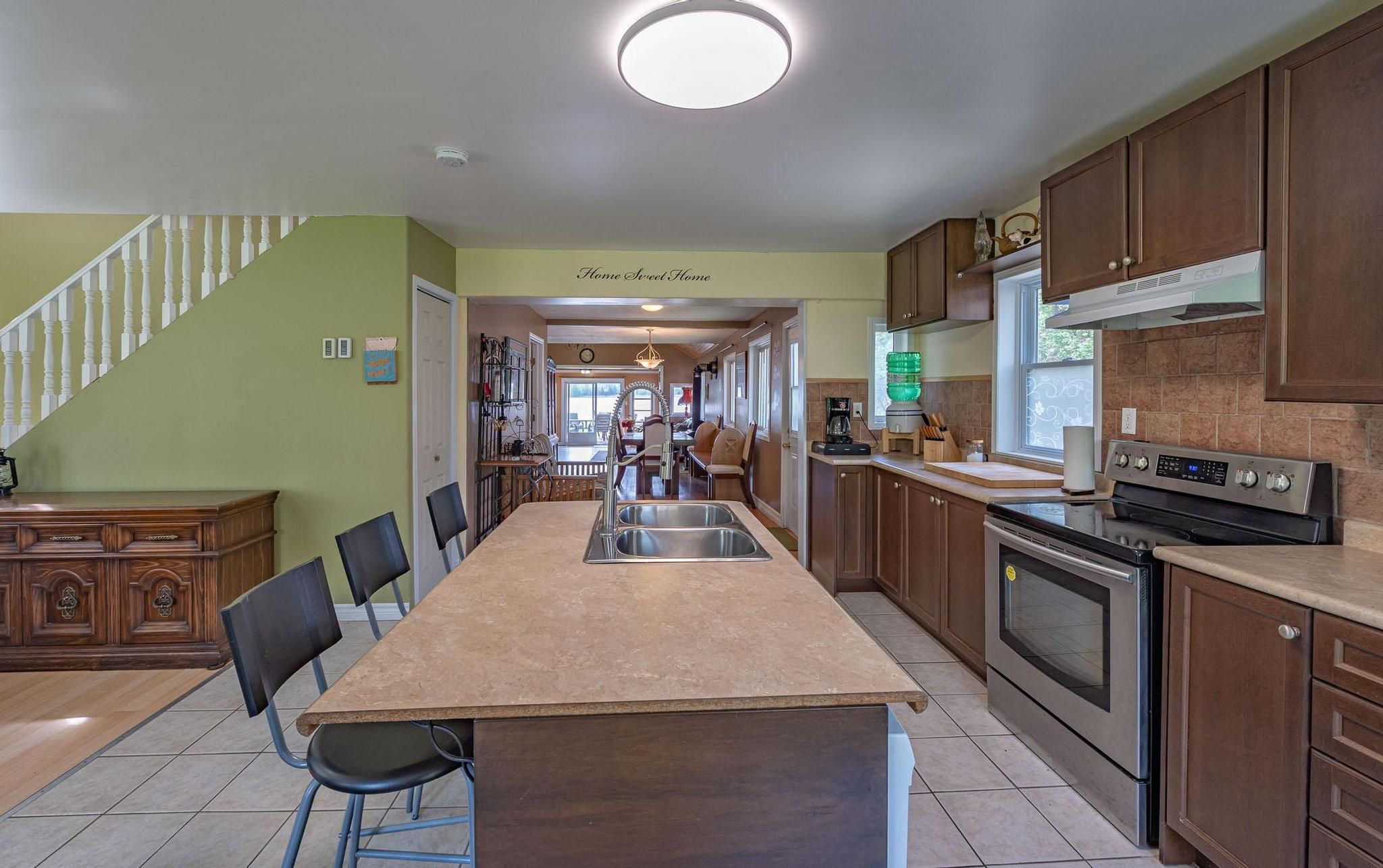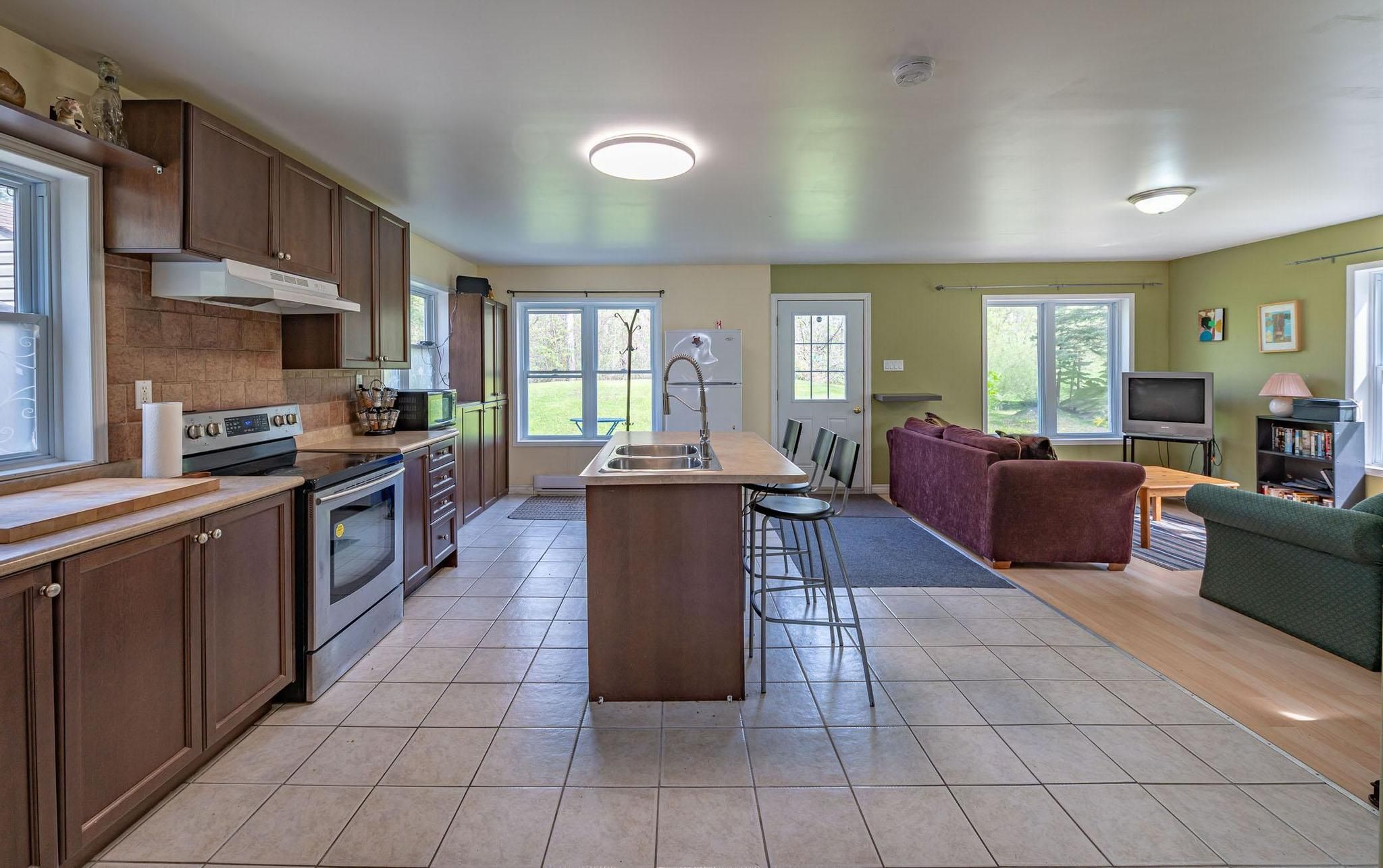 • Spacious open-concept kitchen and living area with beautiful water views.
