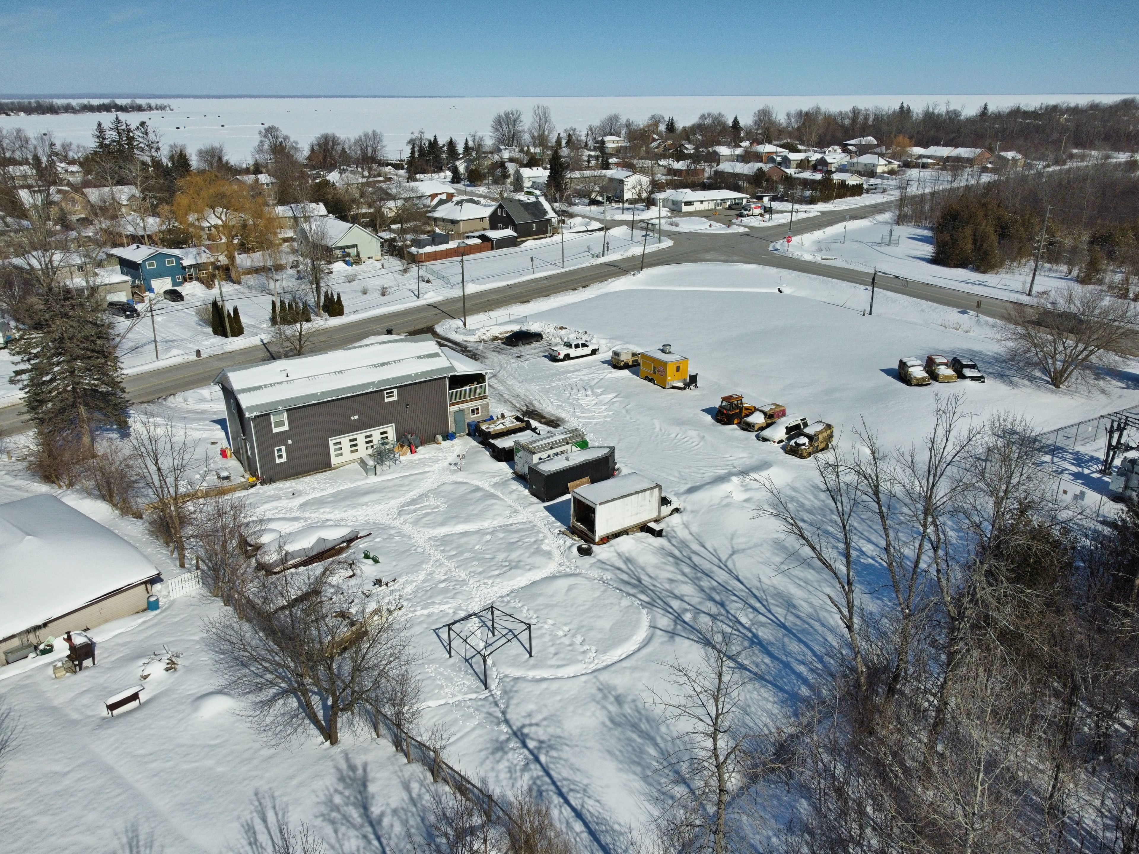 Prime high-visibility commercial corner in georgina with potential for future development! 1035 metro road north offers a rare c2-zoned, 2-storey building on approximately 1. 4 acres at woodbine avenue & metro road north, directly across from the lcbo/convenience store. With 2,740 sq. Ft., 28 parking spaces, ample outdoor storage, and approval for a refreshment vehicle, this property delivers exceptional exposure and flexibility. The main floor features two retail/commercial units, a 2-piece washroom, and a health unit-approved commercial kitchen currently operating as a bakery. A 16' x 7' drive-in garage door supports efficient deliveries and service operations, complemented by aluminum storefront windows/doors and a fire-rated suspended ceiling. Upstairs, a legal 3-bedroom, 2-bathroom apartment with ensuite laundry and a 24' x 10' covered porch is ideal for owner-occupancy, staff housing, or rental income, with potential to convert to office space. Extensively renovated, the building includes a metal roof, 22-gauge siding, updated insulation, drywall, lighting, flooring, plumbing, electrical, and radiant heating. The commercial space offers 200-amp, 240v single-phase hydro, a weissman propane boiler with on-demand hot water, and a fully equipped kitchen (double sink, hand-wash station, stove, hood fan, 20-amp/40-amp outlets). Municipal services, fibre internet, and cable are available. Permitted signage for up to three 4' x 8' signs enhances visibility. C2 zoning allows a wide range of uses including restaurant, retail, office, clinic, veterinary, catering, garden centre, motor vehicle sales, service shop and more. Ideally located near lake simcoe, beaches, parks, sibbald point provincial park and the roc, the property benefits from strong local and seasonal traffic, with easy access to highway 404, highways 48 and 12.