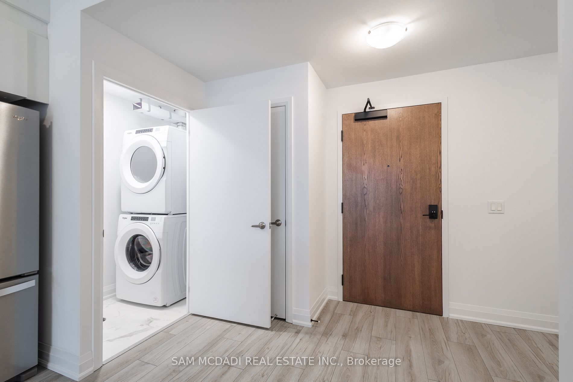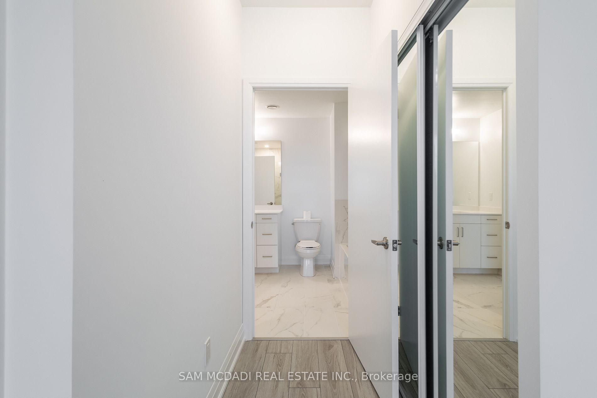 Located in the heart of clarkson village, steps away from clarkson go station & minutes to port credit! This condo offers a spacious open-concept layout with 1 bedroom + den, 1 bathroom, and over 800 square feet of modern living space. Included are 1 parking space with ev charger rough-in and 1 locker. Enjoy a large open balcony and floor-to-ceiling windows with stunning south-facing views of the sheridan creek ravine and parkette. The suite features 9-foot ceilings and thousands of dollars in upgrades, including: ev car charger rough-in, kitchen island circuit, microwave with trim kit, upgraded waterproof laminate flooring throughout, 36 upper cabinets in the kitchen with elegant silver-white quartz counters, frameless glass shower with 12x24 calacatta porcelain tiles, upgraded trim and baseboards. Other highlights include a large island with a breakfast bar, a spacious primary bedroom with two closets and a 4-piece ensuite, and a versatile den that can function as a second bedroom, home office, or flex space. Building amenities: 24-hour concierge, fitness centre with an indoor pool, whirlpool, sauna, and a landscaped terrace, yoga area, rooftop multipurpose room with bar, kitchen, and dining area, plus walkout terrace for entertaining, rooftop barbecue and dining areas, two furnished guest suites, bicycle storage, pet spa, lounge/library, billiard room, hobby and workshop room & car wash area. Located steps from clarkson go station and minutes to port credit, this home is surrounded by fantastic local amenities. Explore the trendy shops, gourmet dining options, and waterfront parks of clarkson village and port credit. Enjoy scenic trails along the shores of lake ontario and the tranquility of rattray marsh. Don't miss this opportunity to experience luxury, convenience, and modern elegance in one of clarkson villages most sought-after locations.