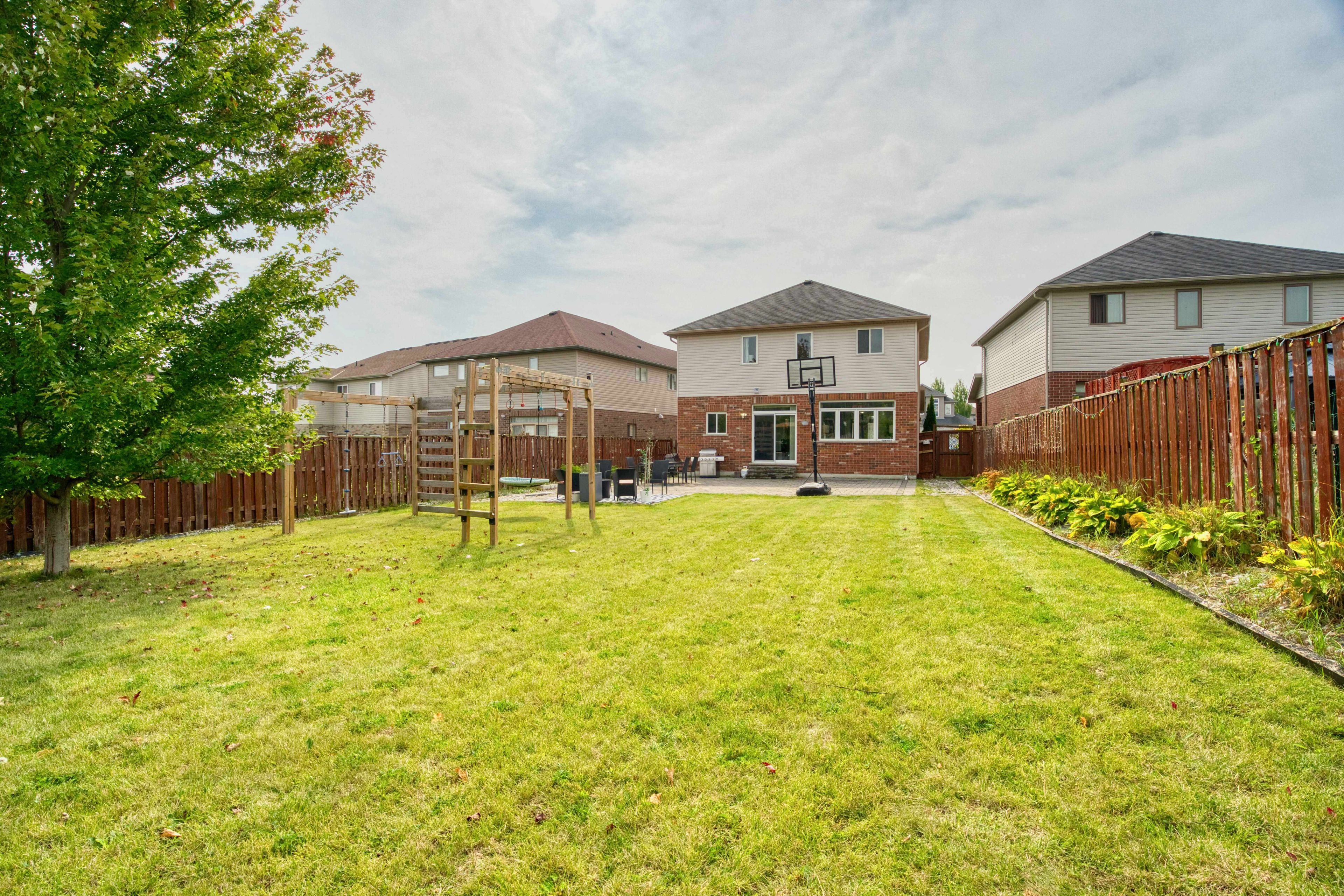 Exceptional family home on a deep lot in the desirable oakridge crossing neighborhood. The property features a front sunroom (2019), backyard playground (2019) and patio (2019)ideal for outdoor enjoyment. Open concept main floor with 9ft ceilings, versatile office/den, and rich hard surface flooring. The designer kitchen is upgraded with premium cabinetry, stainless steel appliances, walk-in pantry, pendant lighting, and a cozy living area with striking stone front fireplace. The upper level offers a luxurious primary suite with 5-piece ensuite (with a corner jacuzzi and double sinks), three more generous sized bedrooms, and convenient second-floor laundry. The fully finished lower level with egress windows has a separate entrance perfect for a future in-law suite or rental income. A major added bonus: jh supermarket opening soon nearby, adding convenience and boosting neighborhood appeal. Close to parks, trails, uwo, costco, farm boy and all amenities.