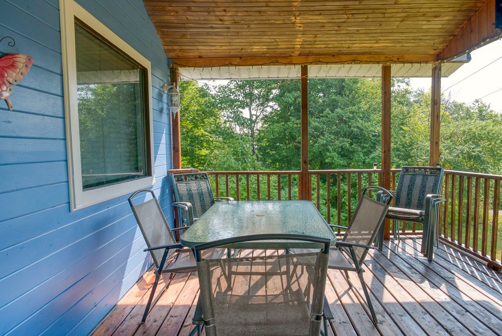 • Large covered porch with great views, ideal for relaxation and gatherings.