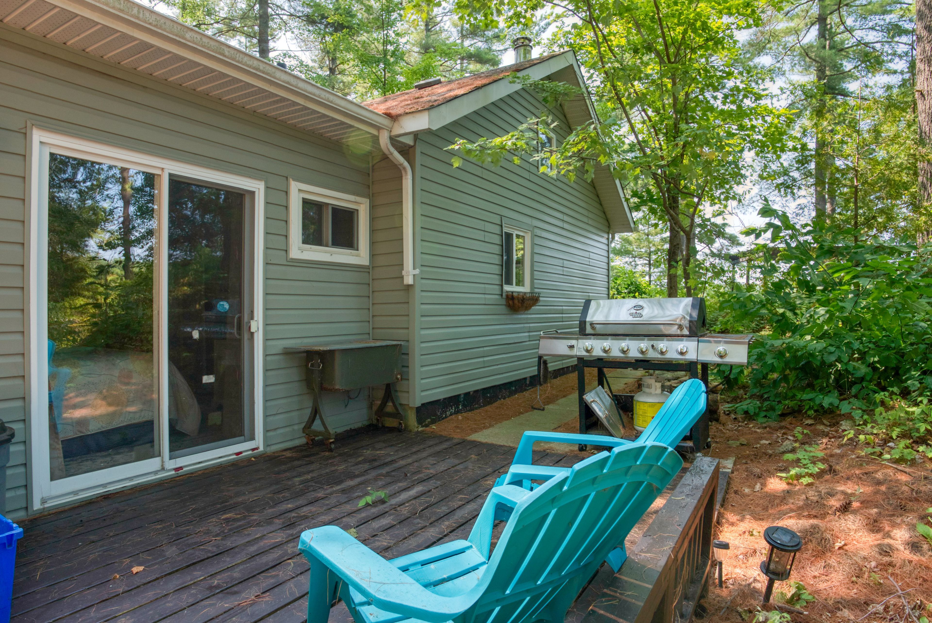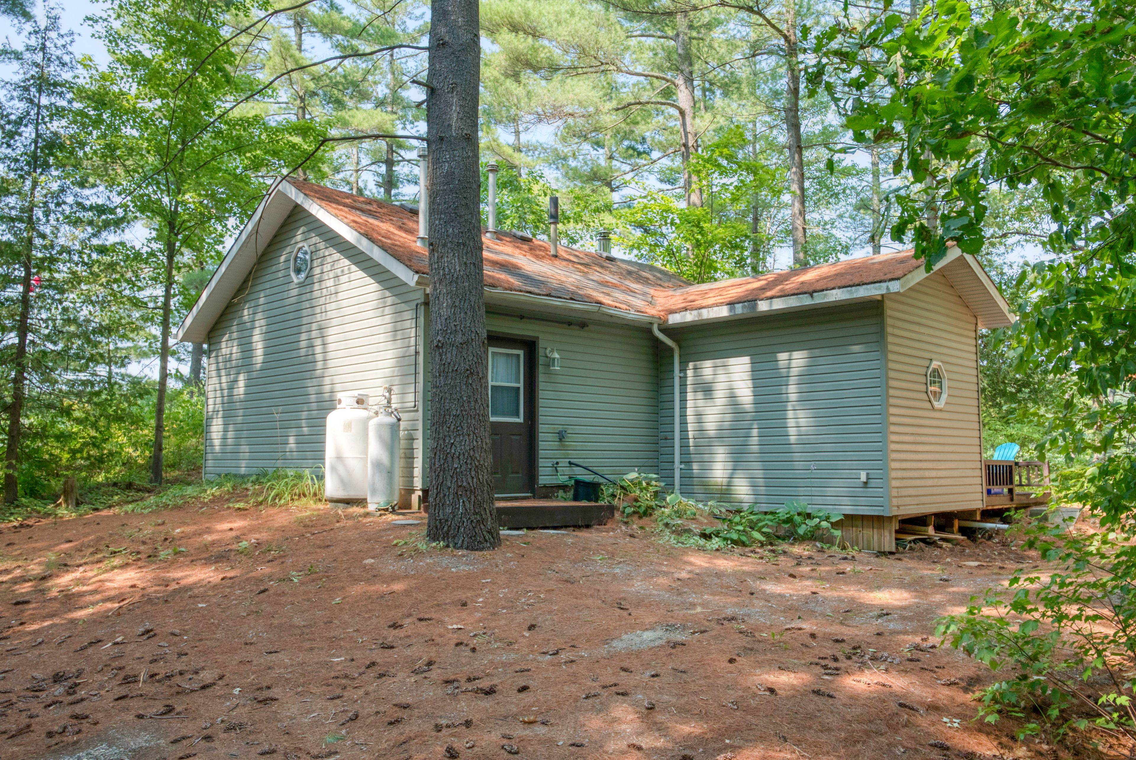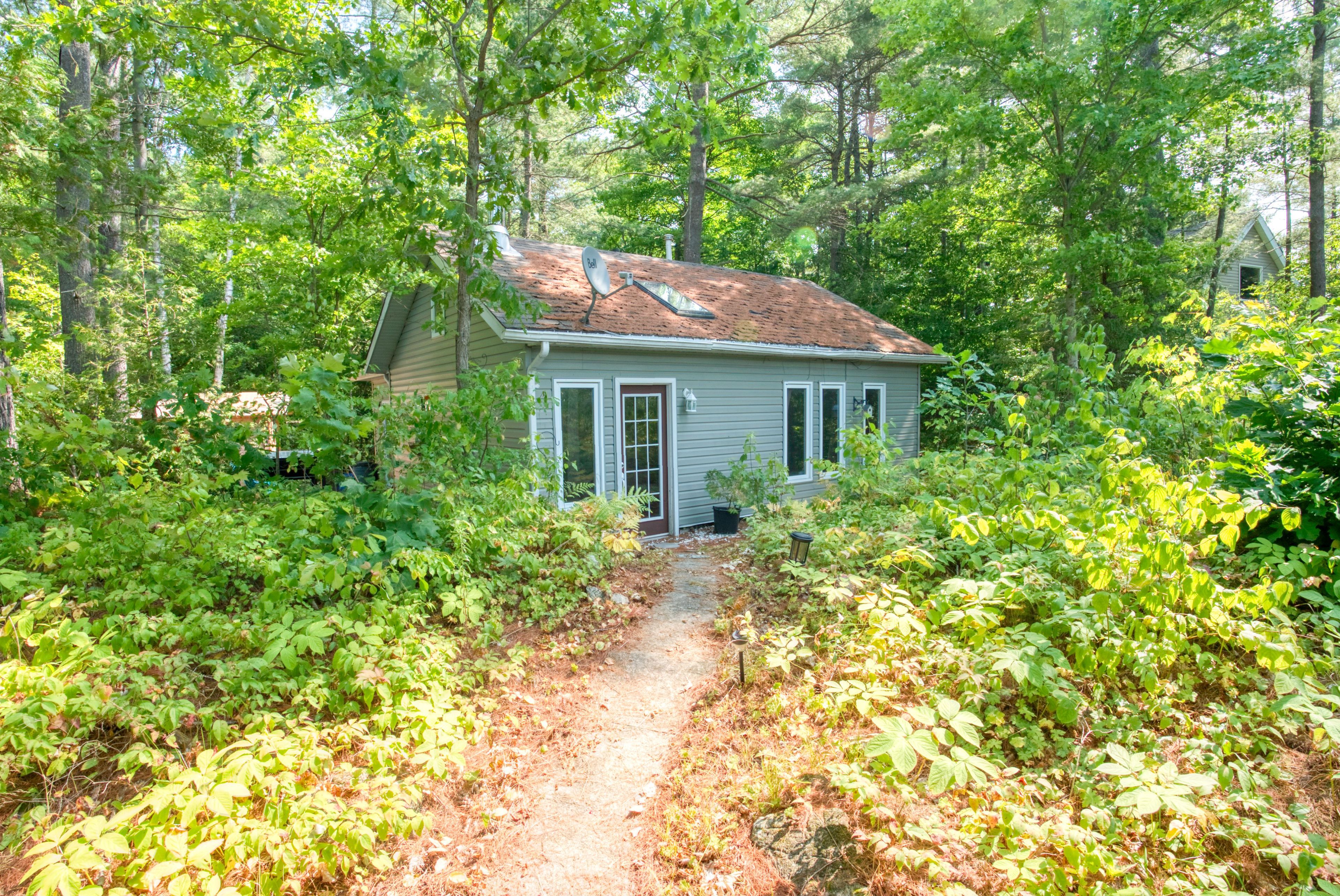 Set on peaceful twin lake along the historic k & p trail, this charming off-grid cottage promises tranquility and a true escape to nature just one hour from kingston. The cottage features two bedrooms, a vaulted ceiling with a skylight that makes the open living area feel bright and spacious. The cottage has a propane fridge, propane fueled style woodstove, cooking stove, and hot water tank. The gray water leads to a french well under the driveway and the toilet is composting. Enjoy eco-friendly living with all the essentials, as the sale includes most furnishings and kitchen appliances for a turnkey move-in. There is even a newer 9 x 11 shed for bikes and water toys. Step outside to the hillside gazebo perfect for morning coffee or evening cocktails while the private dock invites you to fish, swim, or launch your kayak into waters renowned for excellent bass fishing. A paddle boat and small fishing boat are included. Alternately, the property's serene setting is ideal for outdoor trail enthusiasts, with direct access to hiking, cycling, and wildlife watching along the k & p trail. Here, you can embrace the simple pleasures of lakeside living, where days are shaped by the rhythms of nature and every sunset is an invitation to unwind. Whether you're seeking a quiet weekend retreat or a base for adventure, this ready-to-enjoy cottage offers comfort, character, and lasting memories by the water. Power equipment included in the price. Call, text, or email for additional details.