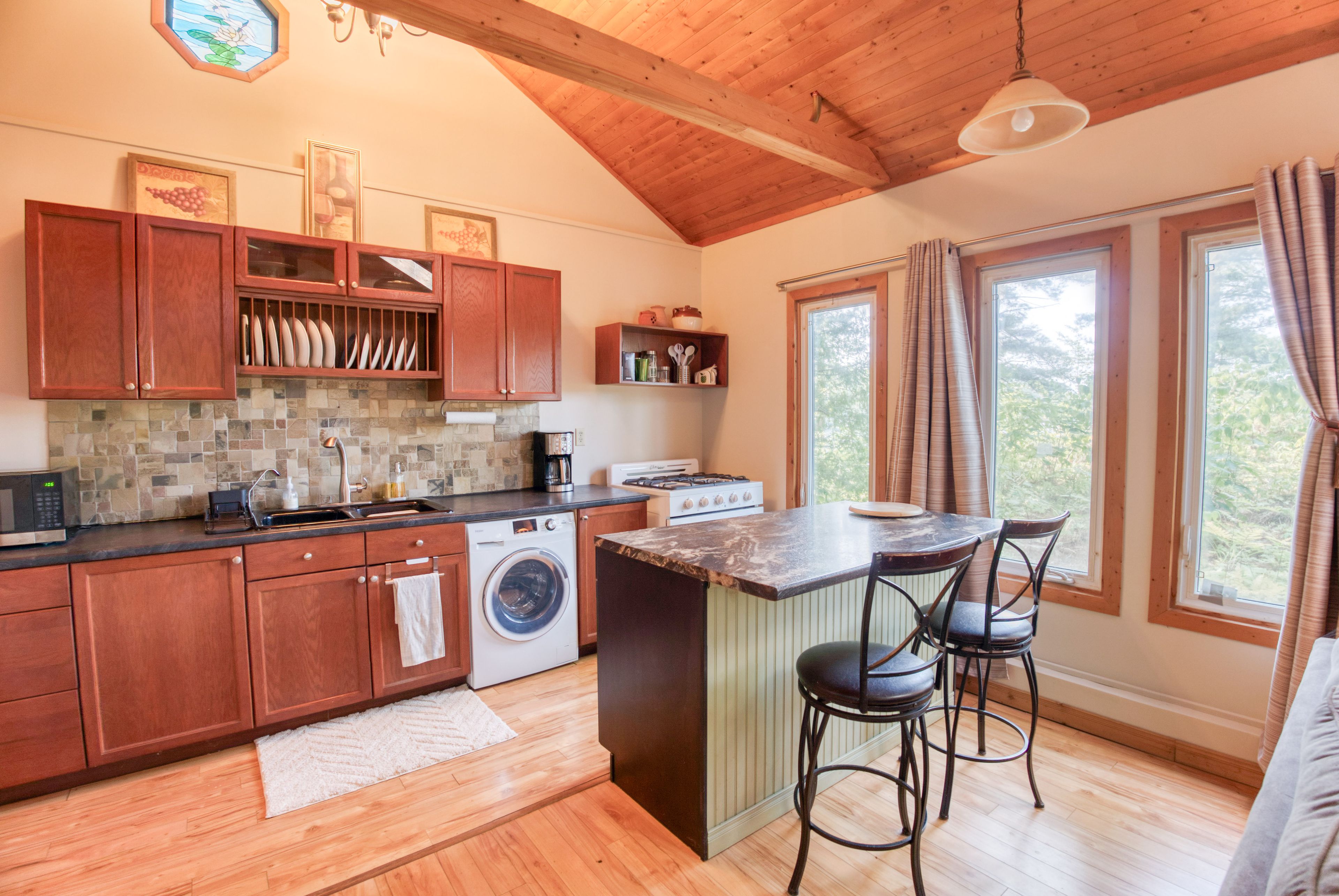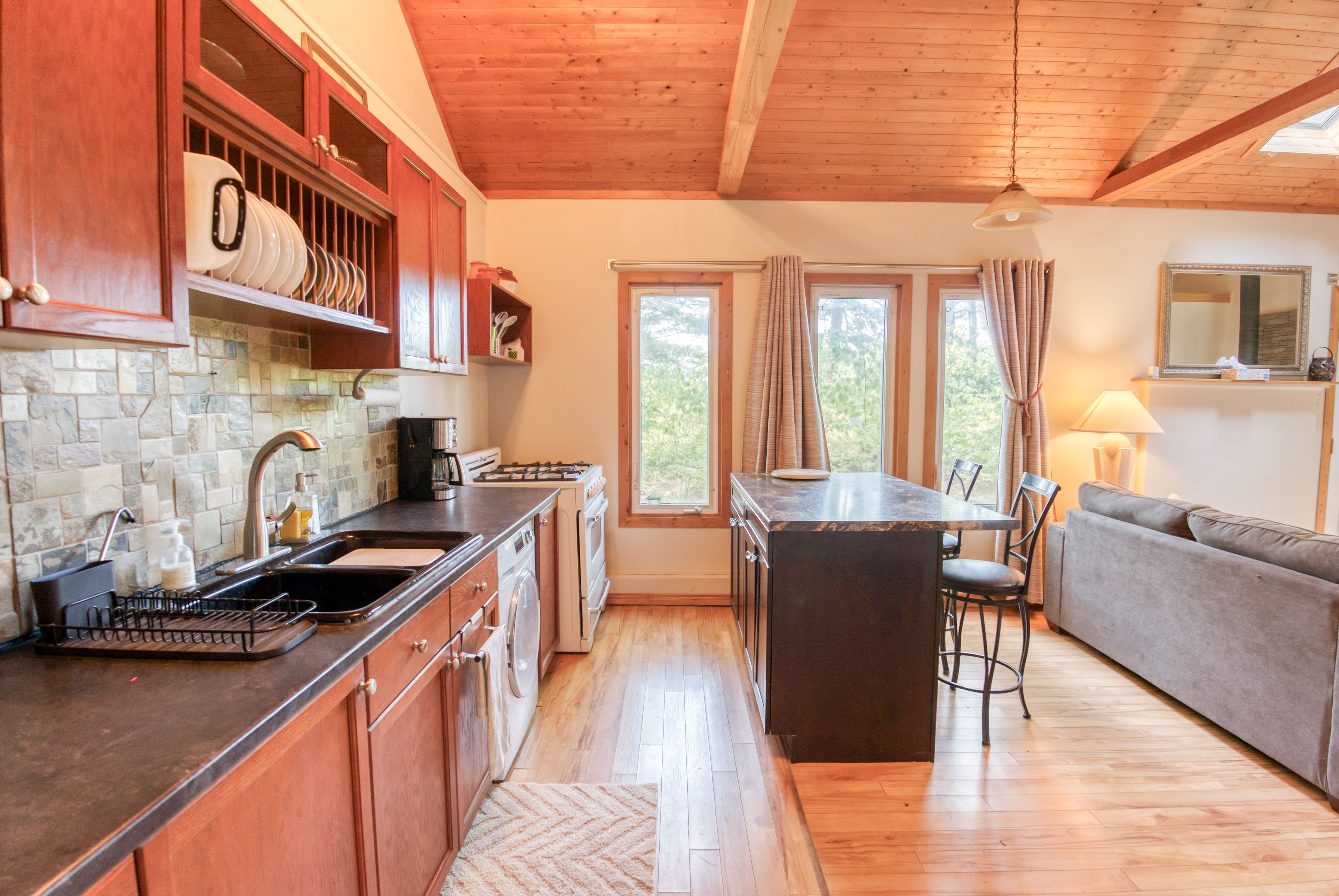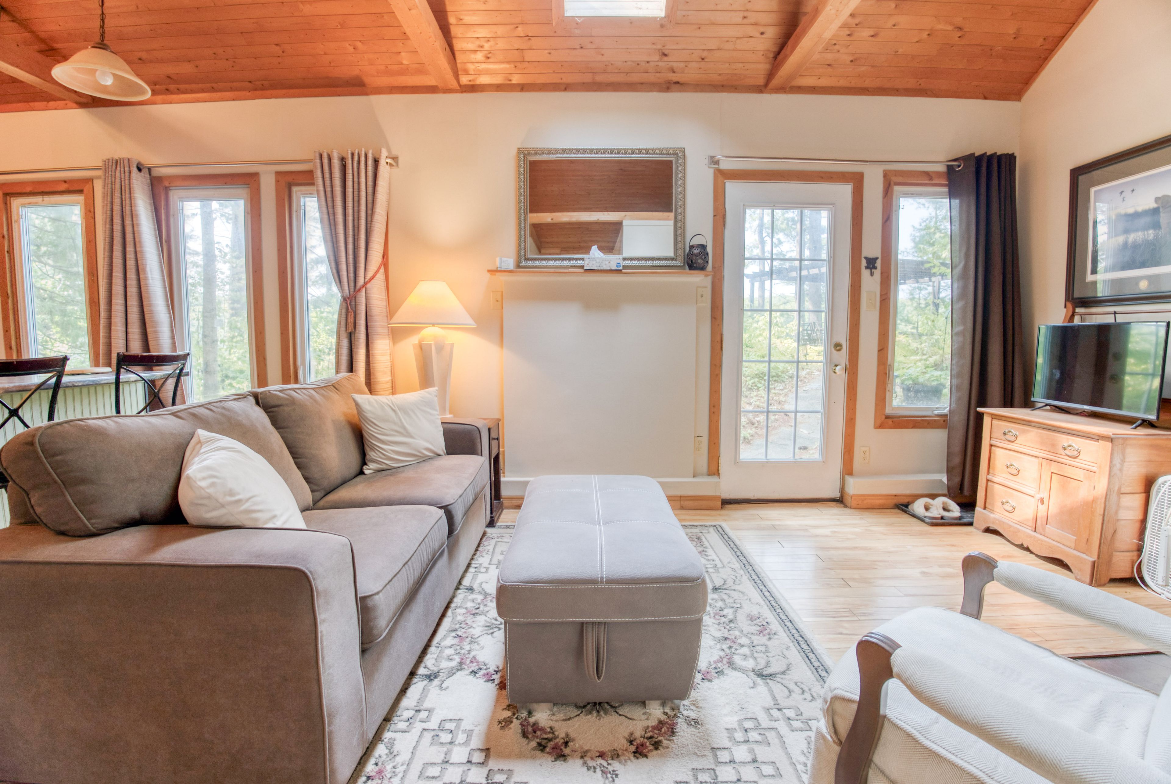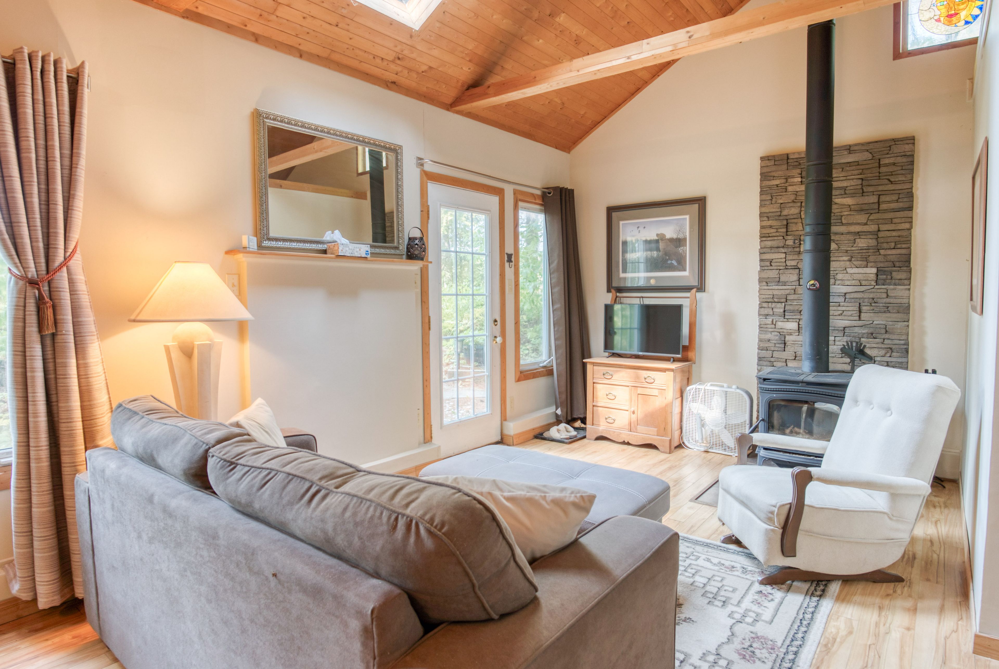 Set on peaceful twin lake along the historic k & p trail, this charming off-grid cottage promises tranquility and a true escape to nature just one hour from kingston. The cottage features two bedrooms, a vaulted ceiling with a skylight that makes the open living area feel bright and spacious. The cottage has a propane fridge, propane fueled style woodstove, cooking stove, and hot water tank. The gray water leads to a french well under the driveway and the toilet is composting. Enjoy eco-friendly living with all the essentials, as the sale includes most furnishings and kitchen appliances for a turnkey move-in. There is even a newer 9 x 11 shed for bikes and water toys. Step outside to the hillside gazebo perfect for morning coffee or evening cocktails while the private dock invites you to fish, swim, or launch your kayak into waters renowned for excellent bass fishing. A paddle boat and small fishing boat are included. Alternately, the property's serene setting is ideal for outdoor trail enthusiasts, with direct access to hiking, cycling, and wildlife watching along the k & p trail. Here, you can embrace the simple pleasures of lakeside living, where days are shaped by the rhythms of nature and every sunset is an invitation to unwind. Whether you're seeking a quiet weekend retreat or a base for adventure, this ready-to-enjoy cottage offers comfort, character, and lasting memories by the water. Power equipment included in the price. Call, text, or email for additional details.