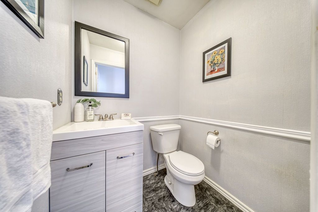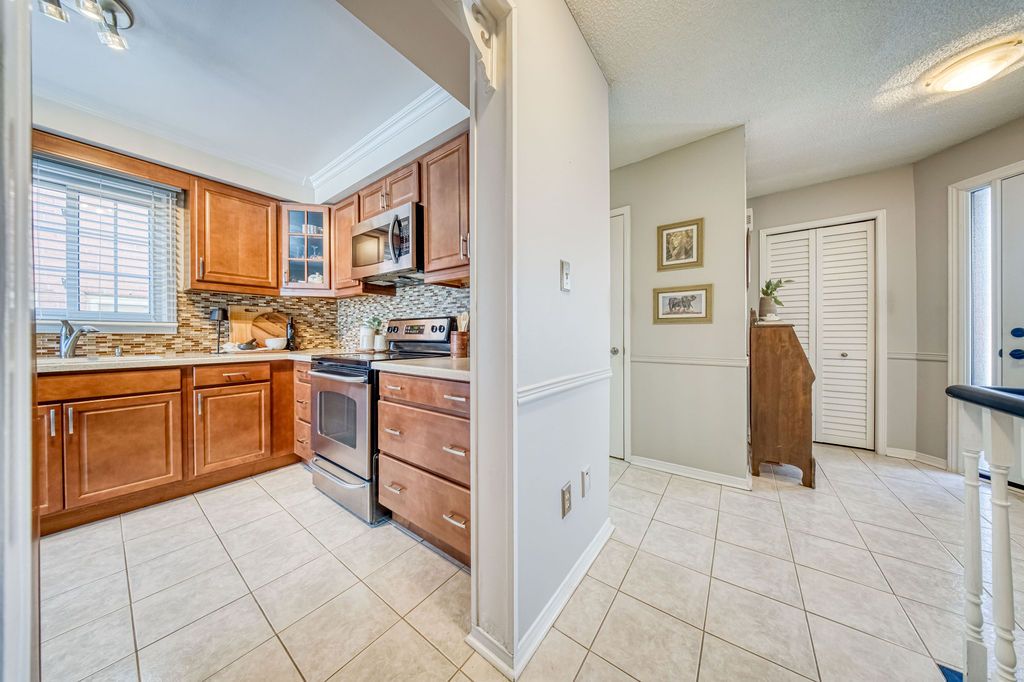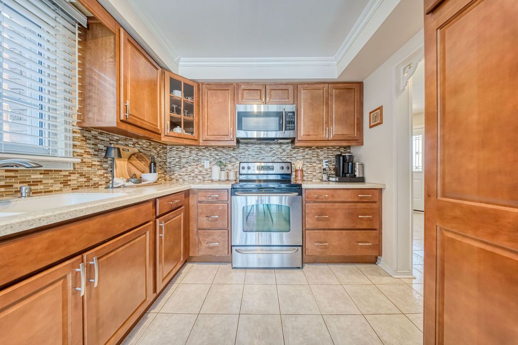 • Updated kitchen with newer cabinetry, Corian countertops, and stylish backsplash.