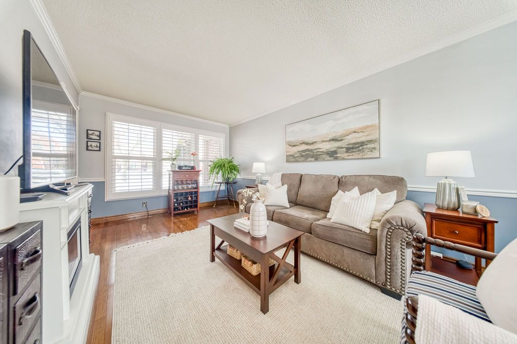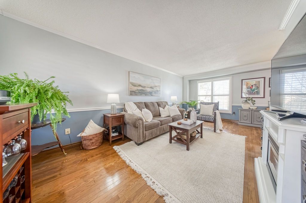 • Bright living and dining rooms with hardwood flooring and large windows.