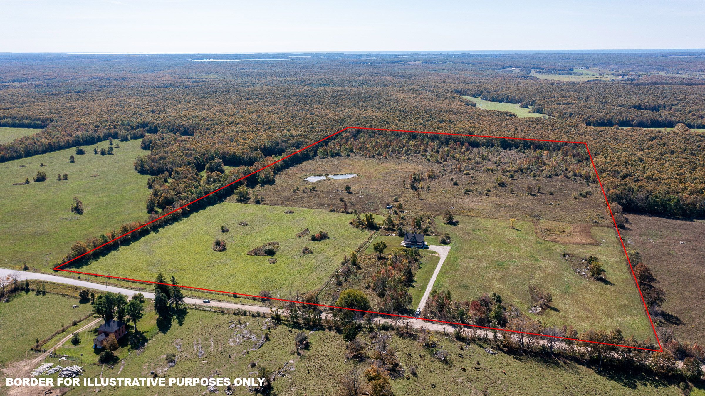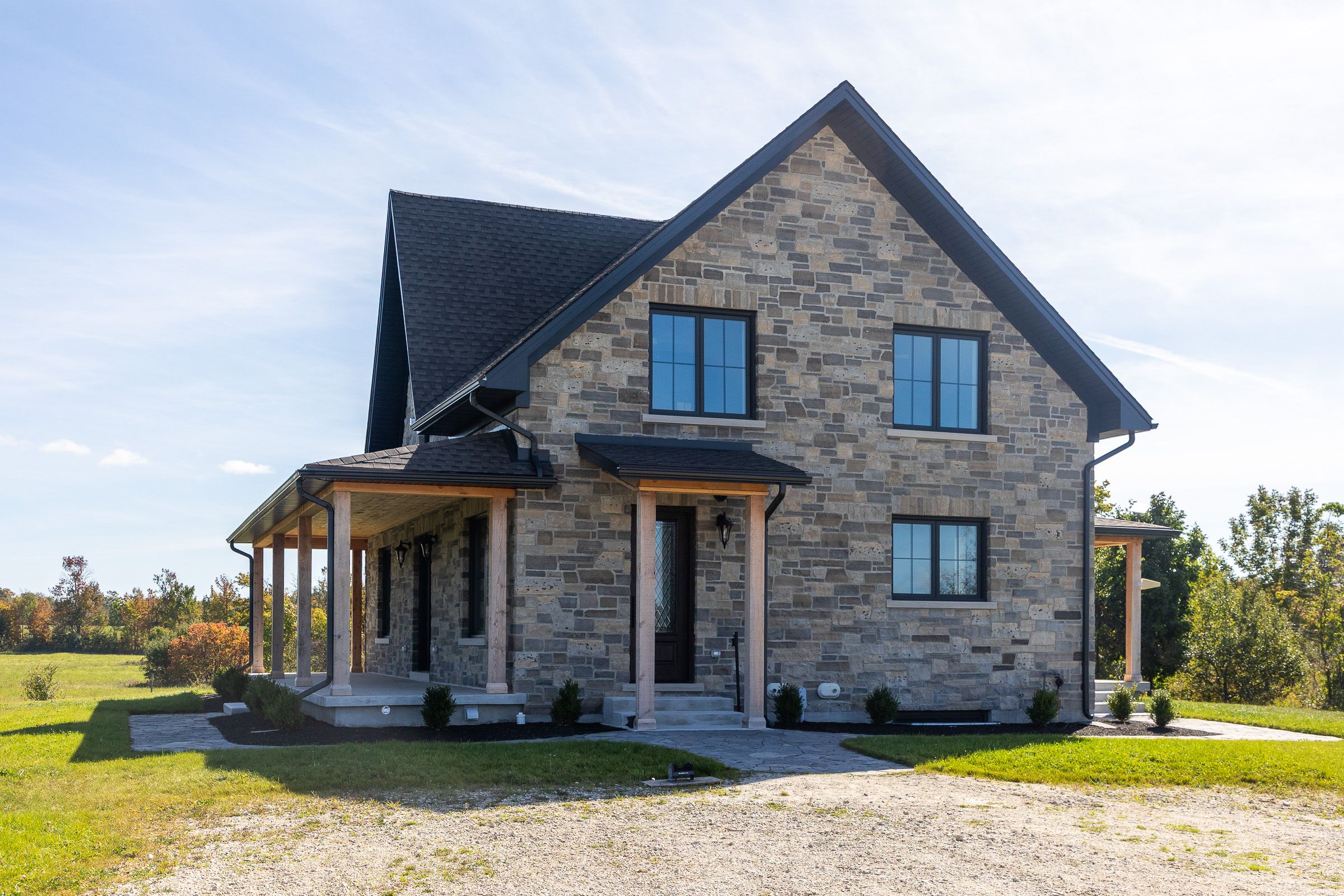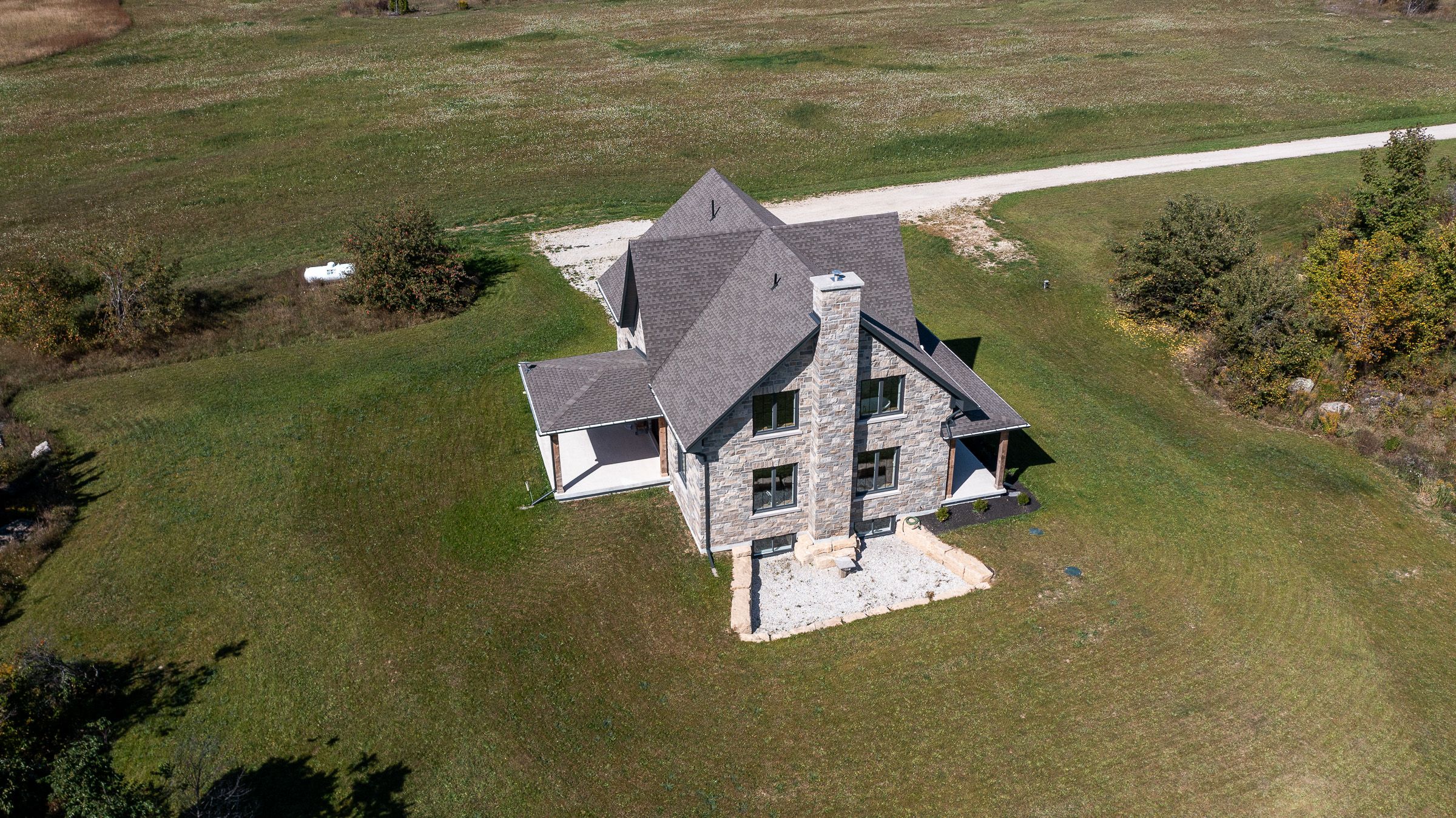 Impressive custom built 2 storey stone home on 65 acres. An abundance of natural light flows through the oversized windows and doors with country views from every room. While the covered front porch leads to the foyer, the mudroom entrance is 11x18 with lots of storage, laundry area and powder room. As you enter the living areas, the quality of craftsmanship is evident in the 8' solid oak doors, trim and staircase. The spacious kitchen features lots of cabinetry with a great working layout, an oversized island with 2nd sink and commercial grade appliances. The dining area is open to the living room where you'll find a wood burning fireplace. On the second level there is a large landing suitable for an office or sitting area (12x17). In addition to the full bathroom and 2 spacious bedrooms you will find a luxury suite that includes a spa-like ensuite and walk-in closet. The finished lower level is complete with a family room, office/den, gym/bedroom, 3 piece bath and cold storage room. Built in 2024, this custom home features the highest quality in construction, finishes and comfort. Icf construction from the footings to the roof, in-floor heat in basement, forced air propane and a/c, extensive built-ins in closets, and so much more. Lots to explore on the land including 2 ponds. This exceptional property is sure to impress.