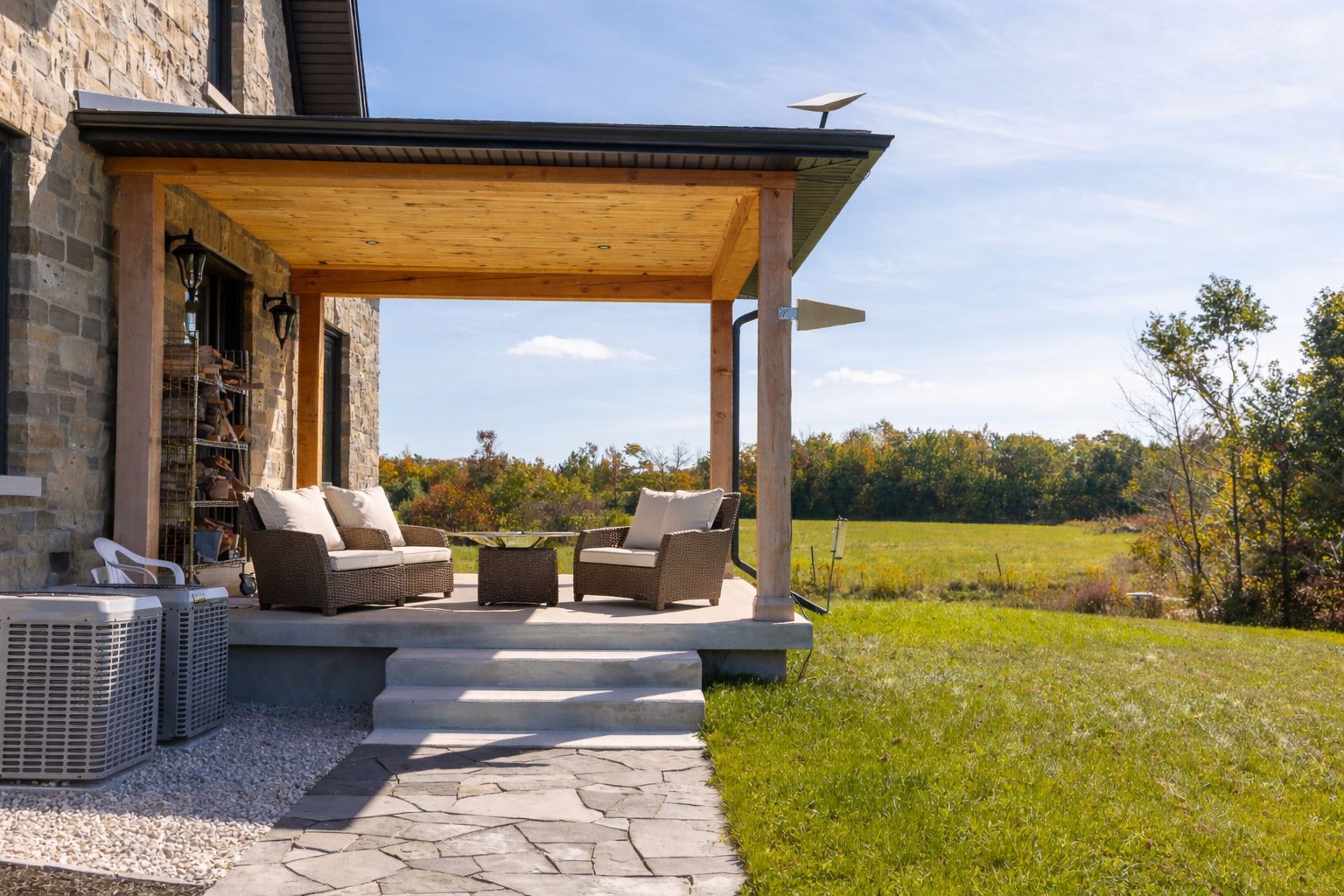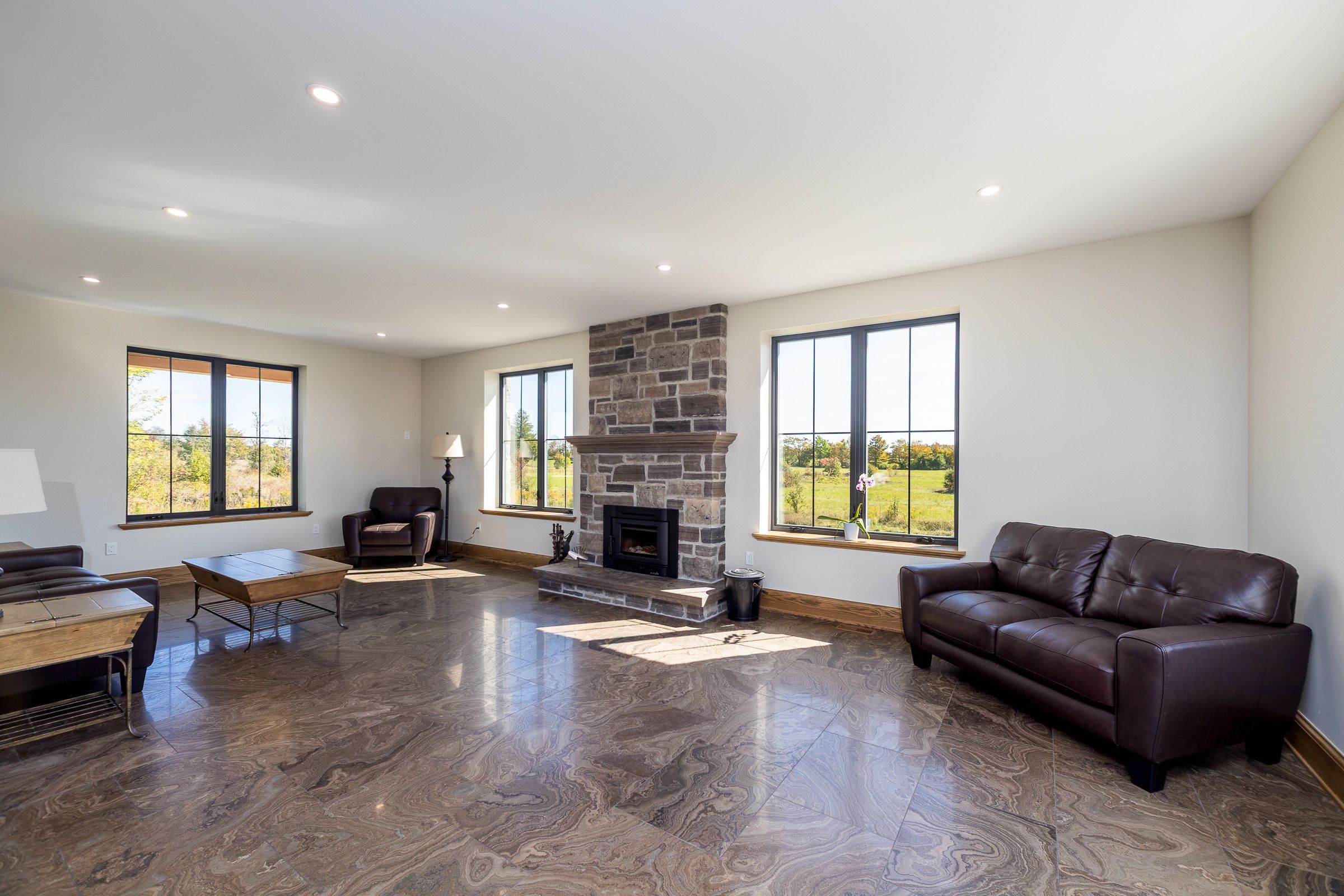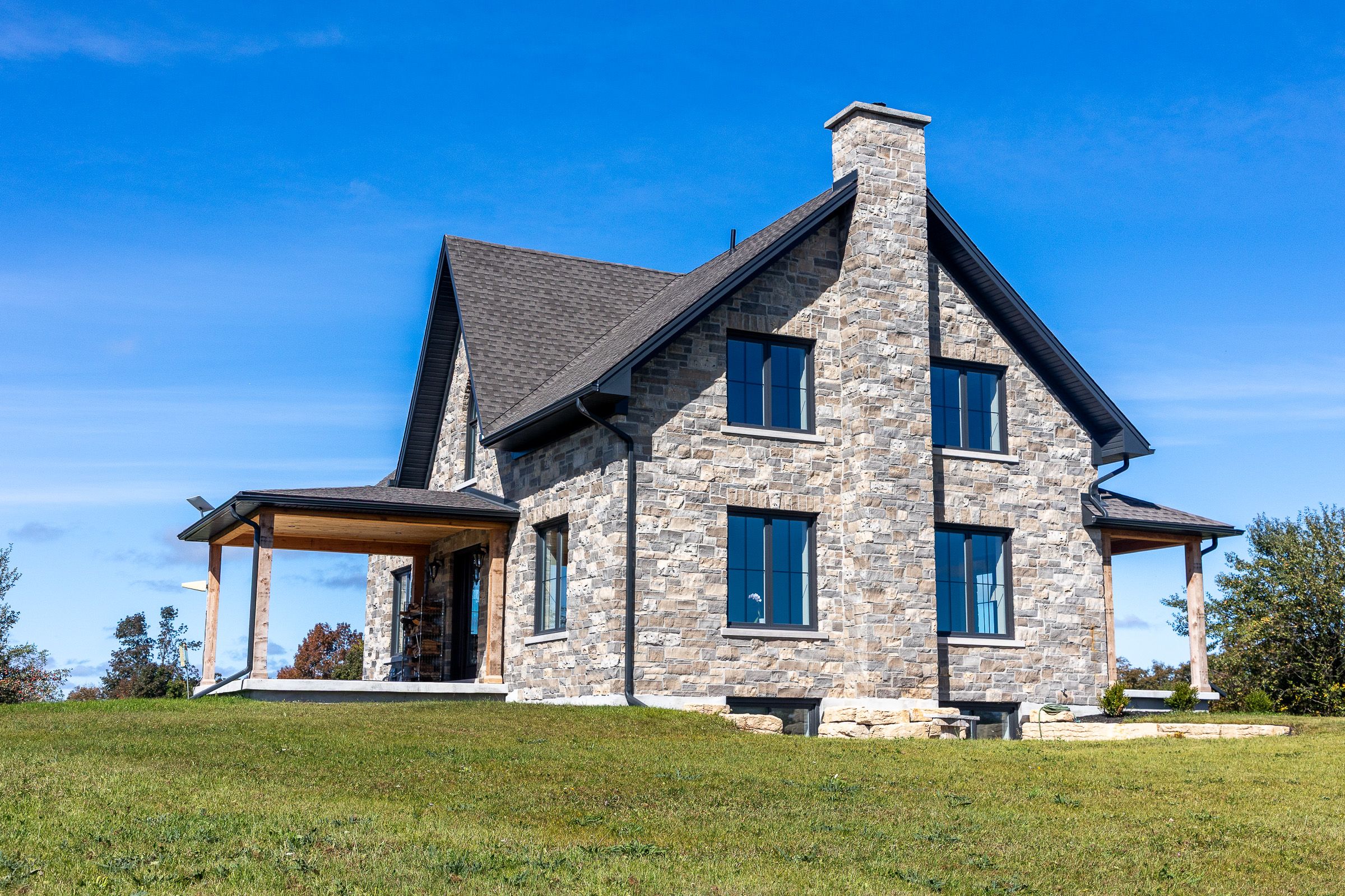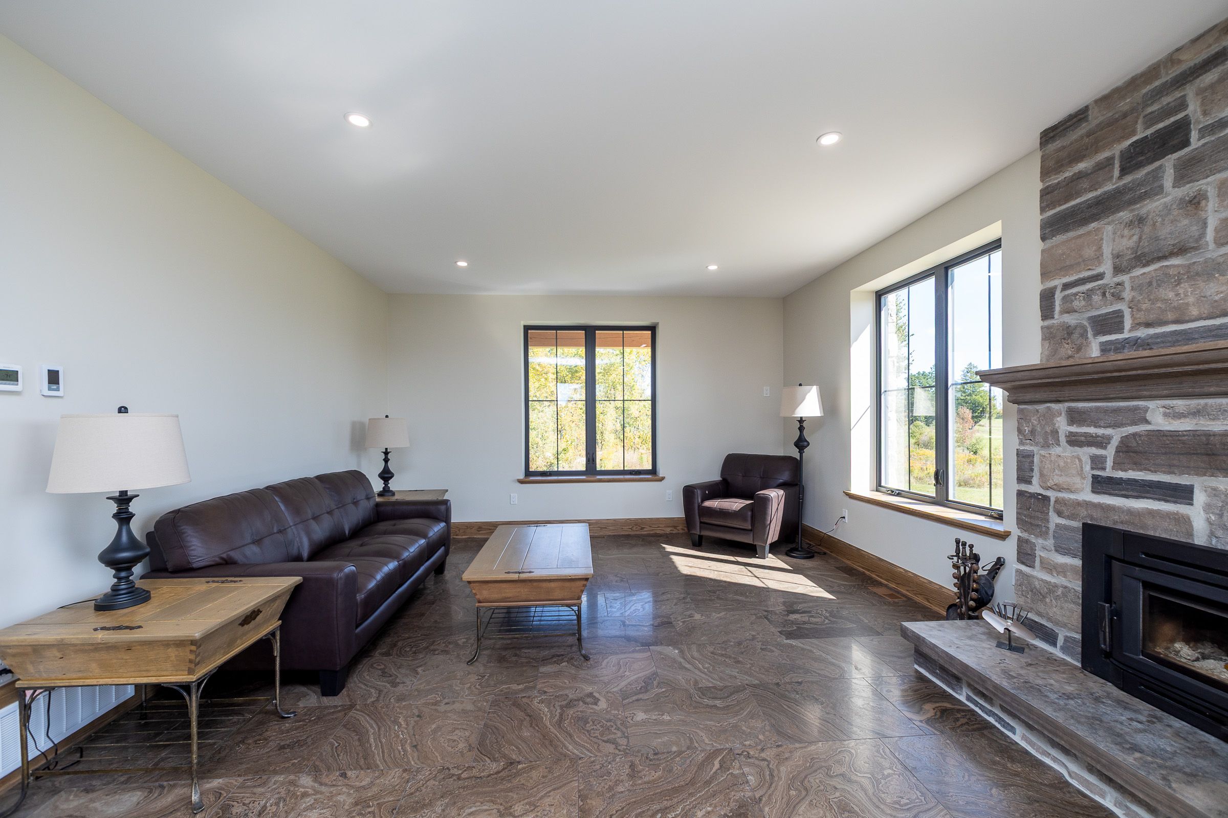 Impressive custom built 2 storey stone home on 65 acres. An abundance of natural light flows through the oversized windows and doors with country views from every room. While the covered front porch leads to the foyer, the mudroom entrance is 11x18 with lots of storage, laundry area and powder room. As you enter the living areas, the quality of craftsmanship is evident in the 8' solid oak doors, trim and staircase. The spacious kitchen features lots of cabinetry with a great working layout, an oversized island with 2nd sink and commercial grade appliances. The dining area is open to the living room where you'll find a wood burning fireplace. On the second level there is a large landing suitable for an office or sitting area (12x17). In addition to the full bathroom and 2 spacious bedrooms you will find a luxury suite that includes a spa-like ensuite and walk-in closet. The finished lower level is complete with a family room, office/den, gym/bedroom, 3 piece bath and cold storage room. Built in 2024, this custom home features the highest quality in construction, finishes and comfort. Icf construction from the footings to the roof, in-floor heat in basement, forced air propane and a/c, extensive built-ins in closets, and so much more. Lots to explore on the land including 2 ponds. This exceptional property is sure to impress.
