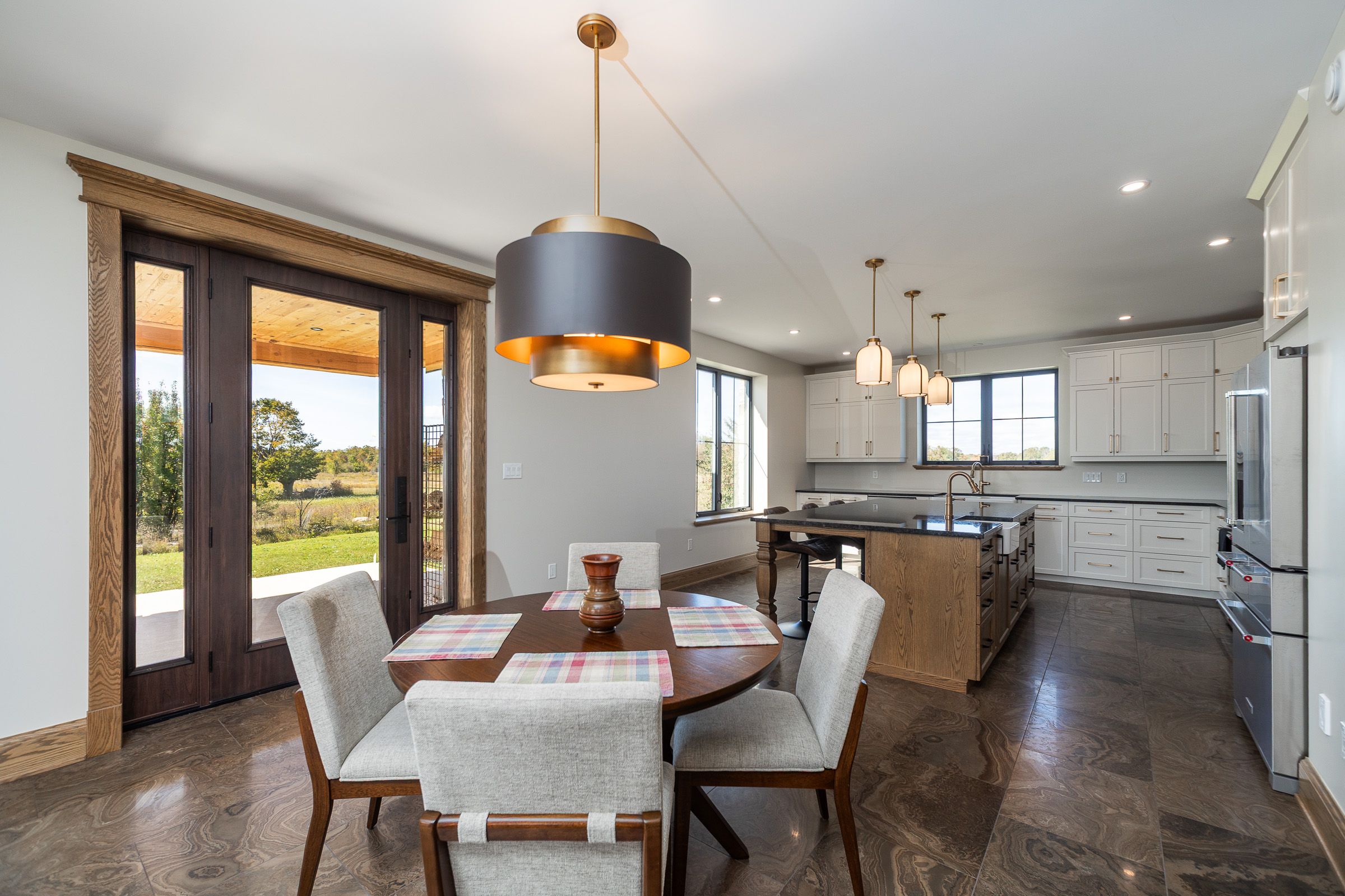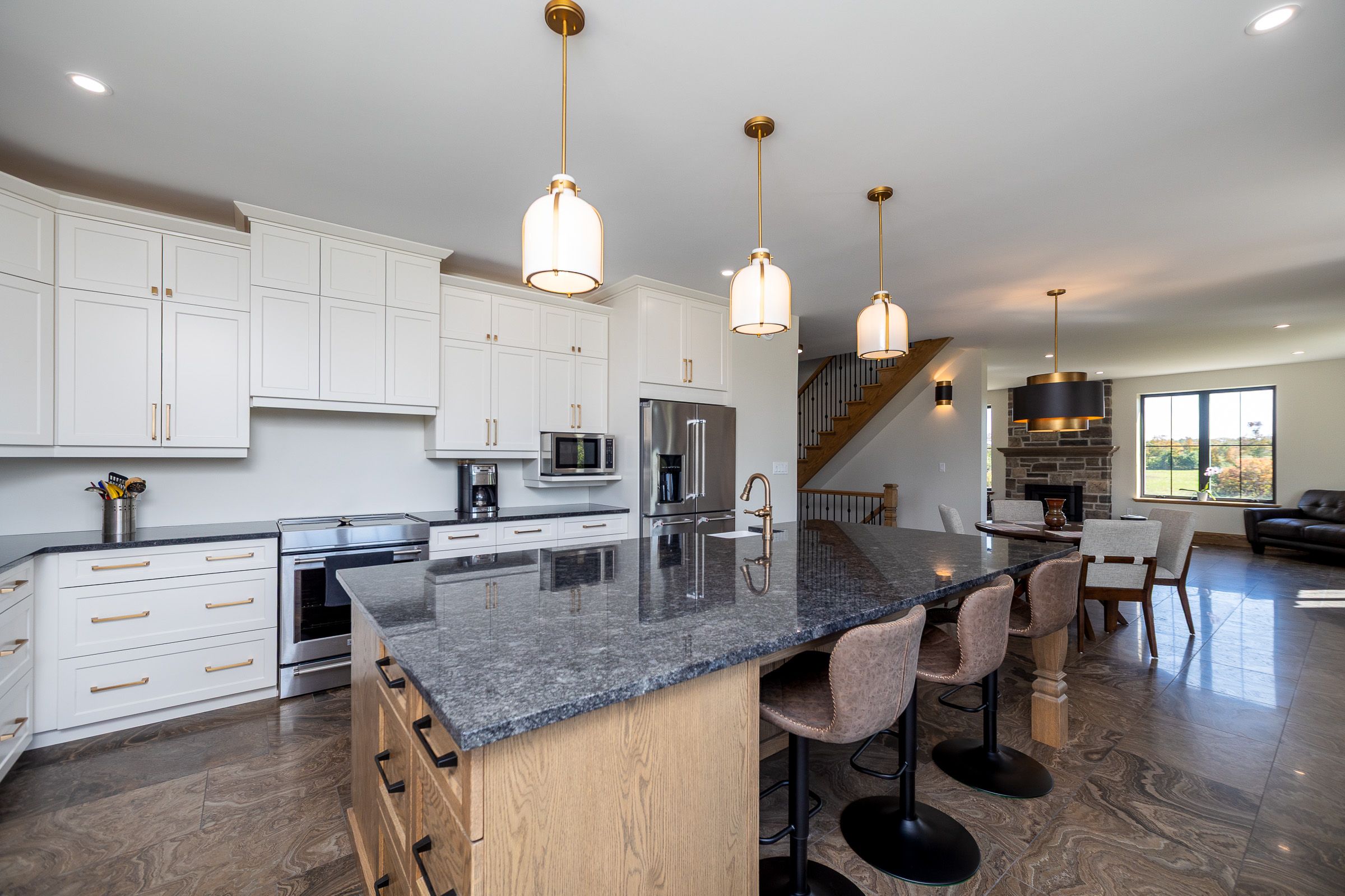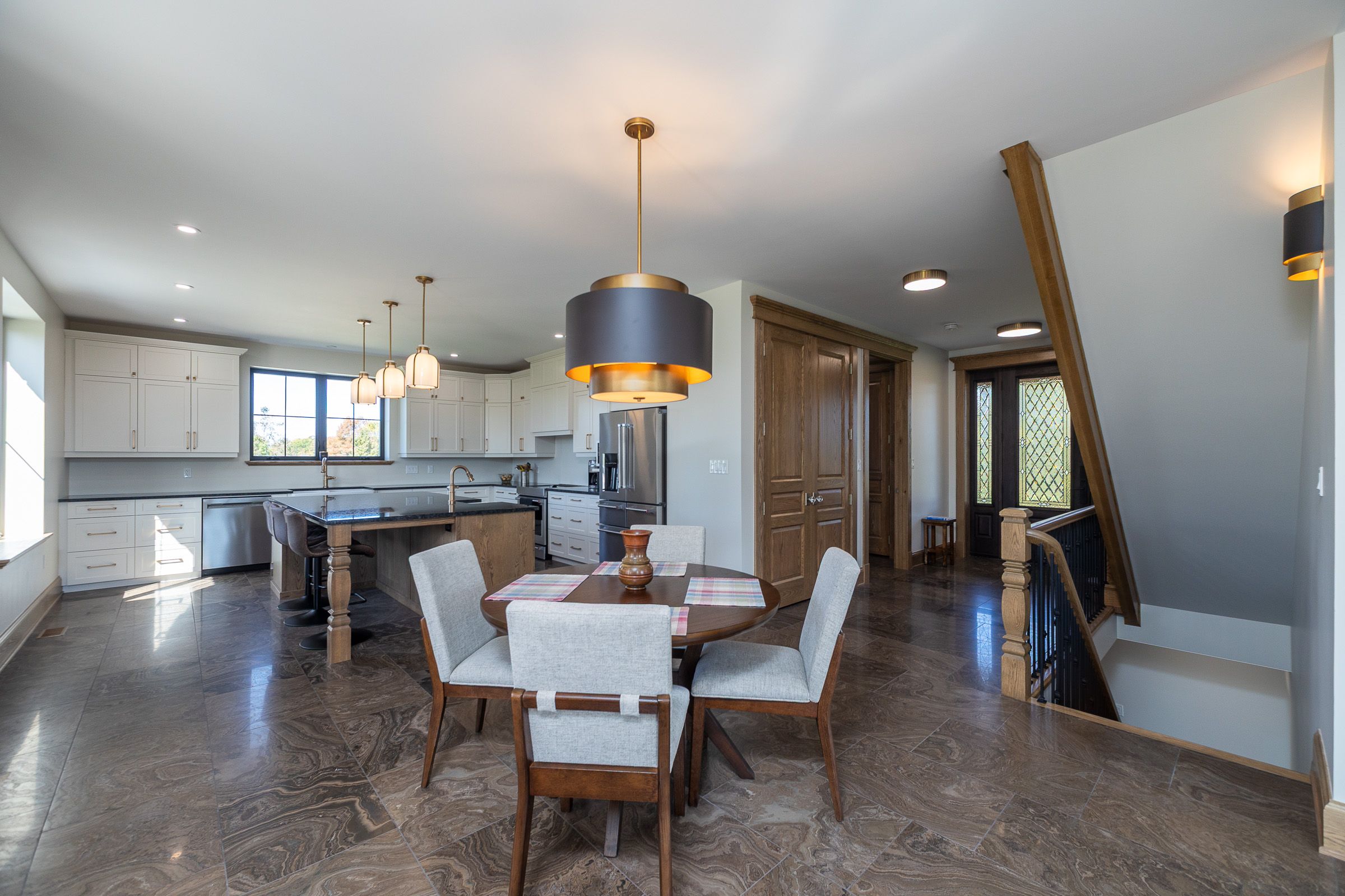 • Spacious kitchen with oversized island and commercial grade appliances.