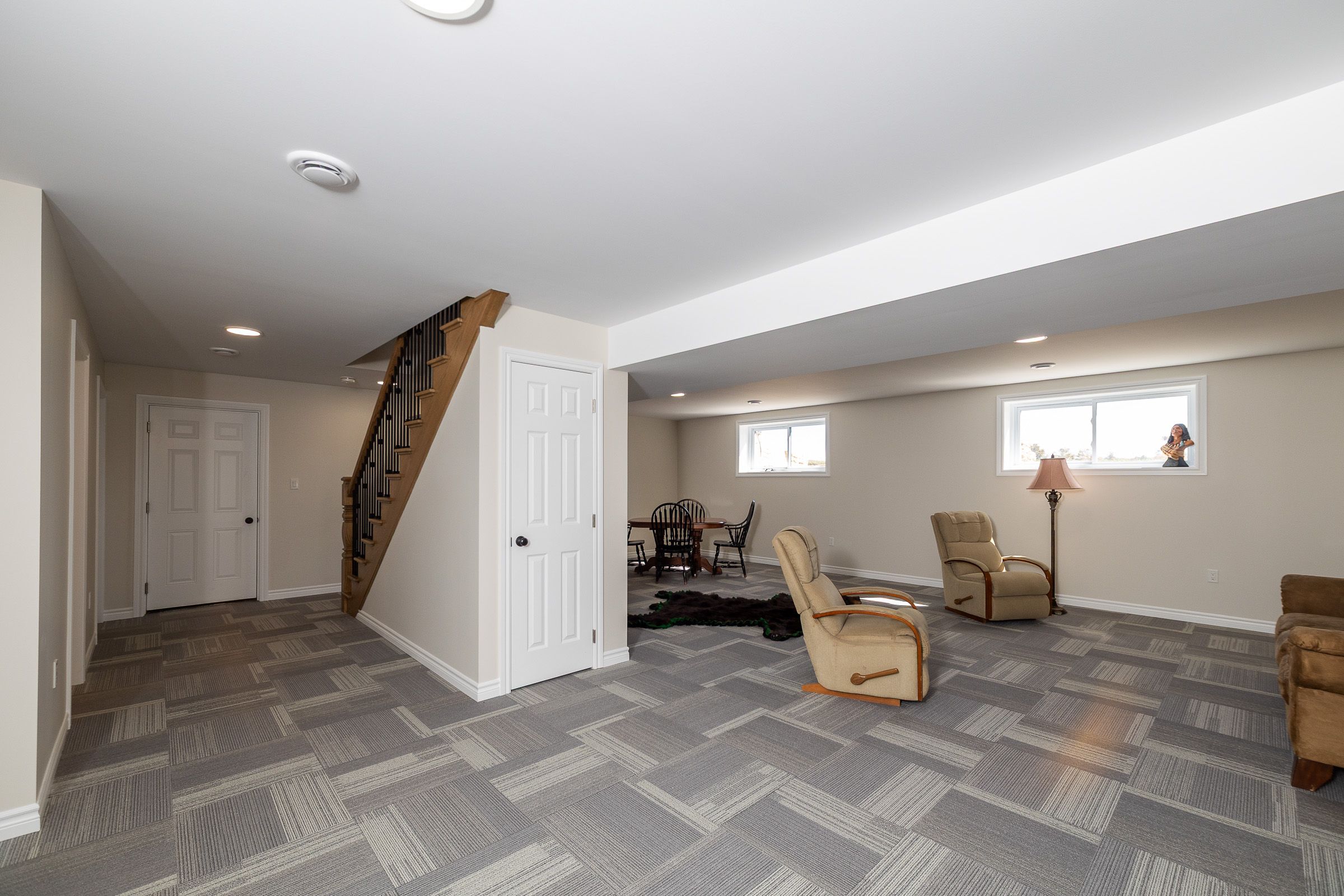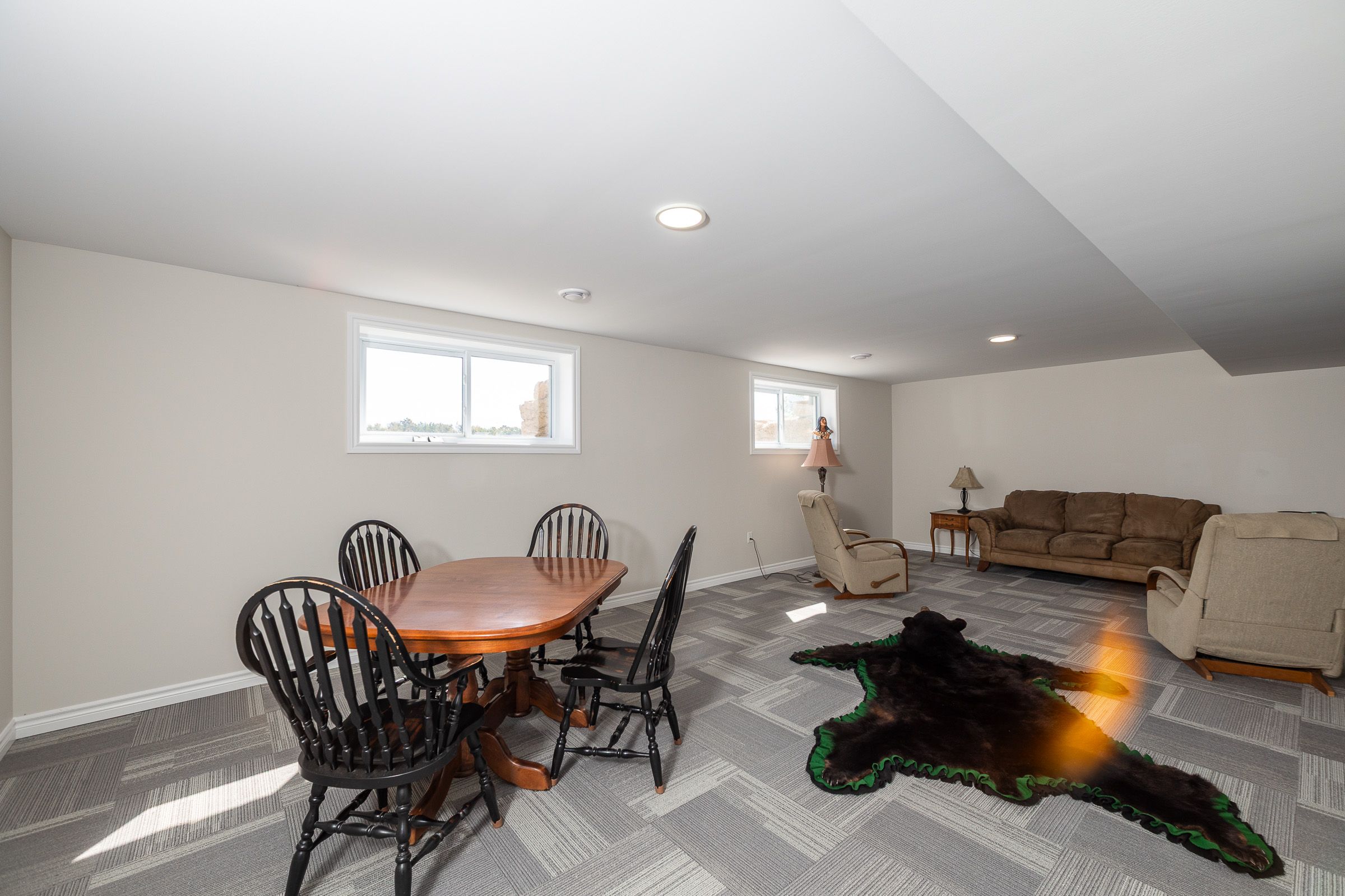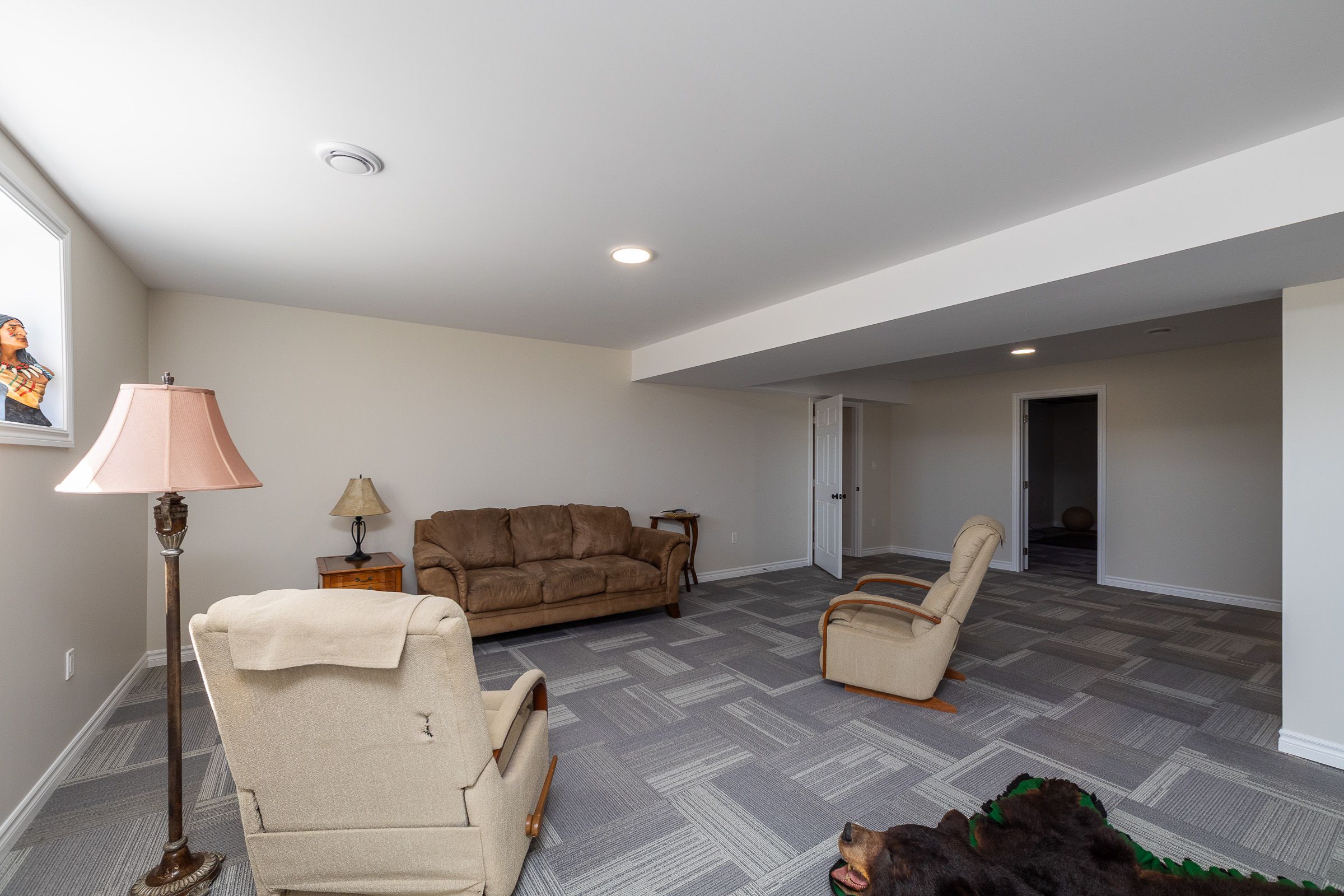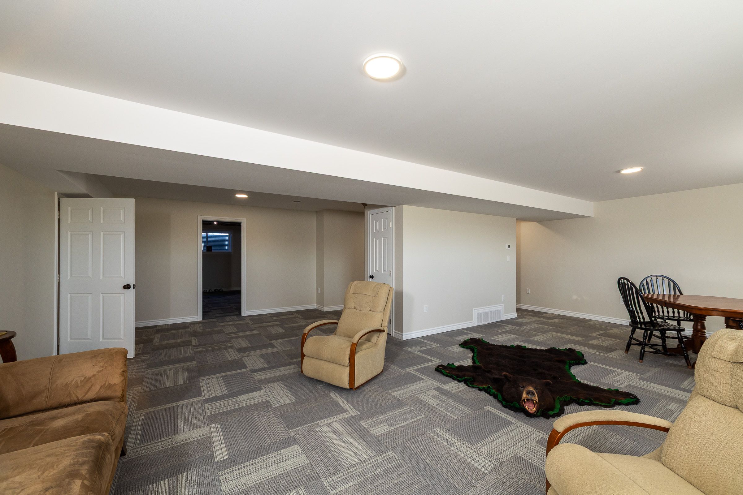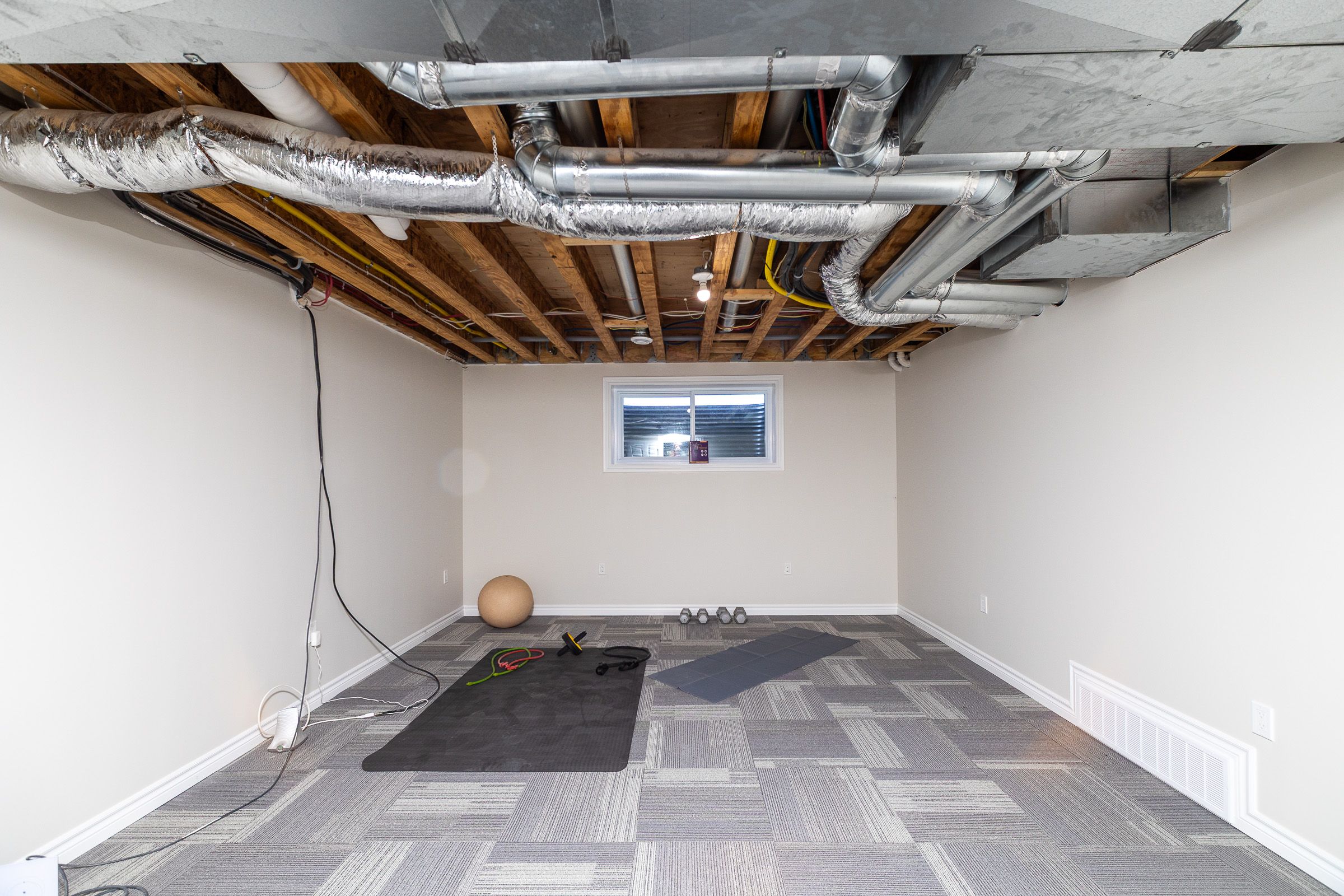 • Finished lower level includes family room, office, and gym space.