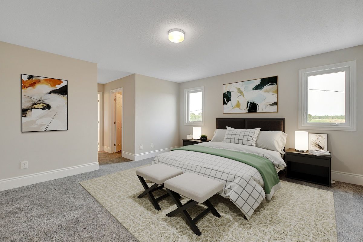 Welcome to 1038 charolais place in the heart of family-friendly richmond meadows! This brand-new 3,233 sq. Ft. Mattamy's walnut model (farmhouse elevation) is thoughtfully designed for modern family life, featuring 5 spacious bedrooms, 4 full bathrooms, main floor powder room and a beautifully finished basement. Move-in is scheduled for mid august 2026, giving you time to plan. Step inside and you'll immediately appreciate the 9' ceilings & engineered hardwood flooring that give the main level a bright and upscale feel. A mudroom with a walk-in closet, powder room, and direct access to the double car garage to make daily living organized and practical. Enjoy a bright, open-concept layout with a welcoming living/dining space and a sun-filled great room w/ oversized windows. The chef-inspired kitchen features quartz countertops, island with breakfast bar, backsplash, hood fan, pantry, cold water line rough in & patio doors that lead to the backyard perfect for hosting and everyday life. Upstairs, hardwood stairs w/oak railings lead to a functional loft space, plus a second-floor full-size laundry room w/walk-in linen close keeps things running smoothly. A well-designed layout ideal for families or guests. The primary bedroom retreat boasts two large walk-in closets & a spa-like ensuite w/separate glass shower, soaker tub, and extended vanity. One bedroom enjoys a private 3-piece ensuite; two others share a jack & jill bath w/large vanity. Downstairs, the finished lower level offers a large finished rec room, additional bedroom, 3pcs bath & three windows, perfect for movie nights, a playroom, home office, gym or guests. Additional upgrades: 200 amp electrical panel; air conditioning; tankless hot water system; heat recovery ventilator. This home is now colour and structure spec'd. Photos are of a model home and virtually staged for illustration only, features & finishes may vary. 1038 charolais place is under construction.
