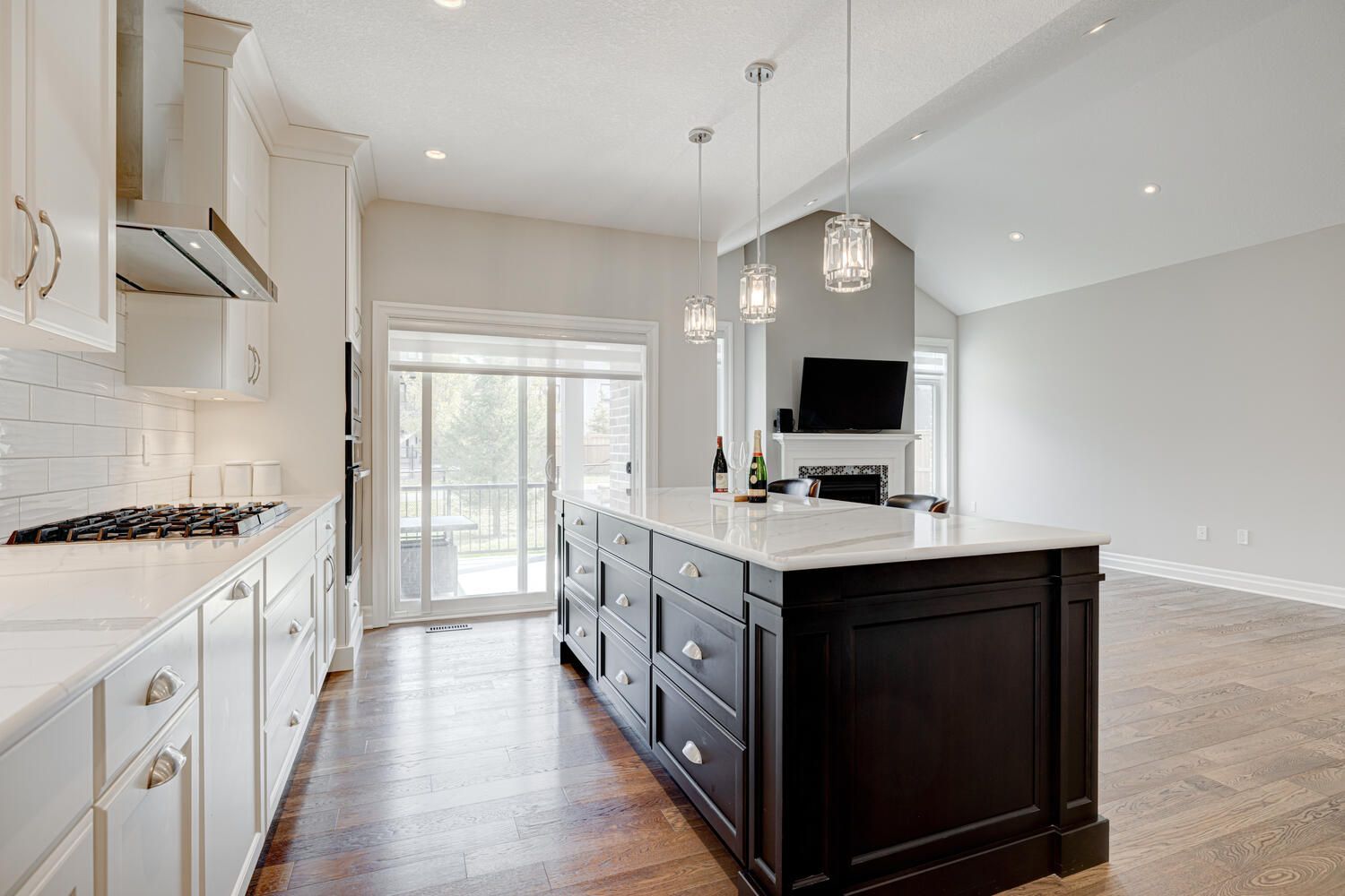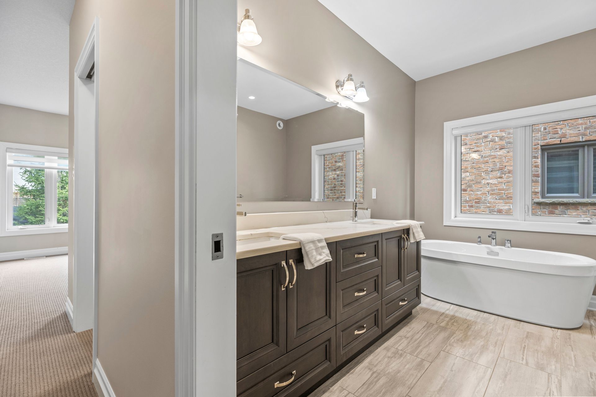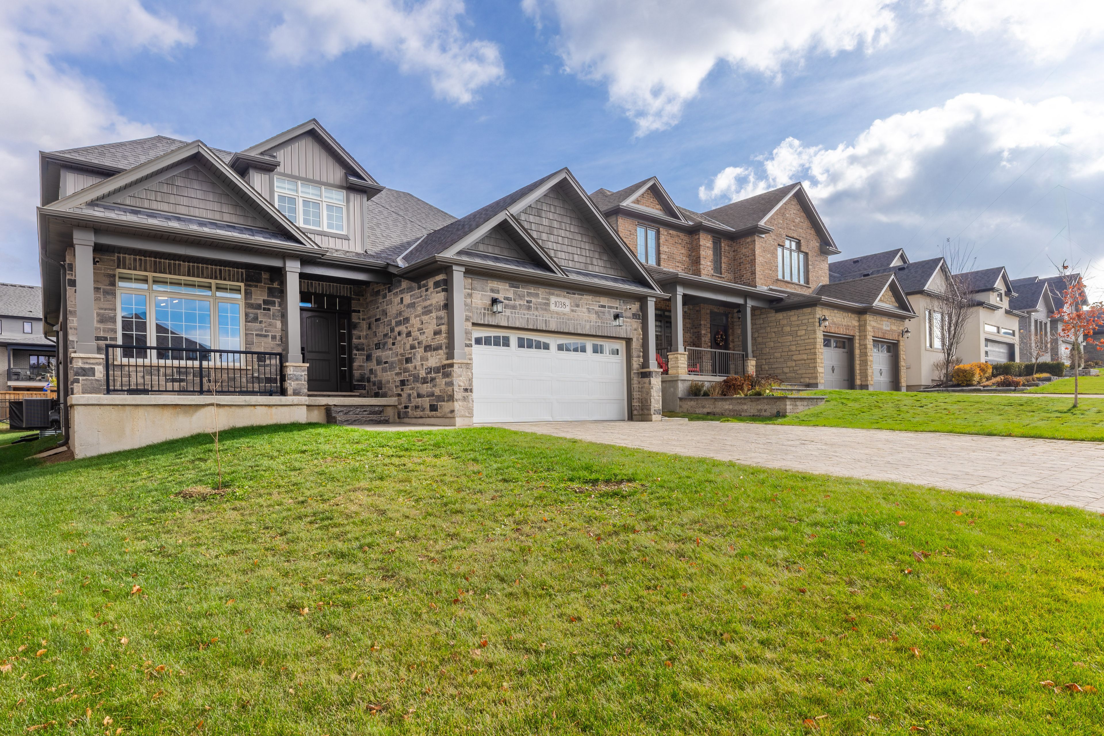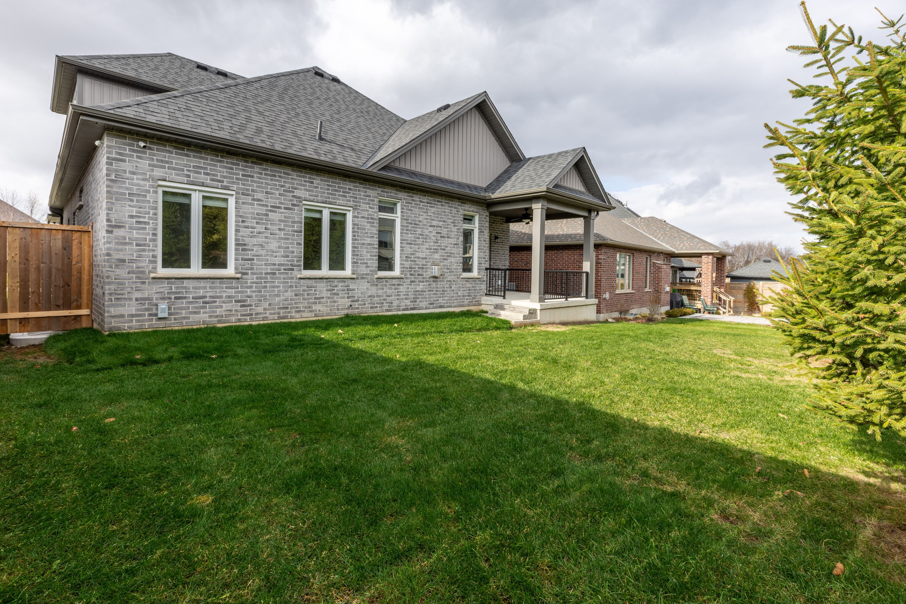 Welcome to this spectacular family home located in the highly sought-after warbler woods neighbourhood in southwest london. Backing onto scenic walking trails, this home offers the perfect blend of nature, luxury, and convenience. Just 10 minutes from highways 402/401, western university & downtown london, it's an ideal location for families and professionals alike. Key features: bedrooms: 3+2 spacious bedrooms. Bathrooms: 3. 5 beautifully appointed baths, heated floors & pocket doors. Main floor: open concept with rich hardwood flooring, upgraded lighting and lots of pot lights, large windows, and cathedral ceilings in the family room. Kitchen: gourmet kitchen featuring quartz countertops, dark 8-foot island, pots & pans drawers, slide-out spice drawers, under-valance lighting, and top-of-the-line jen air appliances including gas stovetop, wall oven, and built-in microwave. Primary retreat: main floor primary bedroom with large walk-in closet and a 5-piece spa ensuite boasting quartz counters, double sinks, heated floors, hot tub, and glass shower. Upper level: two generously sized bedrooms with a 5-piece main bath featuring double sinks. Basement: approximately 1,460 sq ft of finished space with two large bedrooms, full bath, kitchenette, and in-law potential. There is about total 3600 sq ft finished living space. Exterior: stone facade and full brick exterior with a covered concrete patio and gas bbq line. Parking: 50-foot lot with a four-car driveway and no sidewalk for easy parking. Extras: built-in central vacuum system and security system. This superbly finished home is easy to show and perfect for multi-generational living or those seeking elegant comfort and convenience in one of london's most desirable communities. Don't miss out on this incredible opportunity!