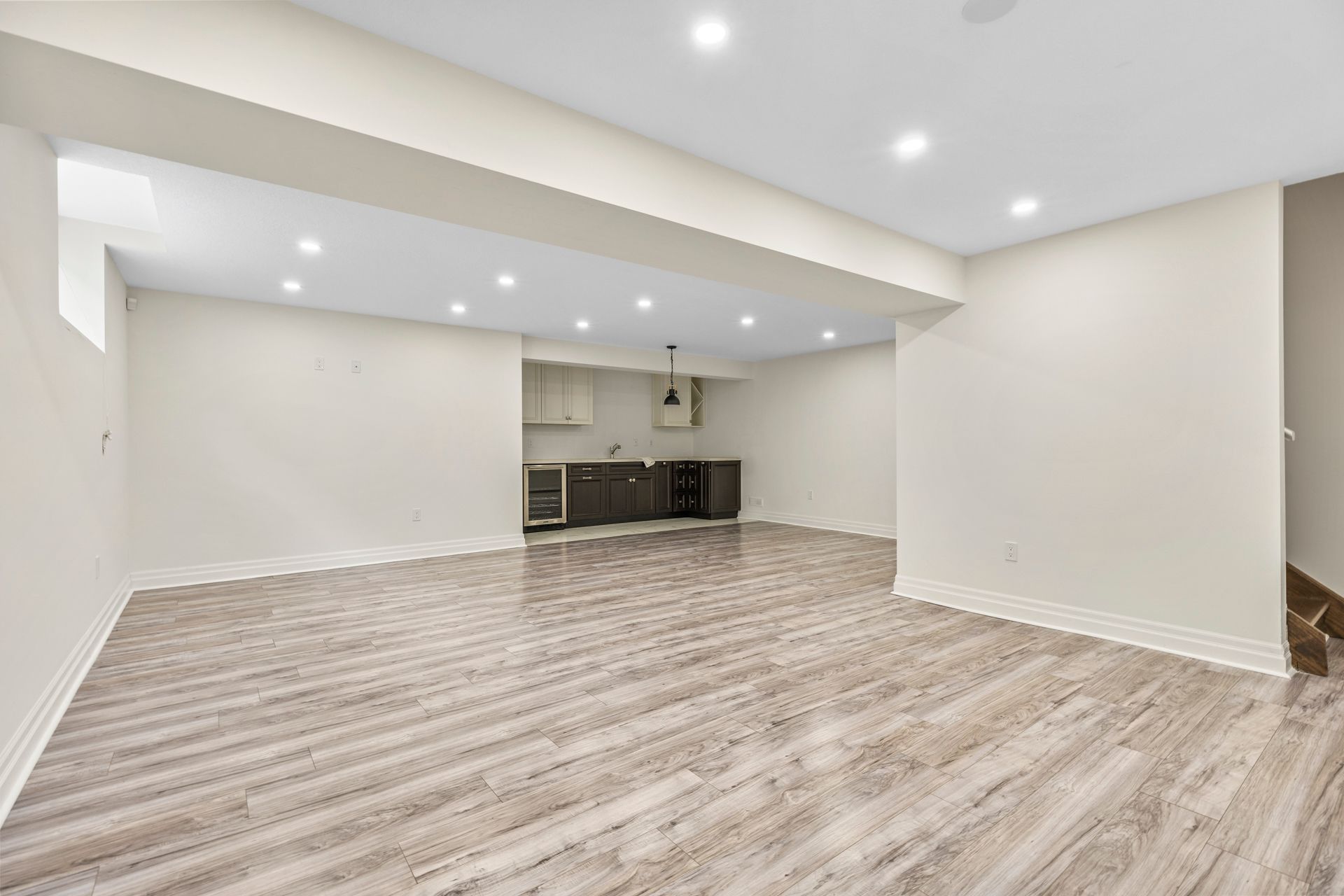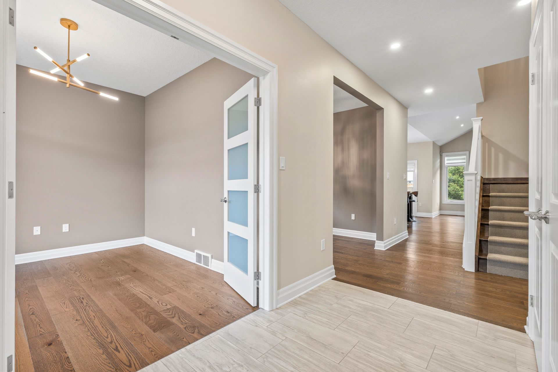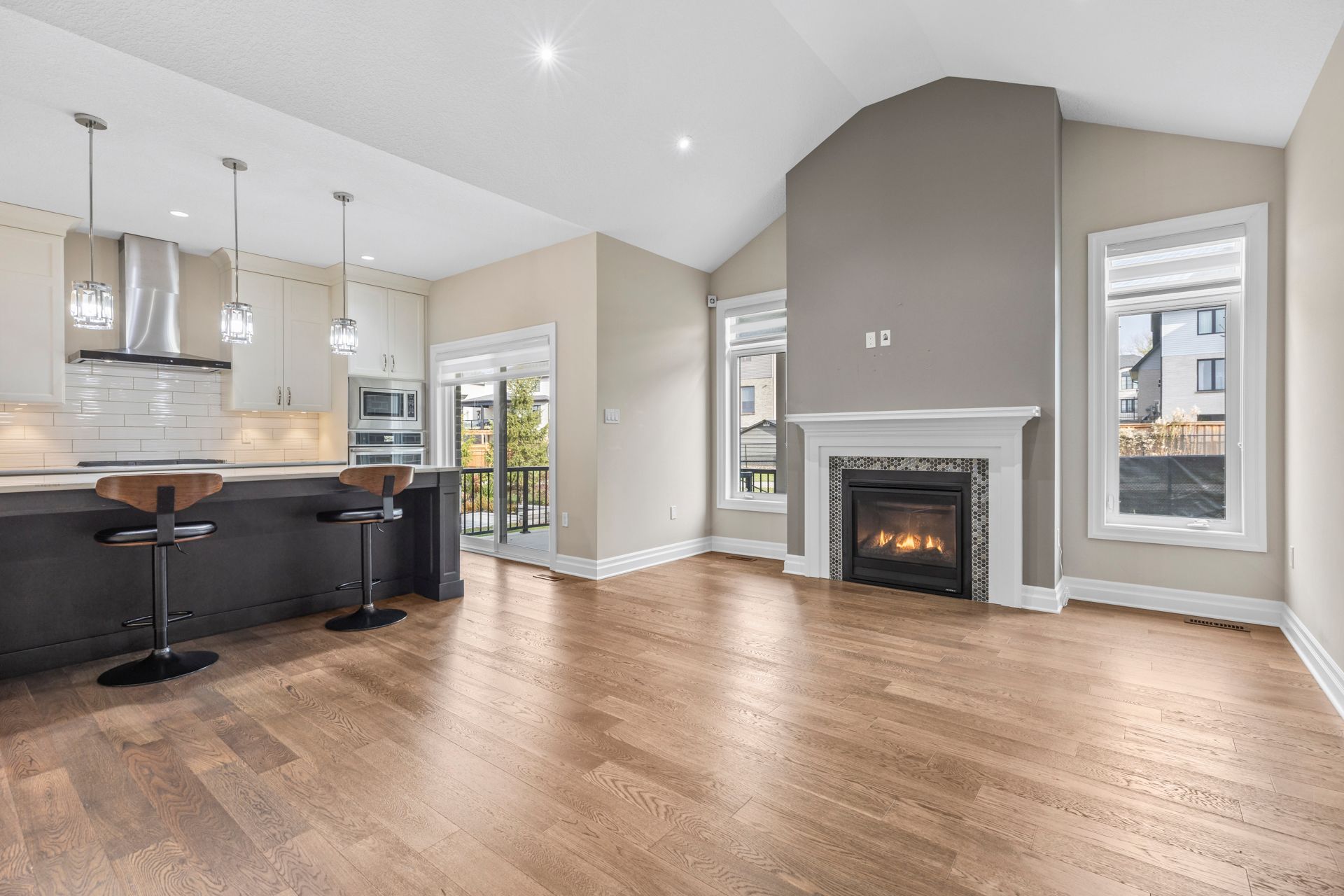 Welcome to this spectacular family home located in the highly sought-after warbler woods neighbourhood in southwest london. Backing onto scenic walking trails, this home offers the perfect blend of nature, luxury, and convenience. Just 10 minutes from highways 402/401, western university & downtown london, it's an ideal location for families and professionals alike. Key features: bedrooms: 3+2 spacious bedrooms. Bathrooms: 3. 5 beautifully appointed baths, heated floors & pocket doors. Main floor: open concept with rich hardwood flooring, upgraded lighting and lots of pot lights, large windows, and cathedral ceilings in the family room. Kitchen: gourmet kitchen featuring quartz countertops, dark 8-foot island, pots & pans drawers, slide-out spice drawers, under-valance lighting, and top-of-the-line jen air appliances including gas stovetop, wall oven, and built-in microwave. Primary retreat: main floor primary bedroom with large walk-in closet and a 5-piece spa ensuite boasting quartz counters, double sinks, heated floors, hot tub, and glass shower. Upper level: two generously sized bedrooms with a 5-piece main bath featuring double sinks. Basement: approximately 1,460 sq ft of finished space with two large bedrooms, full bath, kitchenette, and in-law potential. There is about total 3600 sq ft finished living space. Exterior: stone facade and full brick exterior with a covered concrete patio and gas bbq line. Parking: 50-foot lot with a four-car driveway and no sidewalk for easy parking. Extras: built-in central vacuum system and security system. This superbly finished home is easy to show and perfect for multi-generational living or those seeking elegant comfort and convenience in one of london's most desirable communities. Don't miss out on this incredible opportunity!