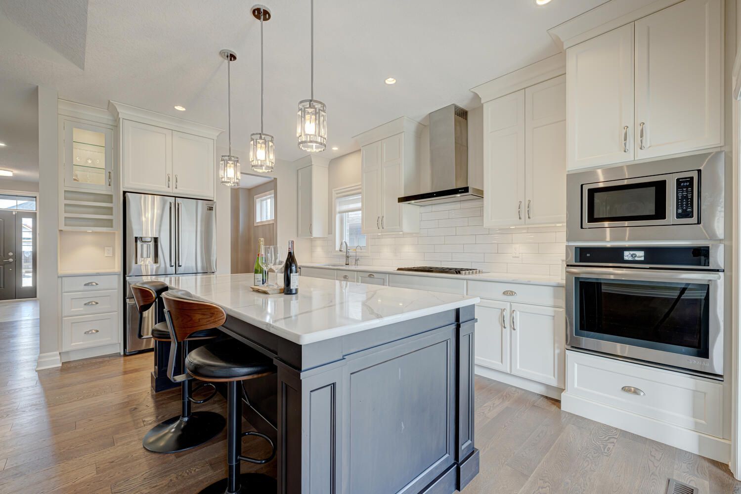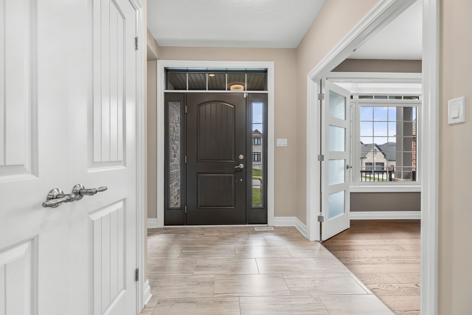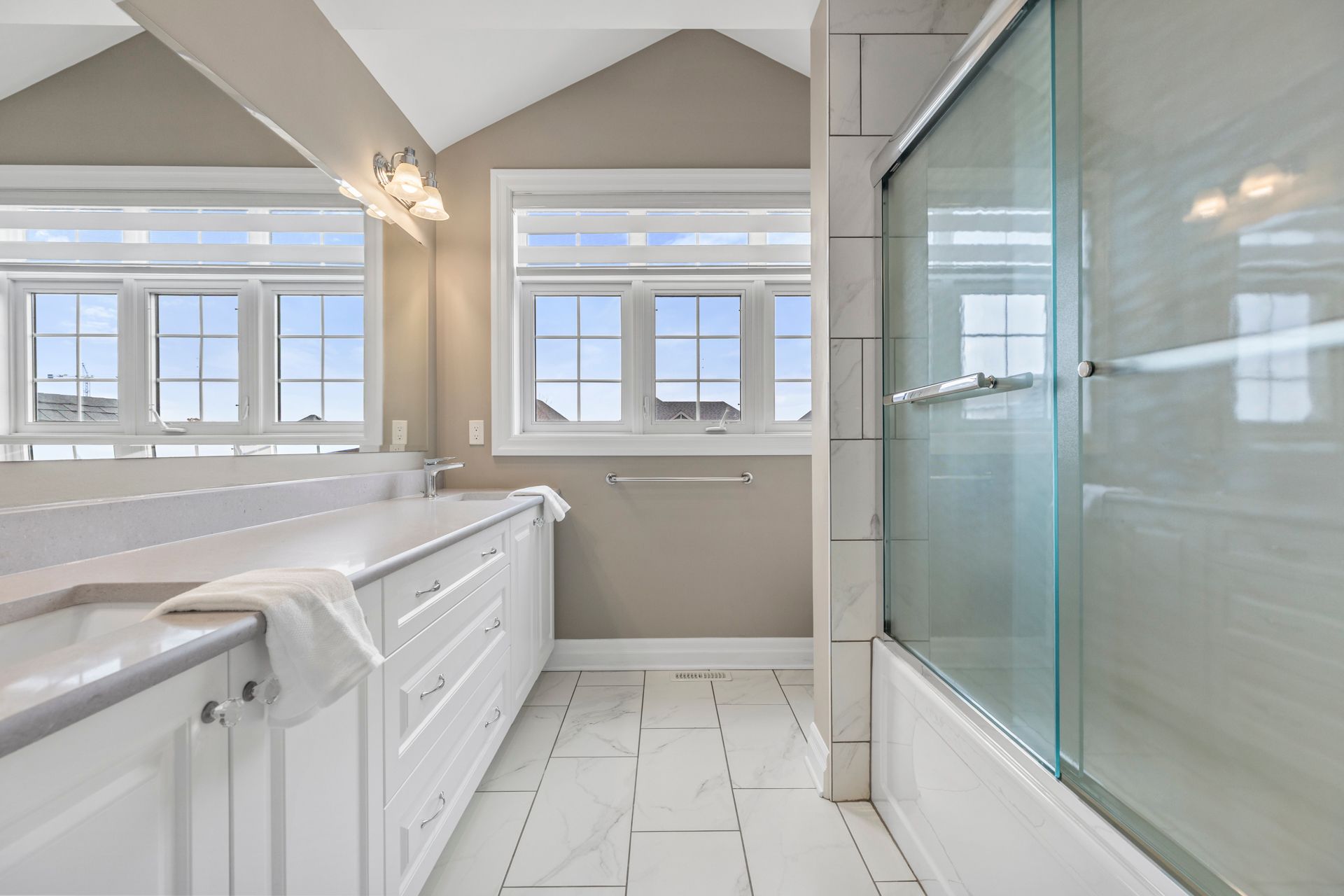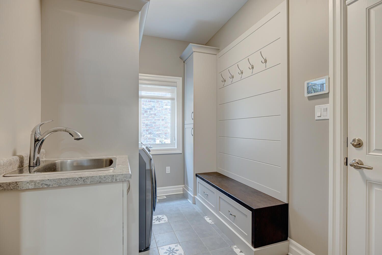 Welcome to this spectacular family home located in the highly sought-after warbler woods neighbourhood in southwest london. Backing onto scenic walking trails, this home offers the perfect blend of nature, luxury, and convenience. Just 10 minutes from highways 402/401, western university & downtown london, it's an ideal location for families and professionals alike. Key features: bedrooms: 3+2 spacious bedrooms. Bathrooms: 3. 5 beautifully appointed baths, heated floors & pocket doors. Main floor: open concept with rich hardwood flooring, upgraded lighting and lots of pot lights, large windows, and cathedral ceilings in the family room. Kitchen: gourmet kitchen featuring quartz countertops, dark 8-foot island, pots & pans drawers, slide-out spice drawers, under-valance lighting, and top-of-the-line jen air appliances including gas stovetop, wall oven, and built-in microwave. Primary retreat: main floor primary bedroom with large walk-in closet and a 5-piece spa ensuite boasting quartz counters, double sinks, heated floors, hot tub, and glass shower. Upper level: two generously sized bedrooms with a 5-piece main bath featuring double sinks. Basement: approximately 1,460 sq ft of finished space with two large bedrooms, full bath, kitchenette, and in-law potential. There is about total 3600 sq ft finished living space. Exterior: stone facade and full brick exterior with a covered concrete patio and gas bbq line. Parking: 50-foot lot with a four-car driveway and no sidewalk for easy parking. Extras: built-in central vacuum system and security system. This superbly finished home is easy to show and perfect for multi-generational living or those seeking elegant comfort and convenience in one of london's most desirable communities. Don't miss out on this incredible opportunity!