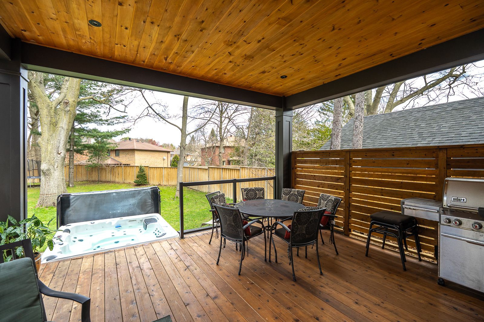 • Private backyard with a hot tub, perfect for relaxation and gatherings.