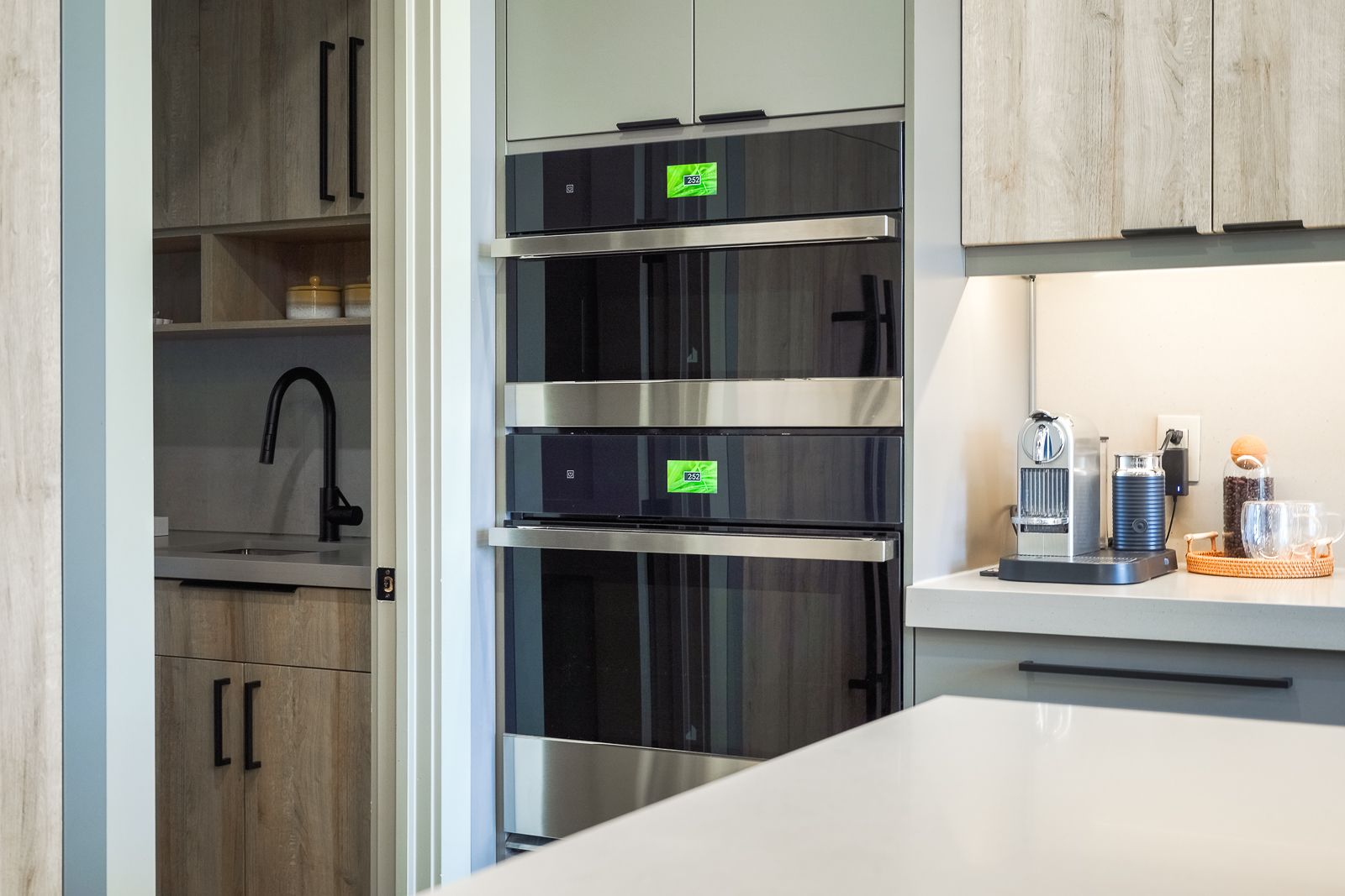• Gourmet kitchen featuring premium appliances, quartz countertops, and a hidden pantry.