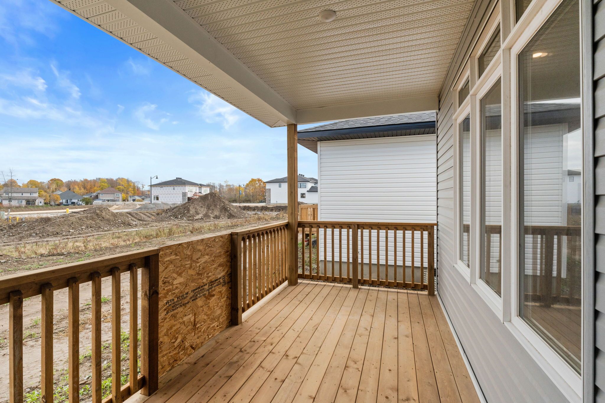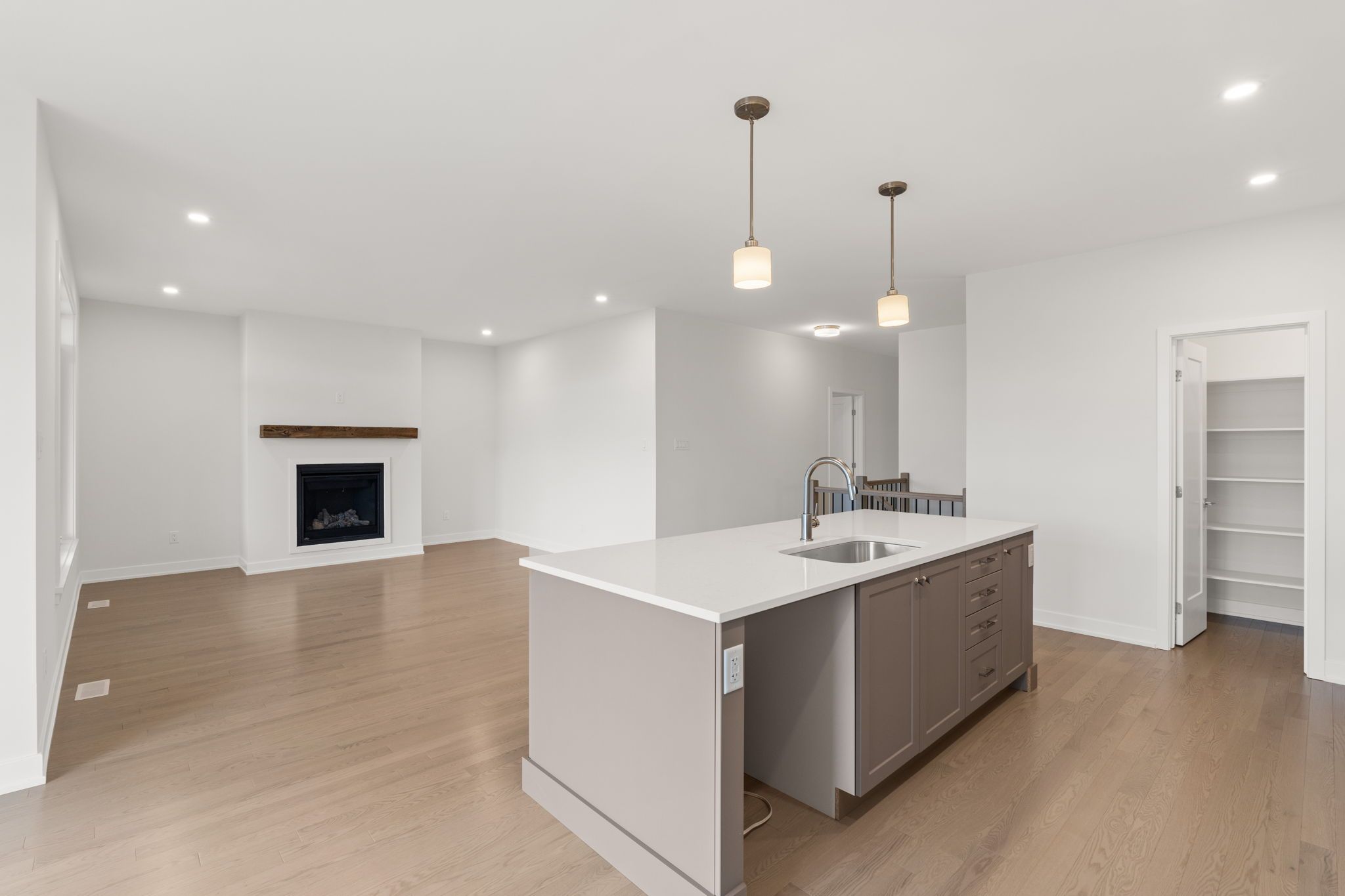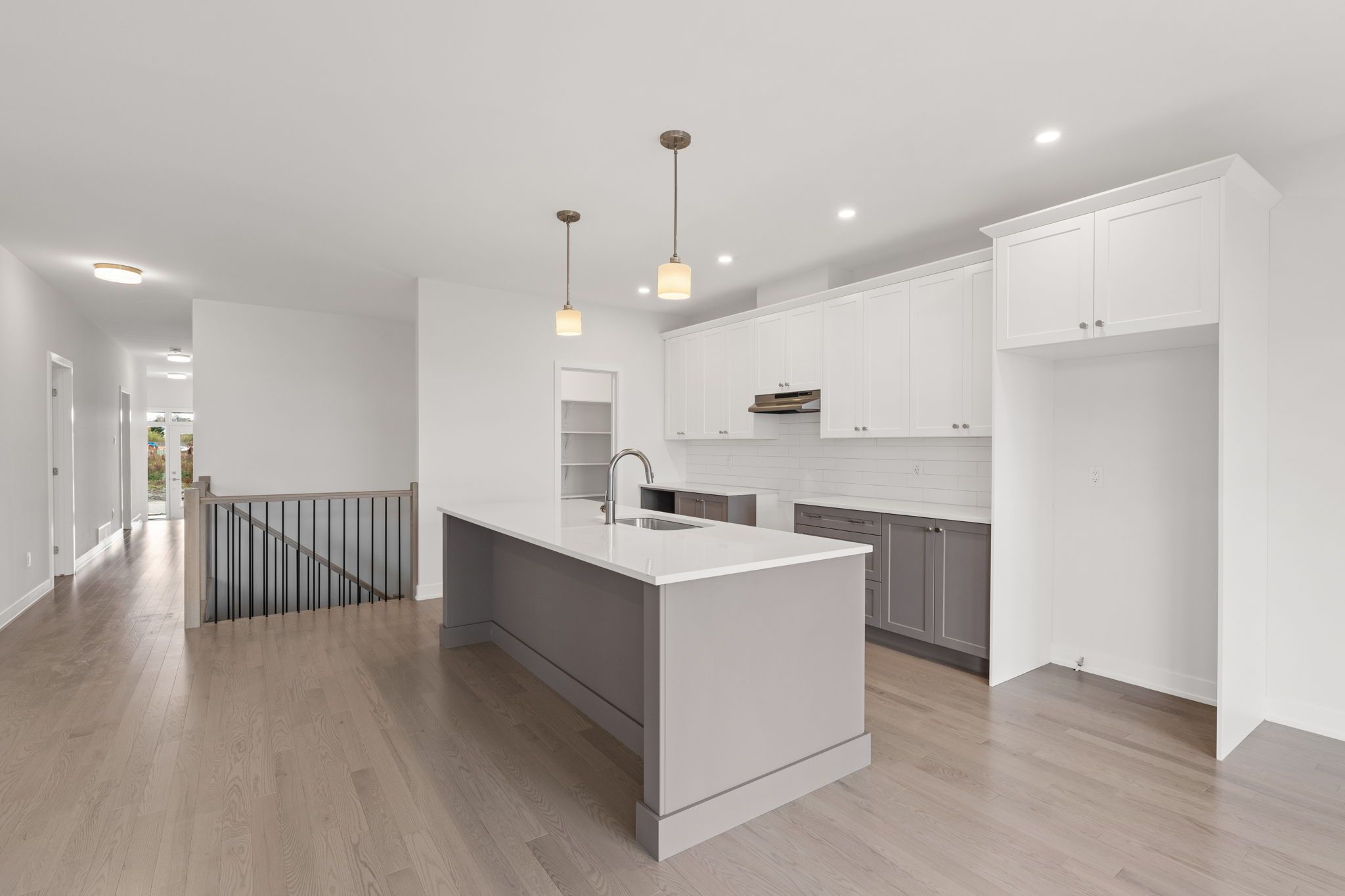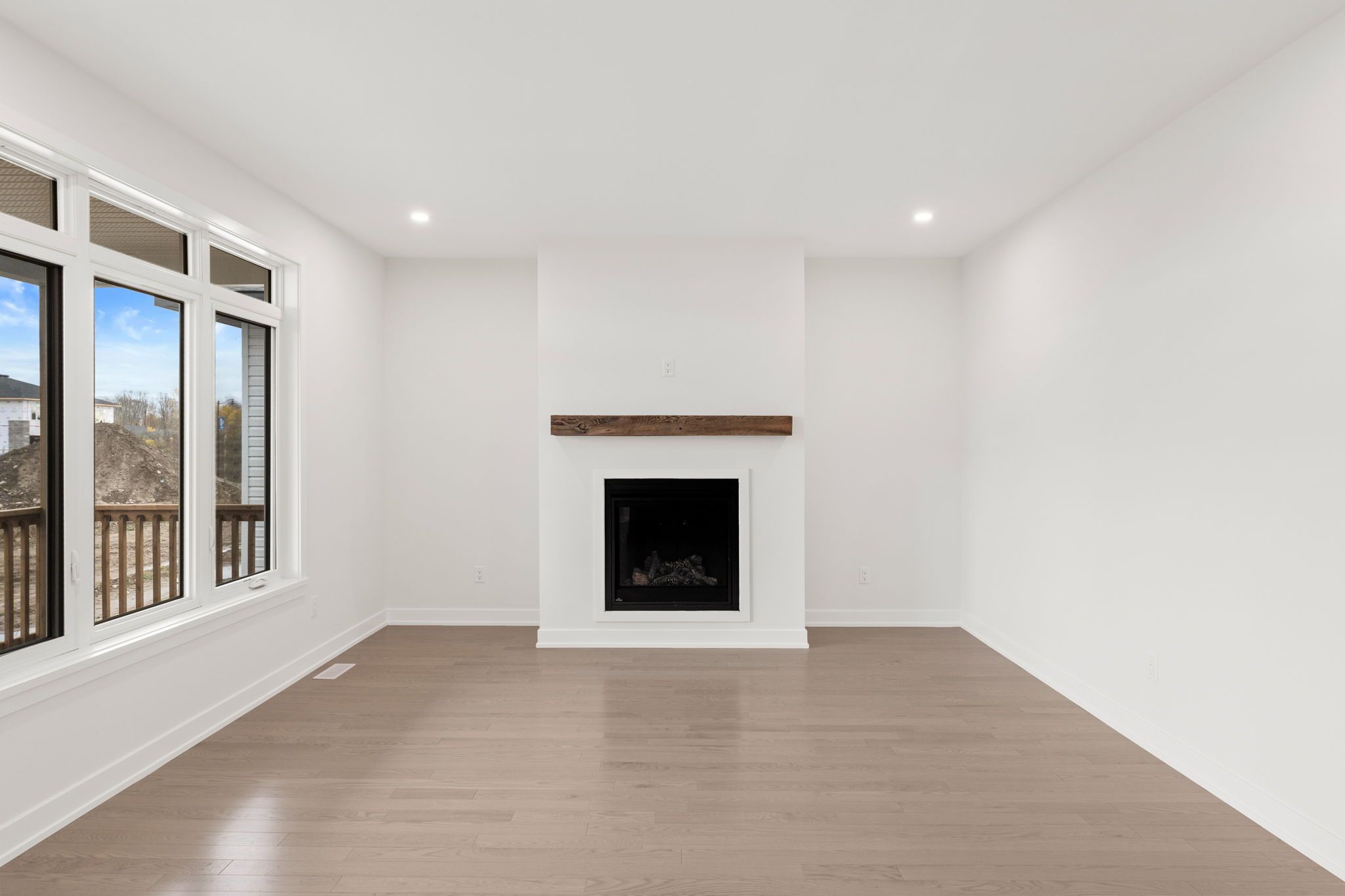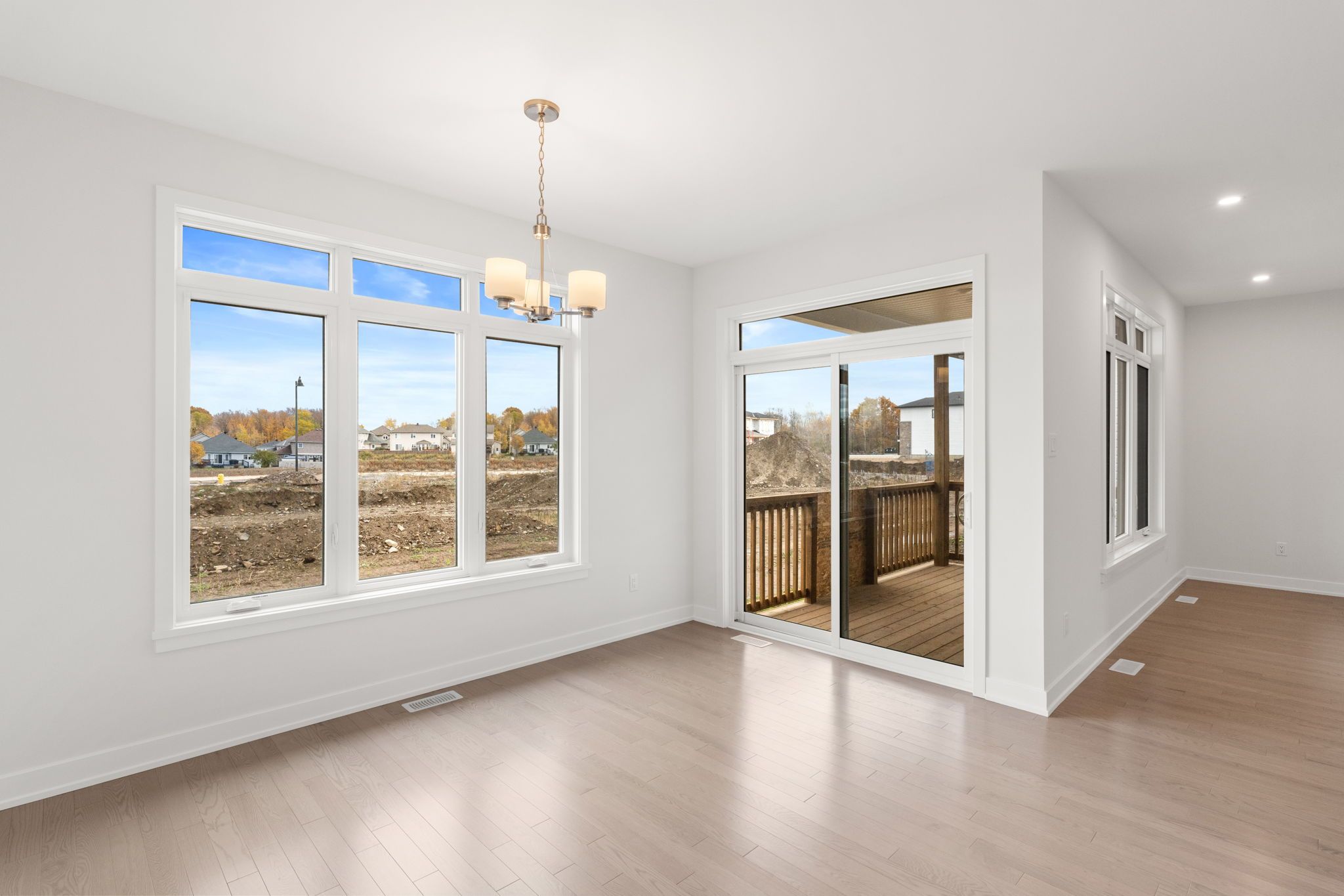 Set in brockville's stirling meadows, this newly completed semi-detached bungalow offers contemporary living with convenient access to highway 401 and nearby amenities, including shopping, dining, and recreation. The leeds model by mackie homes features approximately 1,509 square feet of thoughtfully designed living space, including two bedrooms, two bathrooms, a front-facing office nook, main-level laundry, and a single-car garage. An open-concept layout connects the kitchen, dining area, and living room, creating a bright and functional space ideal for both everyday living and entertaining. The kitchen showcases two-toned cabinetry, quartz countertops, a storage pantry, and a spacious centre island with an undermount sink. The living room features a natural gas fireplace with a mantle. Step outside to the covered porch, providing a seamless indoor-outdoor flow. The primary bedroom includes a walk-in closet and a three-piece ensuite.