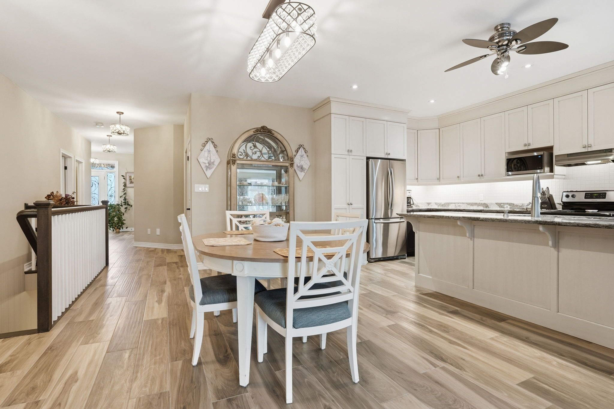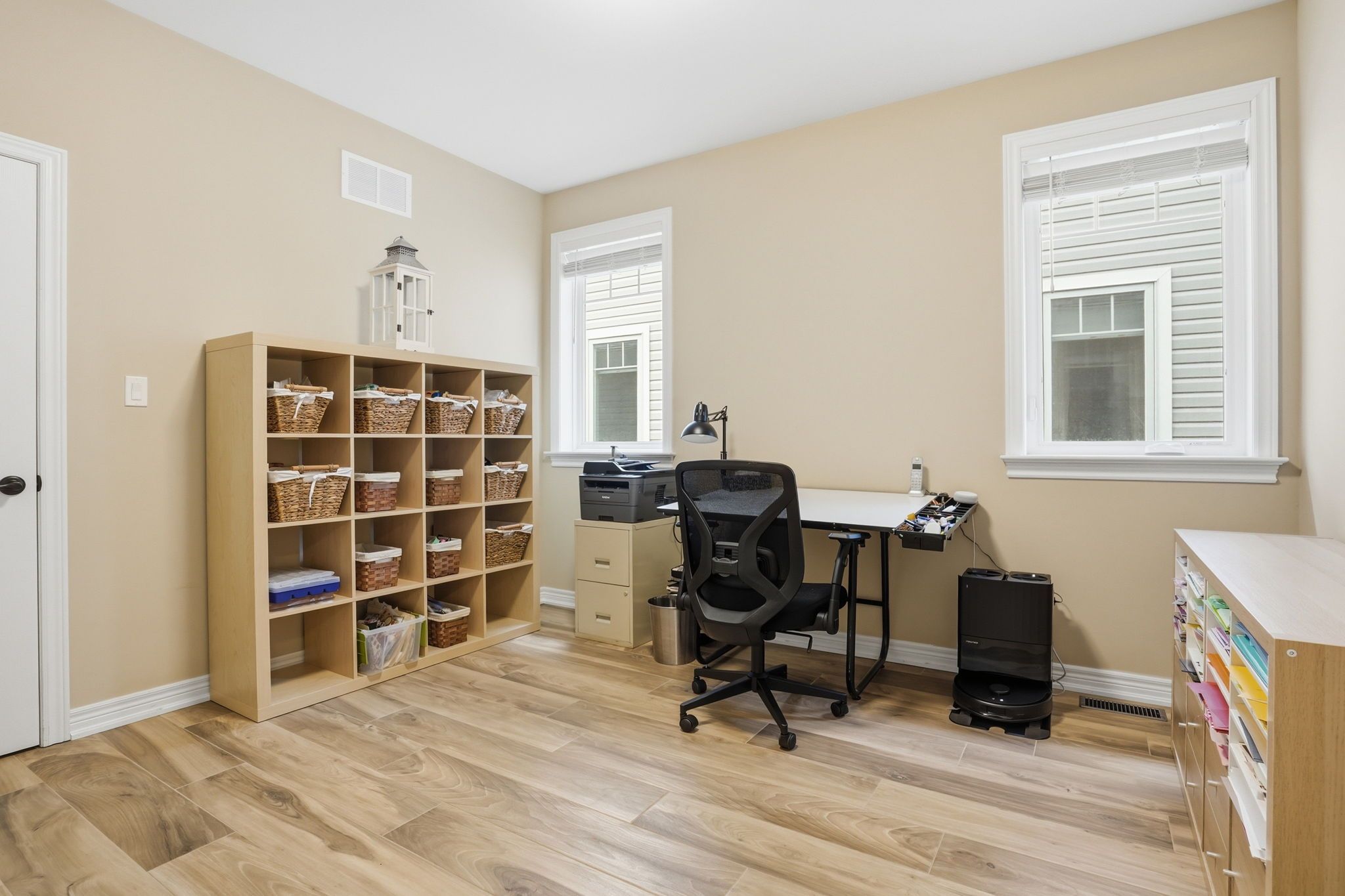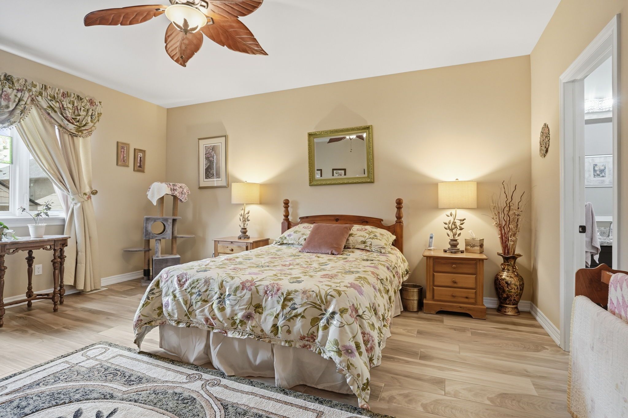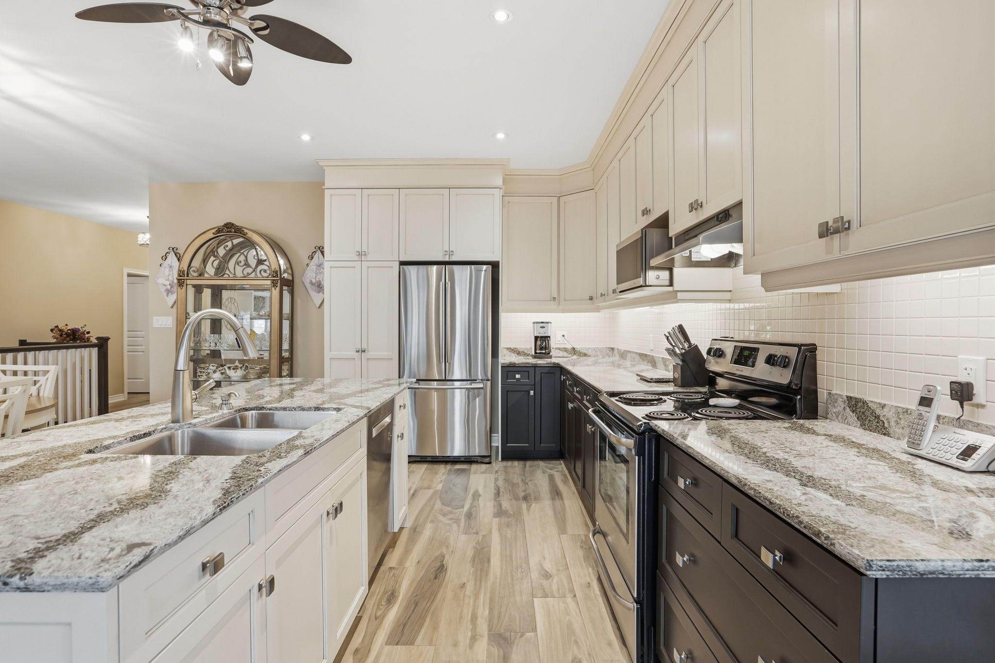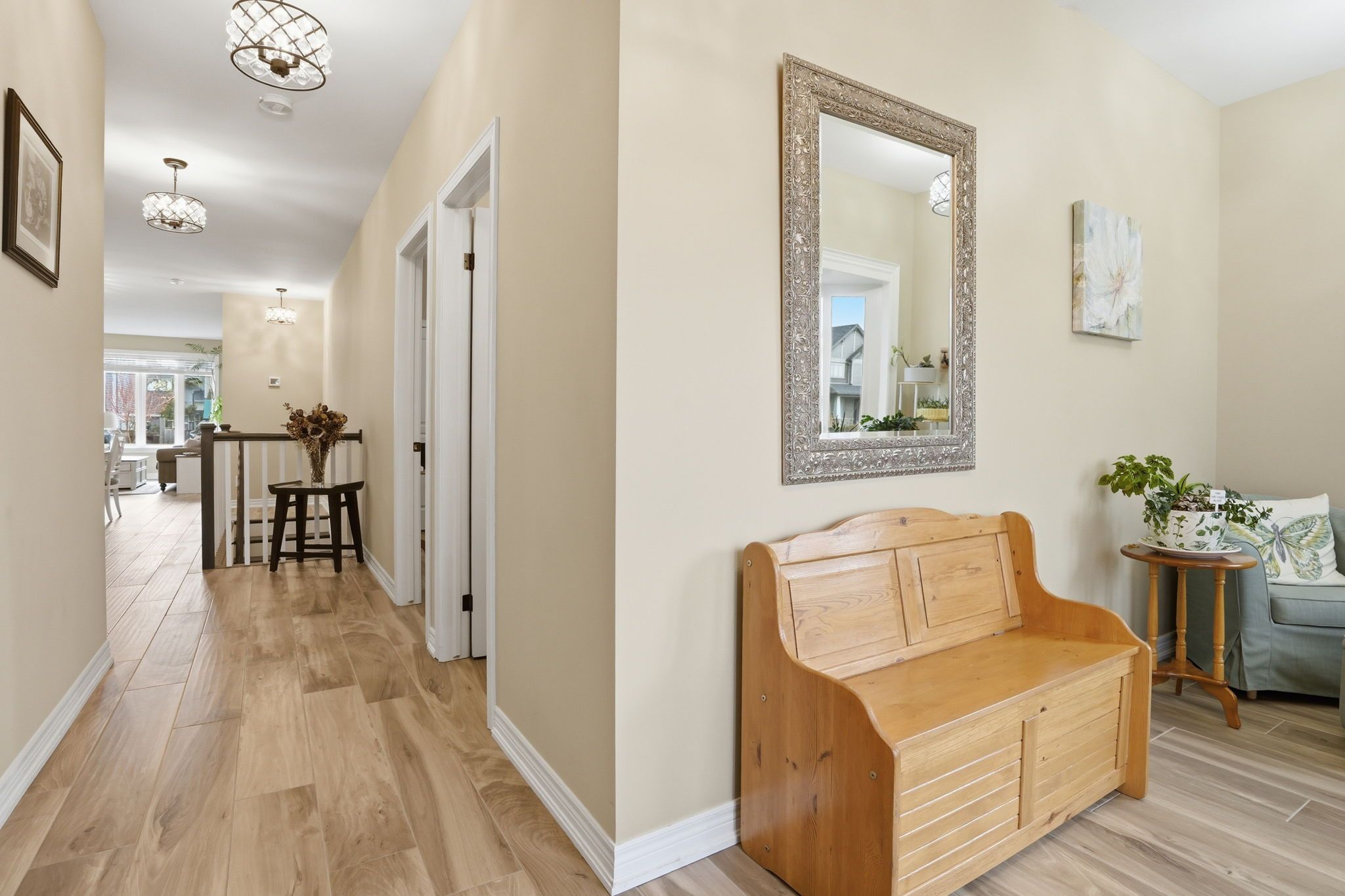 Experience refined modern living at 104 anastasia boulevard in smithville. Constructed in 2017 and thoughtfully enhanced with over $120,000 in premium upgrades since its acquisition in december of that year, this exceptional bungalow offers a seamless blend of contemporary design and everyday functionality. The expansive 1,727 sqft. Main level is distinguished by 9-foot ceilings, creating a bright and welcoming atmosphere throughout. At its heart lies an open-concept living space anchored by a chef-inspired kitchen, complete with cambria quartz countertops, floor-to-ceiling cabinetry with elegant decorative detailing, a central island, pantry, and soft-close drawers and cupboards. Sophisticated ceramic plank flooring extends across the entire main floor, ensuring a carpet-free interior, while both main-floor bathrooms-including the luxurious five-piece ensuite off the primary bedroom-feature matching cambria quartz finishes. The professionally finished lower level offers approximately 613 sqft of finished space including a generously sized bedroom with large egress windows that invite abundant natural light, along with a stylish three-piece bathroom-ideal for guests, extended family, or a private home office. An additional 1,100 sqft. Of unfinished space presents a rare opportunity to create a custom living area, fitness studio, or additional storage tailored to your needs. Outdoors, the property is equally impressive. The front and rear perennial gardens have garnered notable attention, having been featured in multiple publications and nominated for an award in september 2025. Inside, the seller has added thoughtful touches, including the conversion of the entry closet into an inviting reading nook or sitting area, complemented by a beautiful bay window that frames picturesque views of the meticulously landscaped front garden.