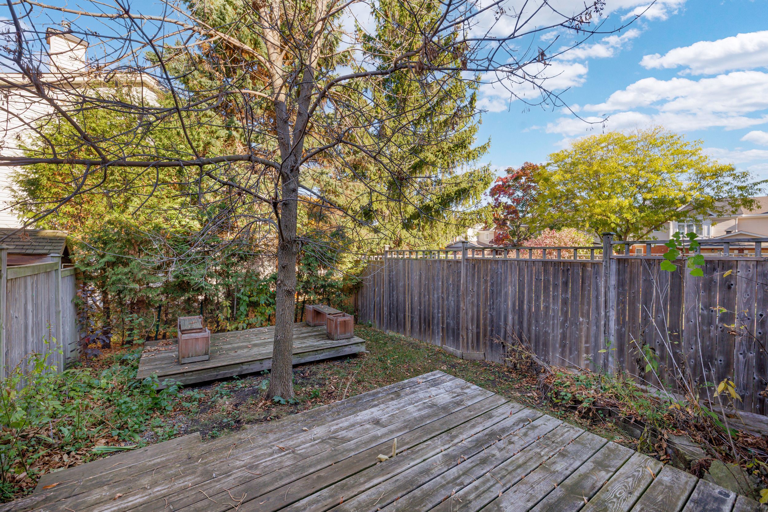 • Fully fenced backyard with a deck, ideal for outdoor activities.