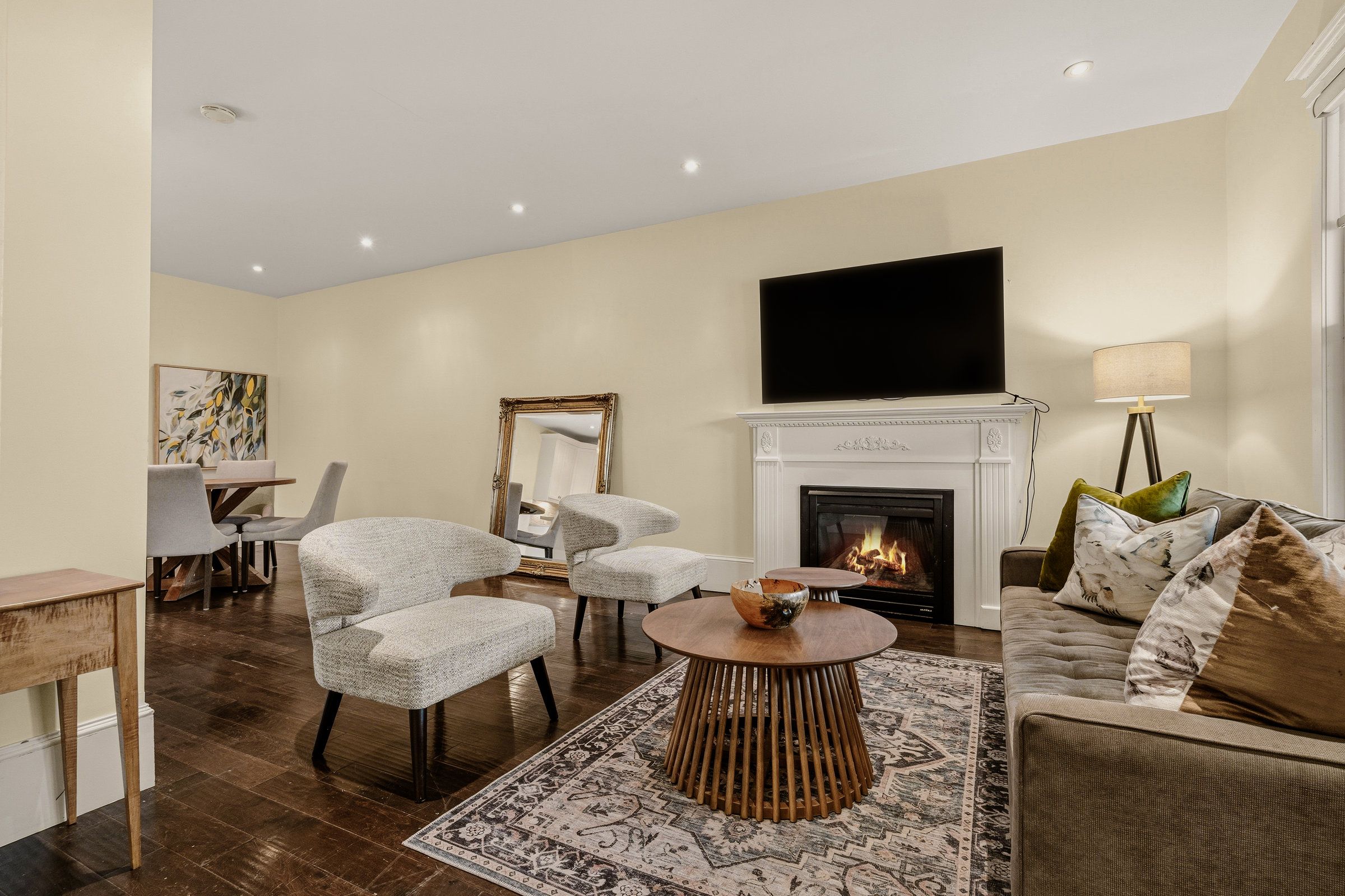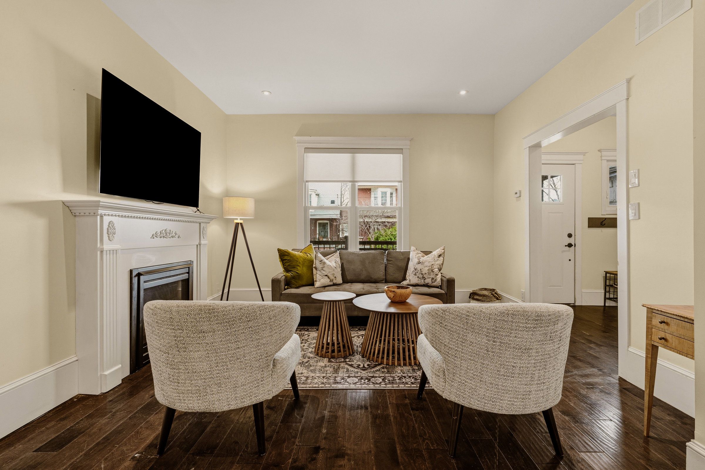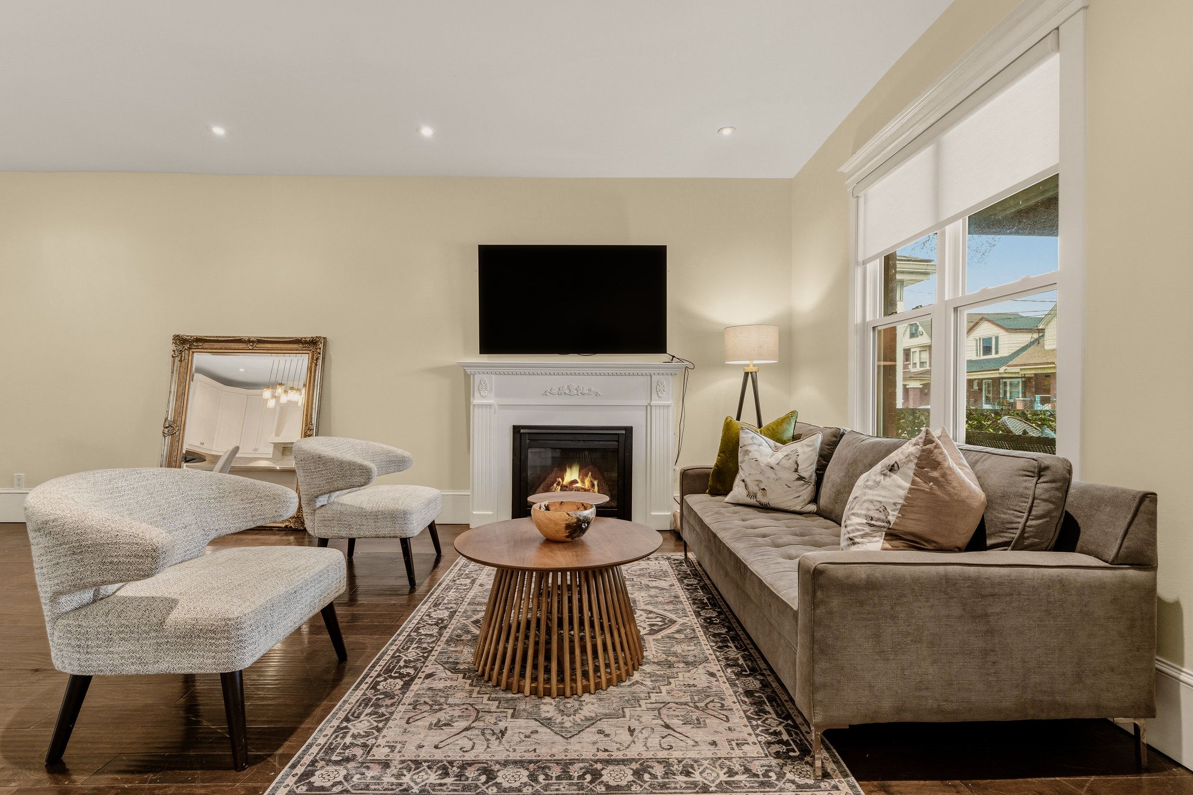 • Main level features open-concept living area with high ceilings and natural light.